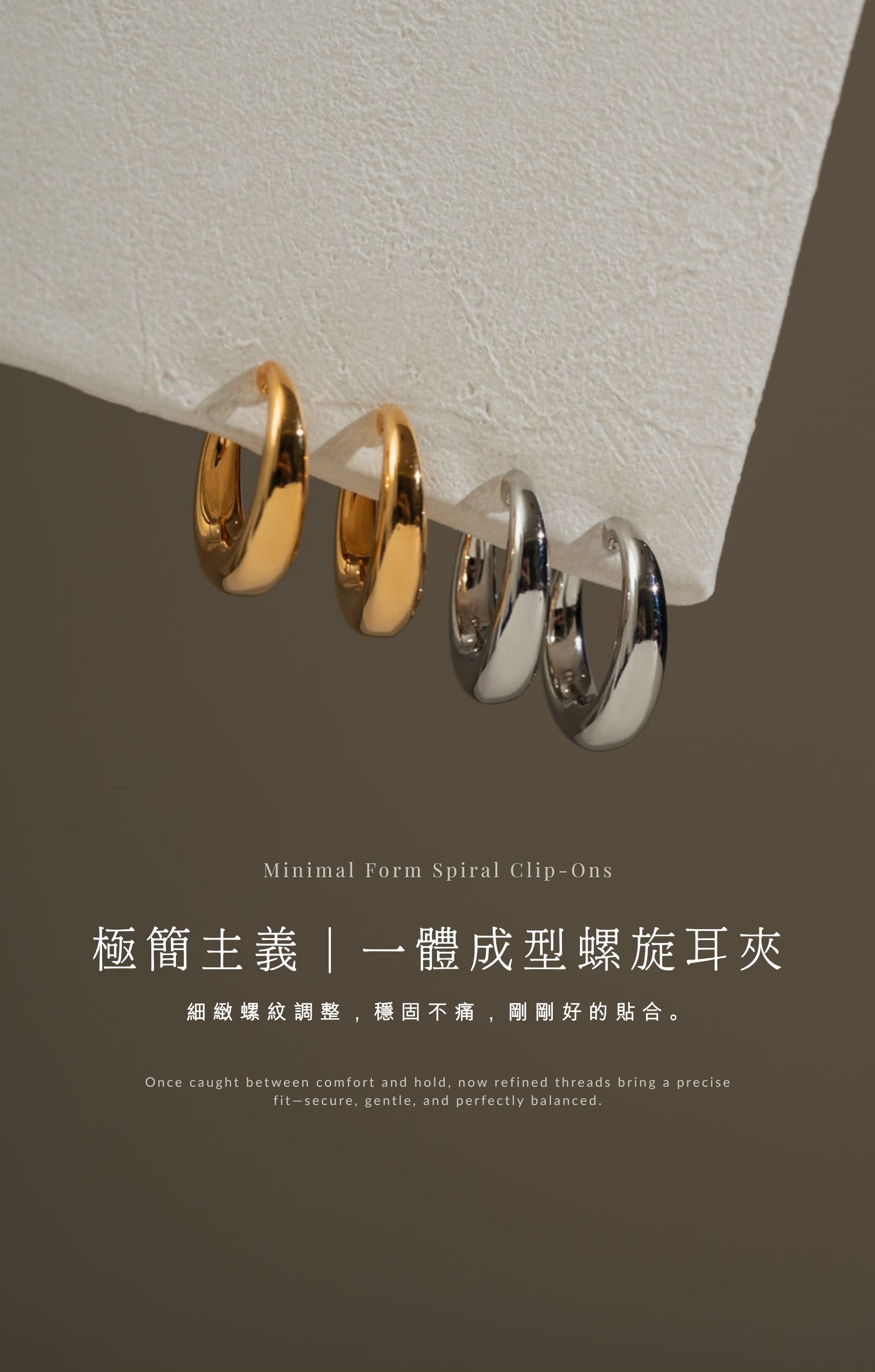 自訂款 | 貼耳麻花小 C 圈.蚊香盤耳夾 - 銀色/玫瑰金色