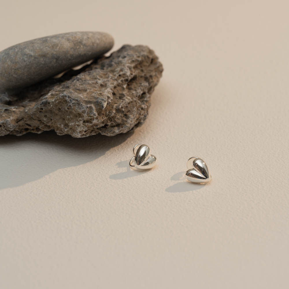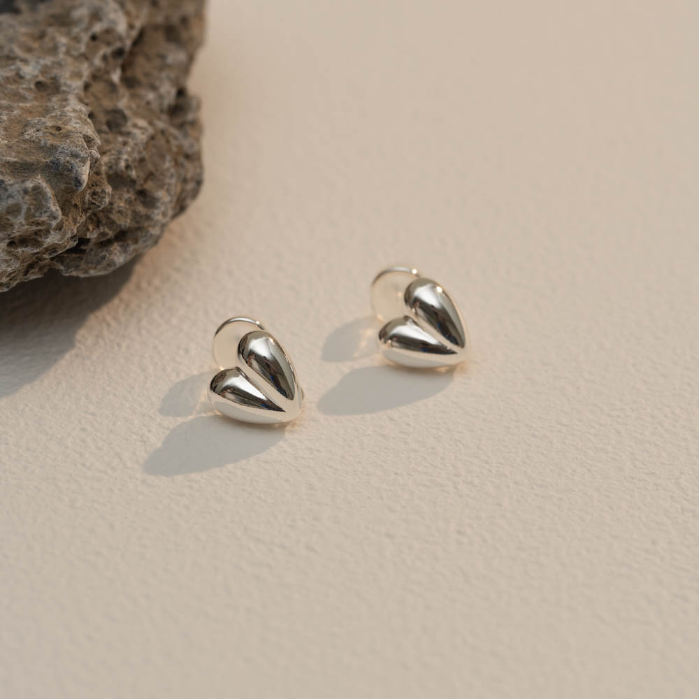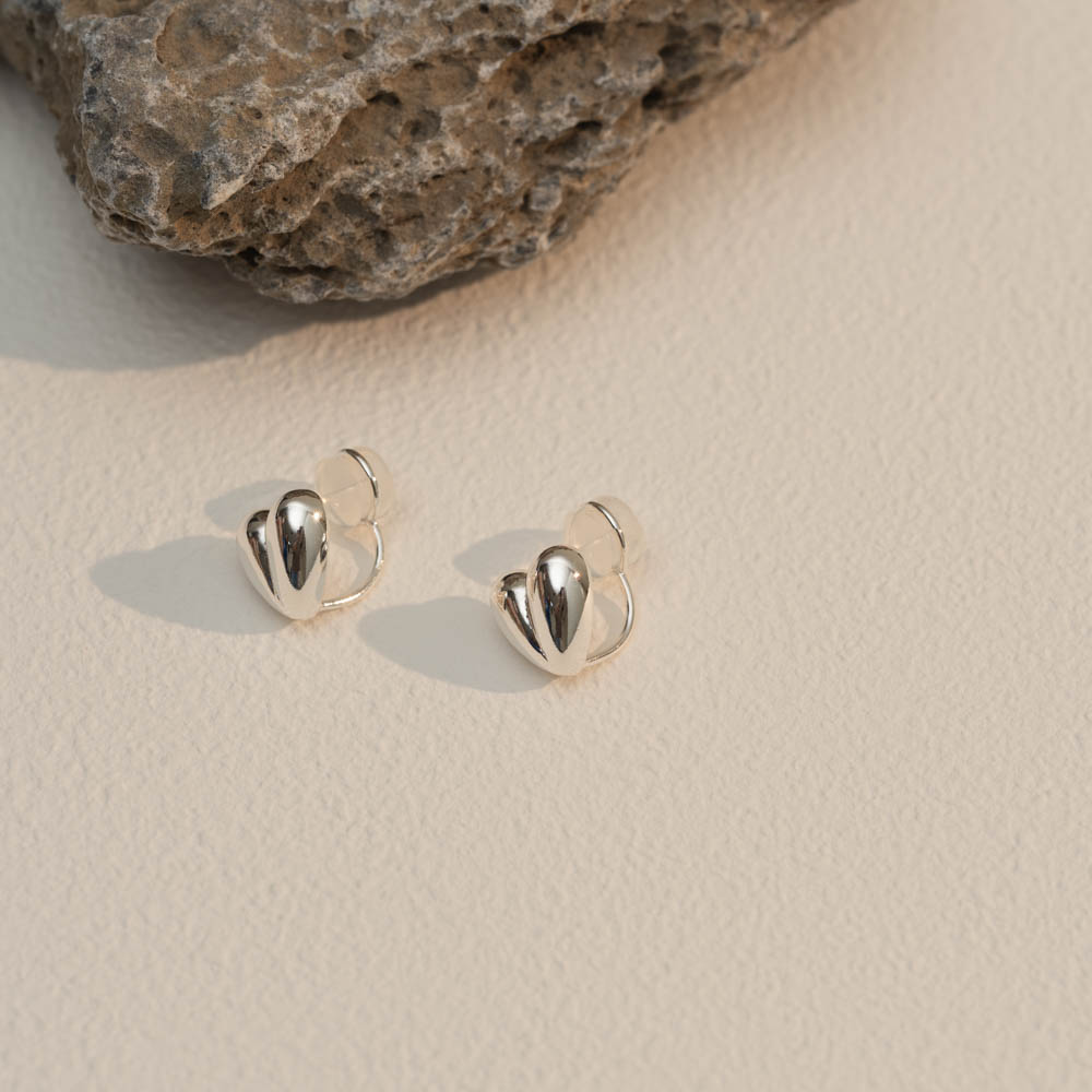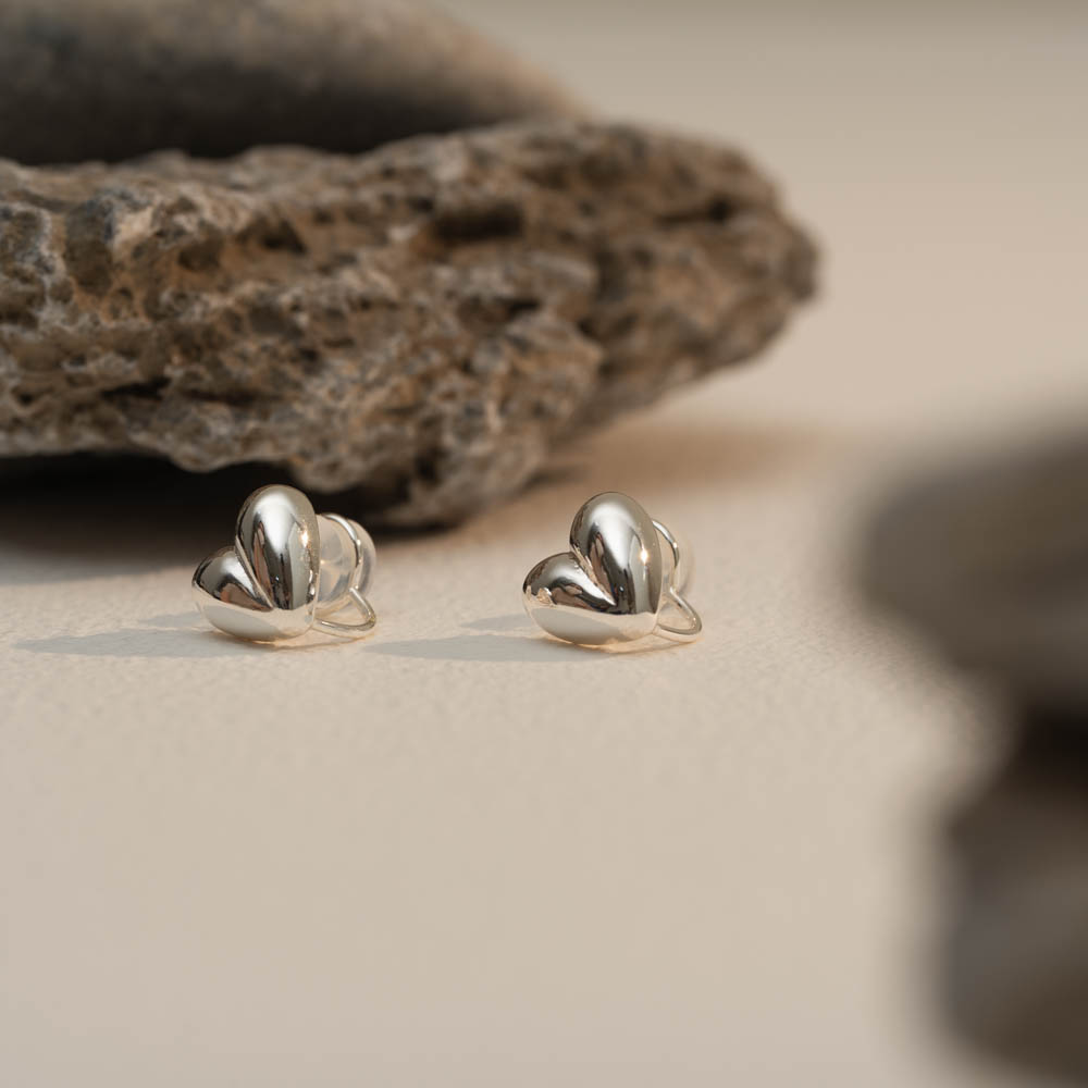 極簡亮面愛心.蚊香盤耳夾 - 銀色