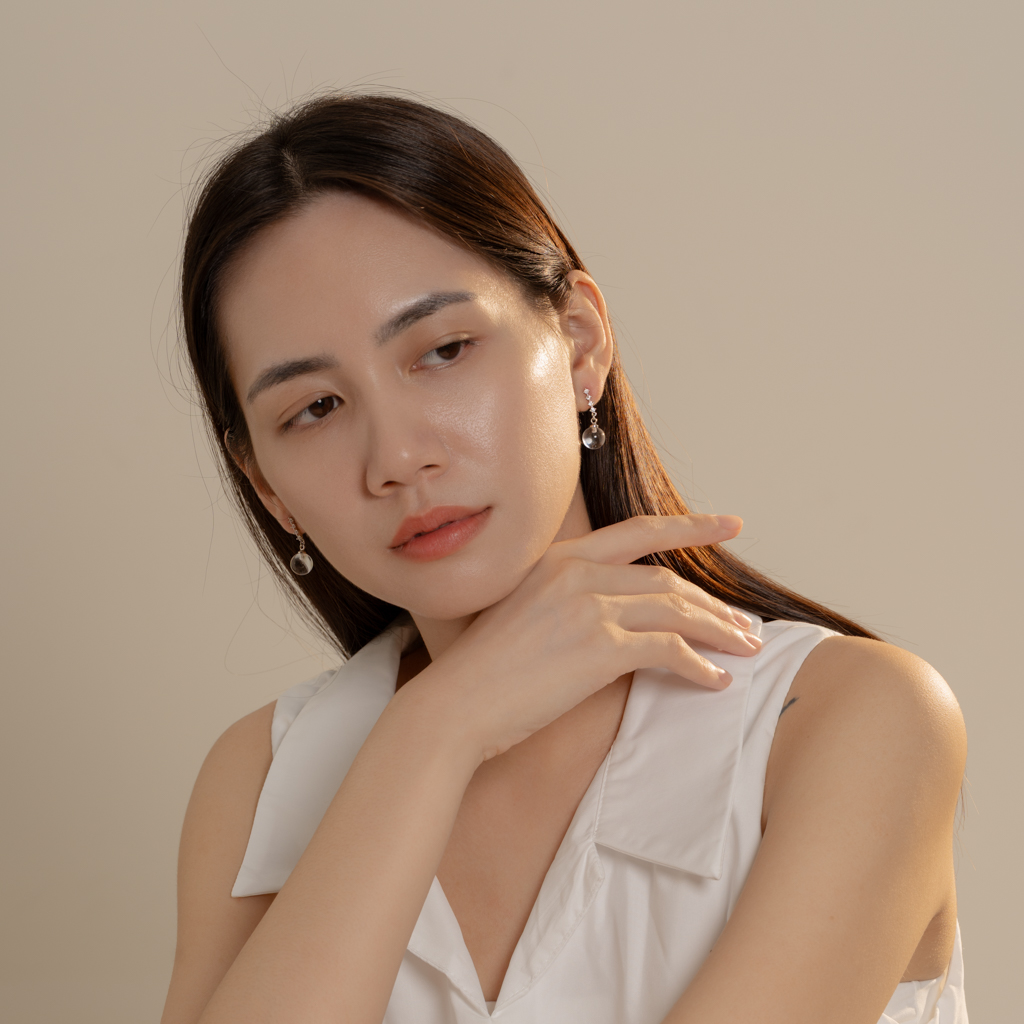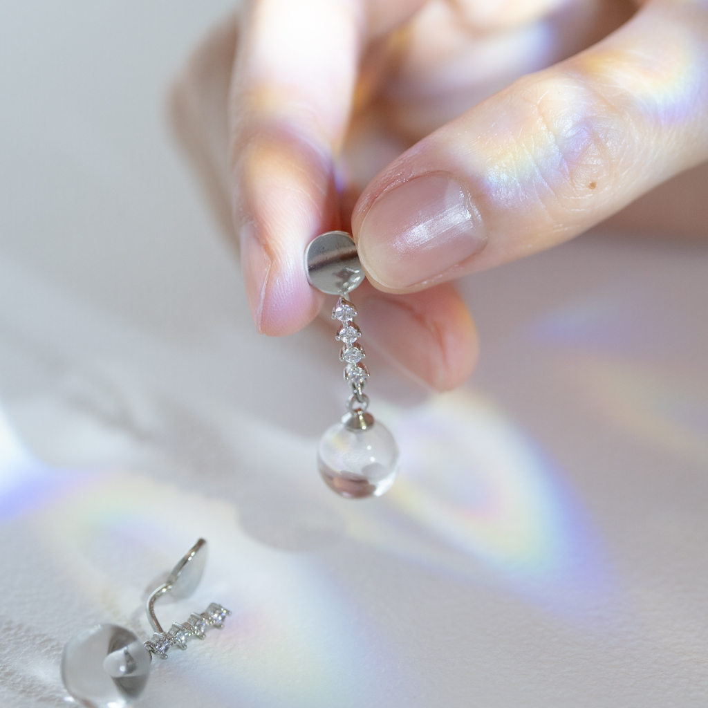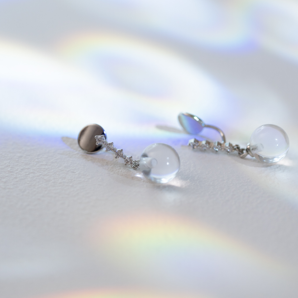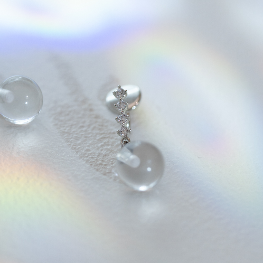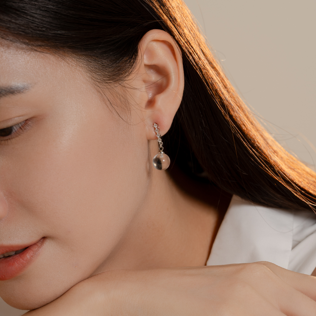 極簡垂墜透明感玻璃珠.蚊香盤耳夾 - 銀色