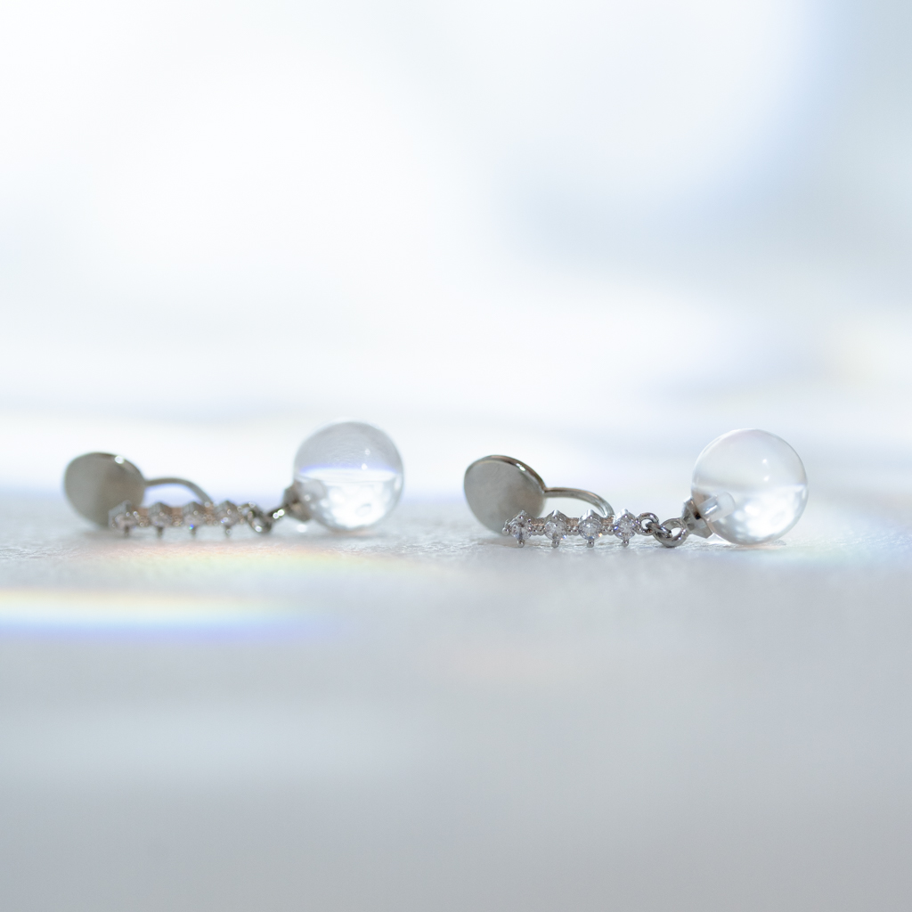 單鑽小帽透明感玻璃珠.蚊香盤耳夾 - 銀色