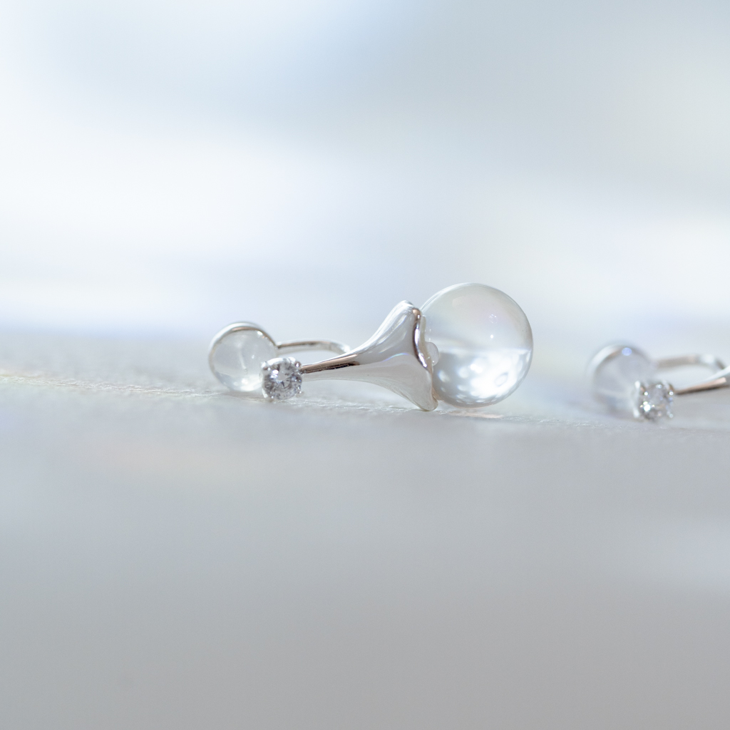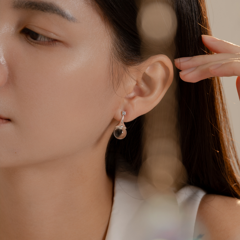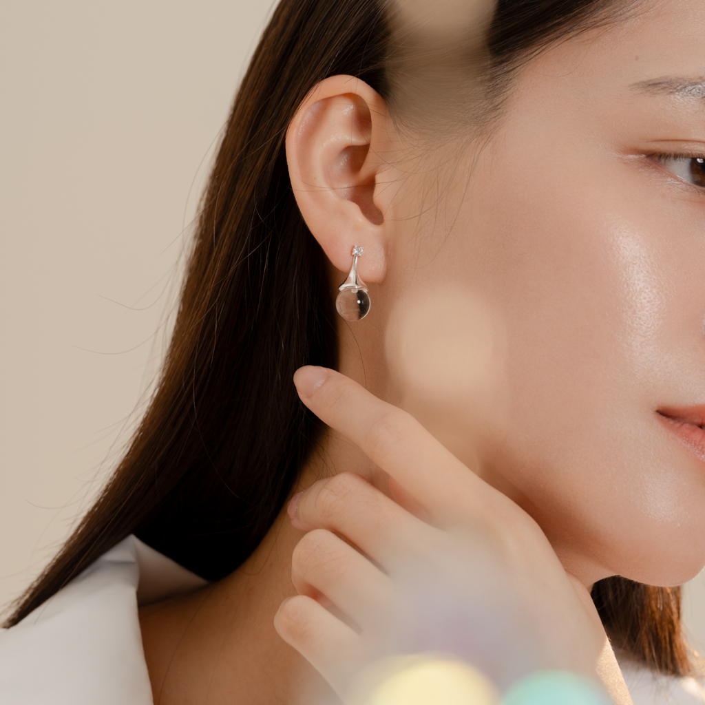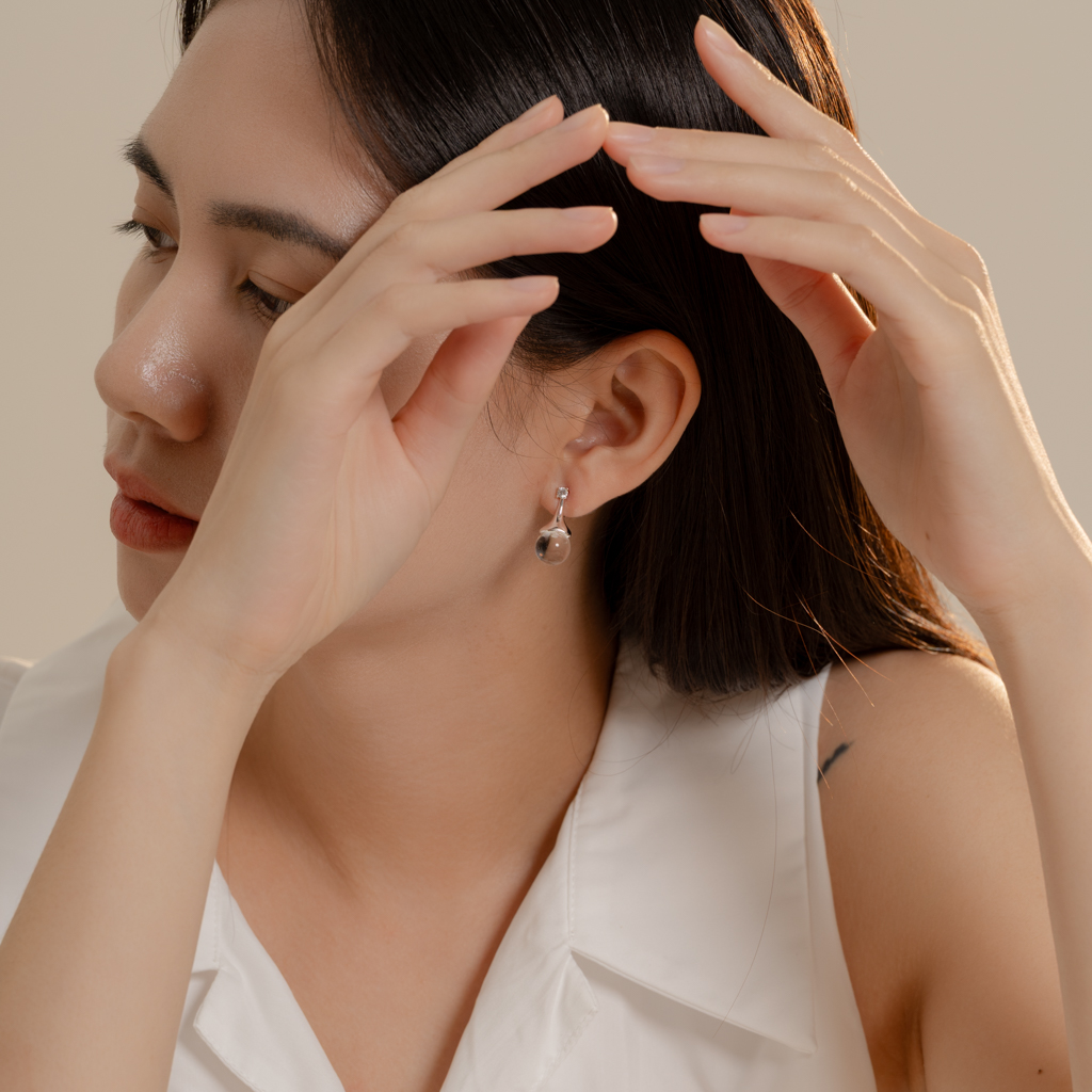 極簡垂墜透明感玻璃珠.蚊香盤耳夾 - 銀色