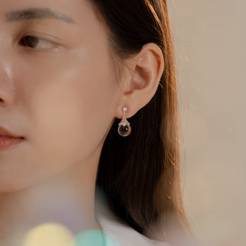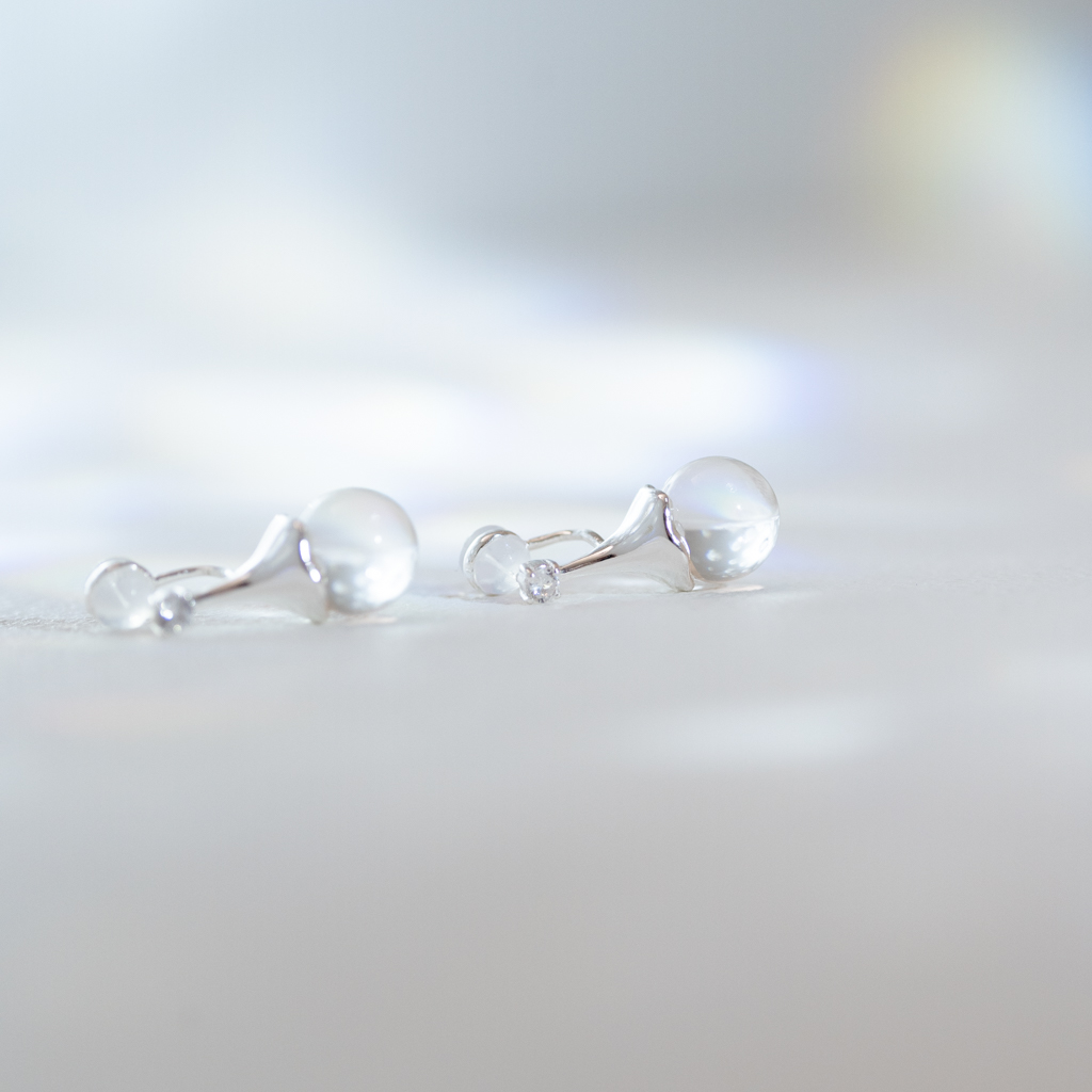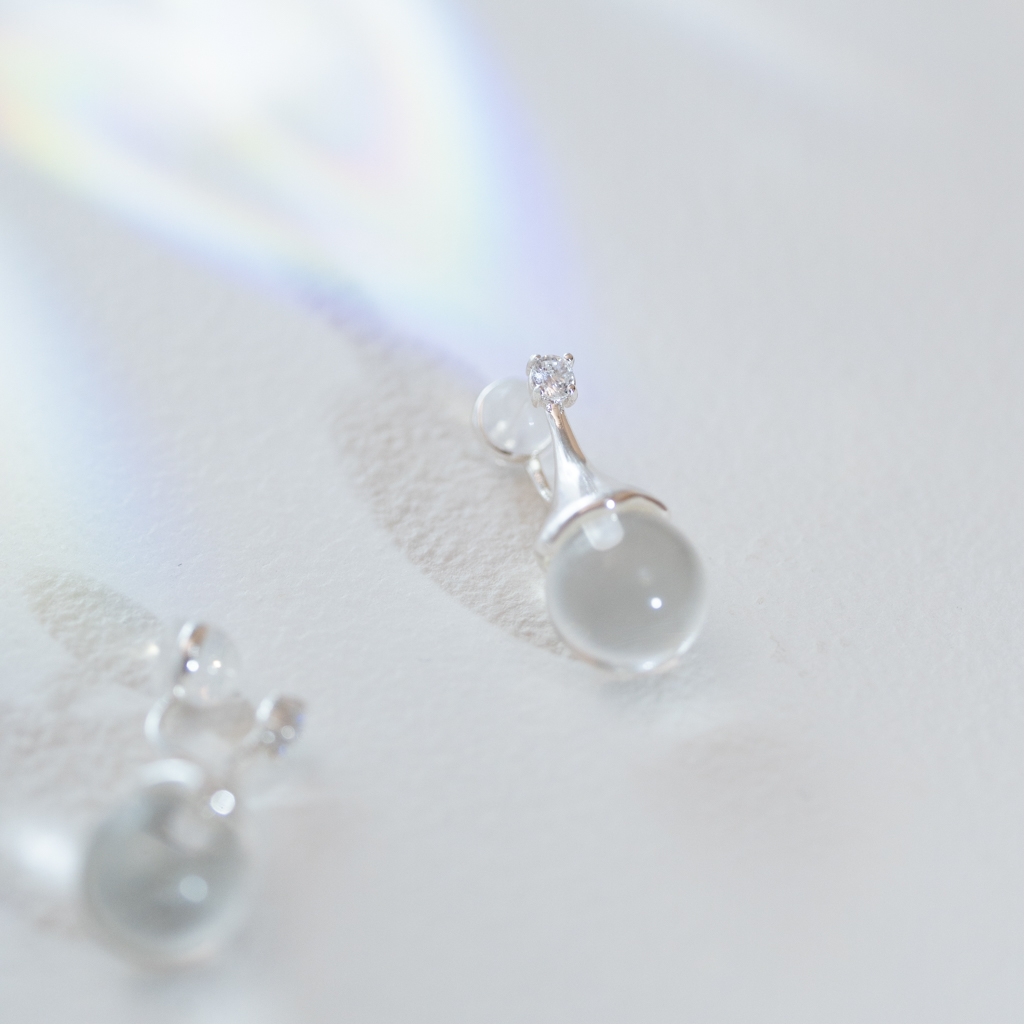 單鑽小帽透明感玻璃珠.蚊香盤耳夾 - 銀色