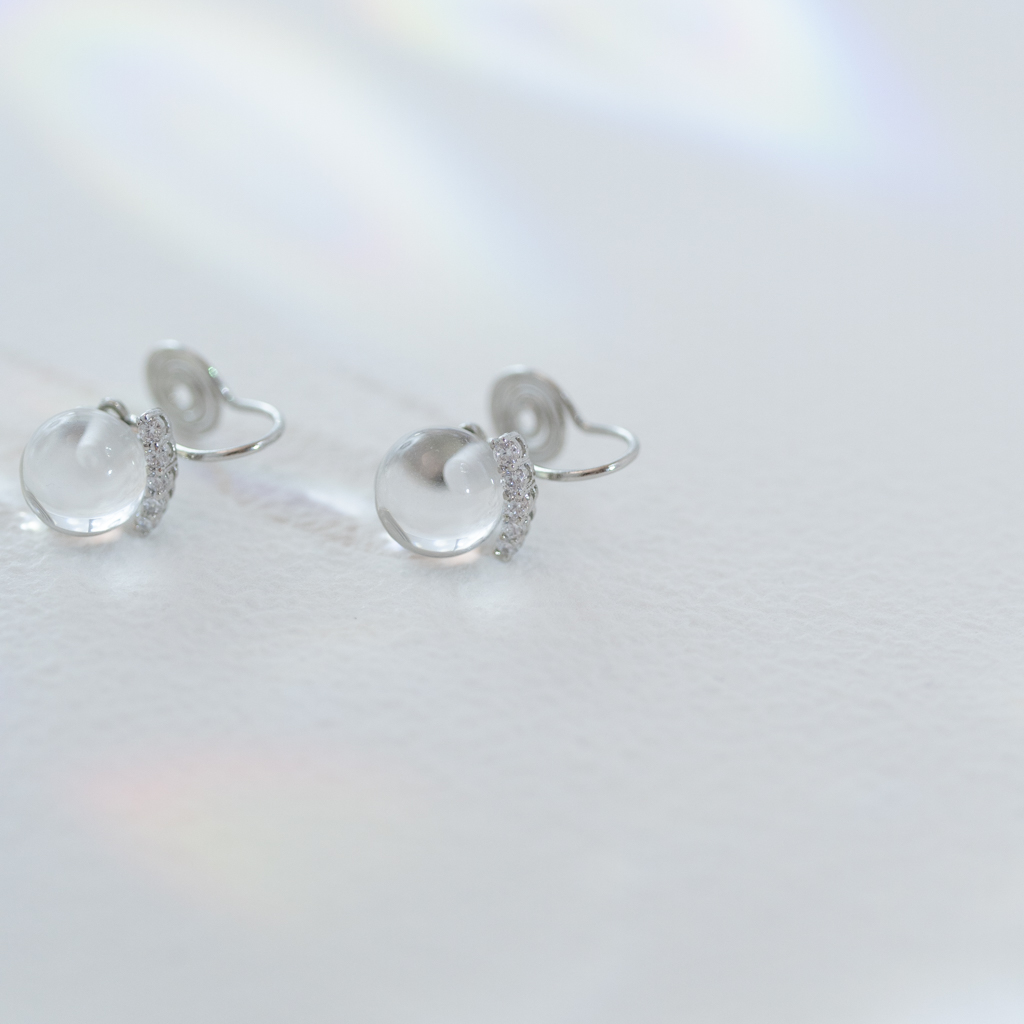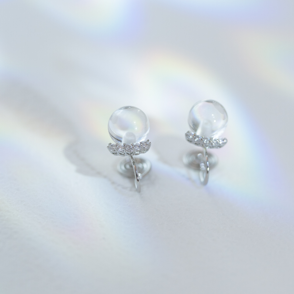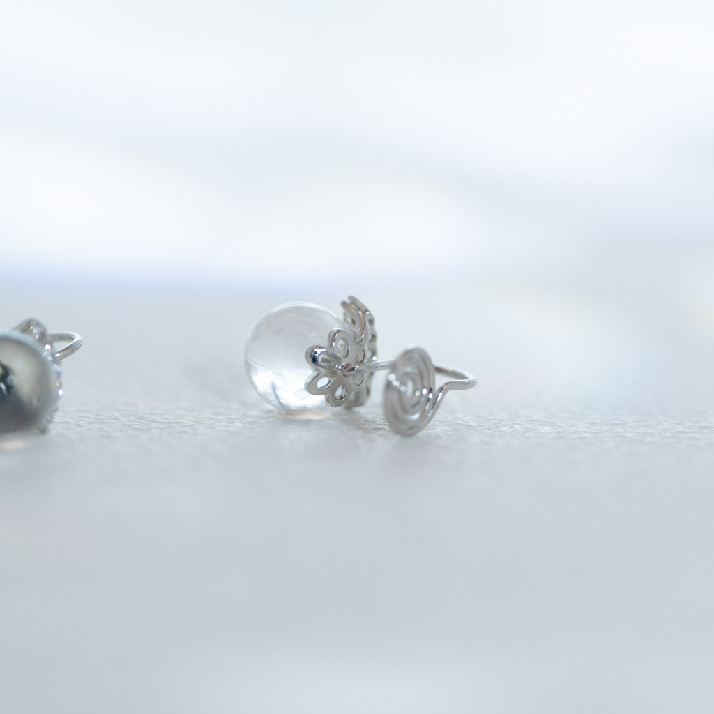 極簡垂墜透明感玻璃珠.蚊香盤耳夾 - 銀色