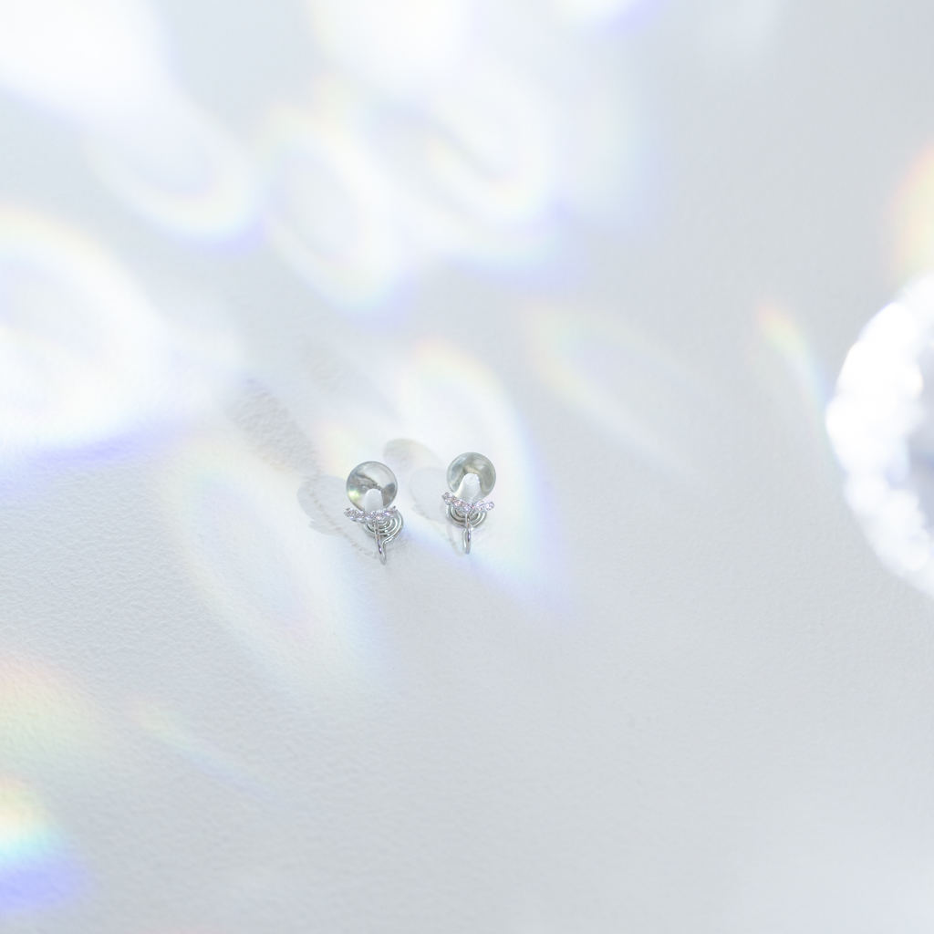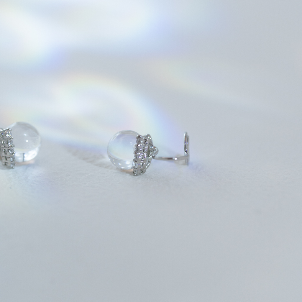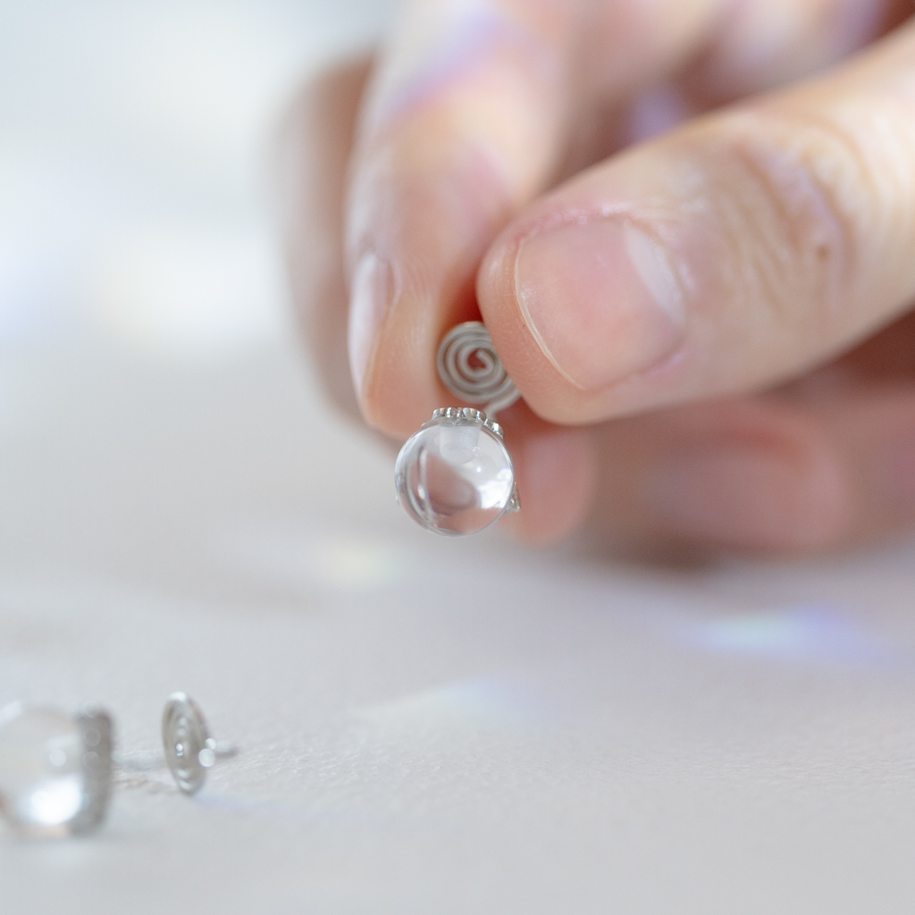 極簡垂墜透明感玻璃珠.蚊香盤耳夾 - 銀色