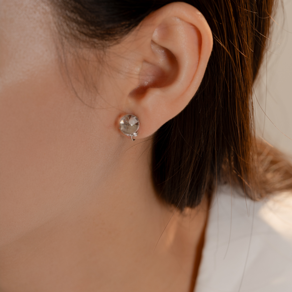 微笑排鑽透明感玻璃珠.蚊香盤耳夾 - 銀色