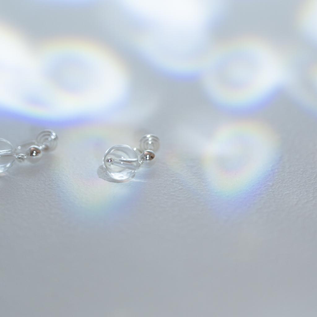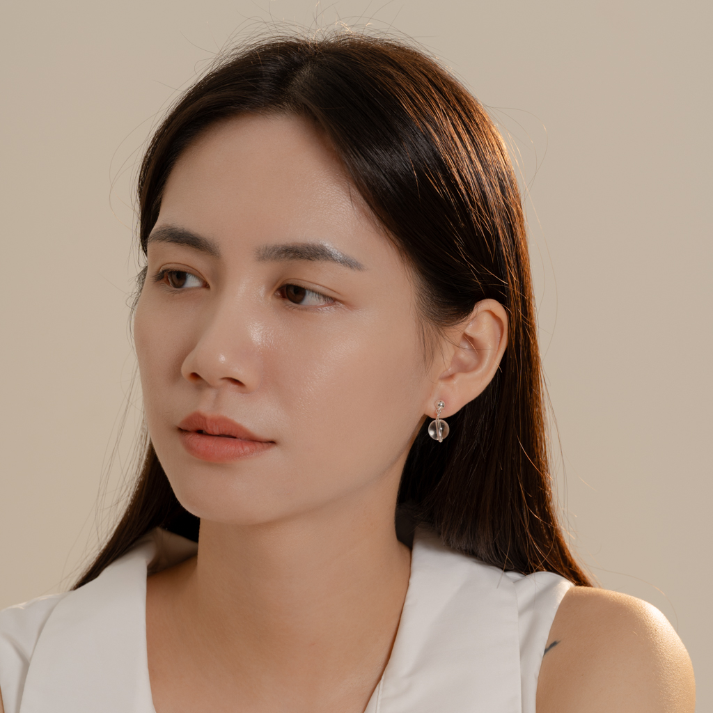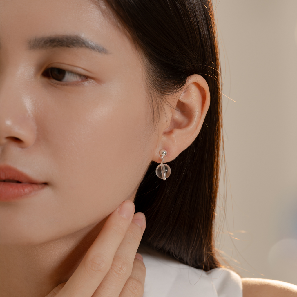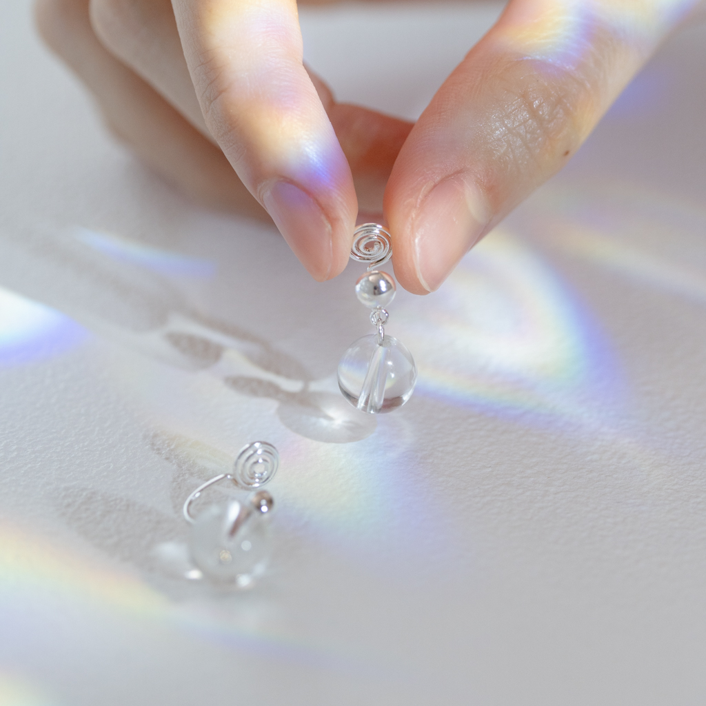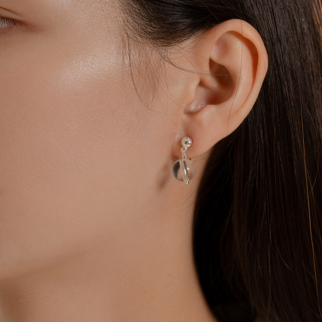 極簡垂墜透明感玻璃珠.蚊香盤耳夾 - 銀色