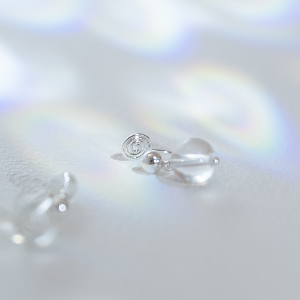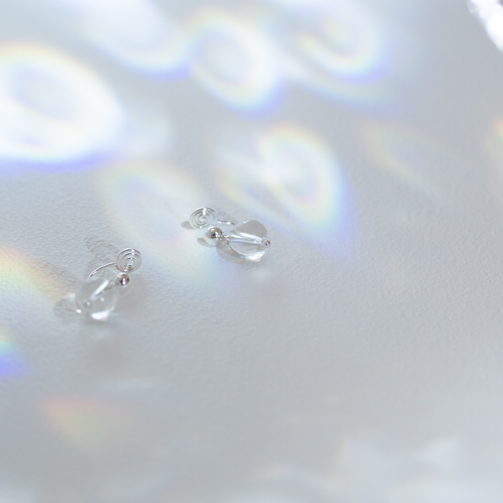 單鑽小帽透明感玻璃珠.蚊香盤耳夾 - 銀色