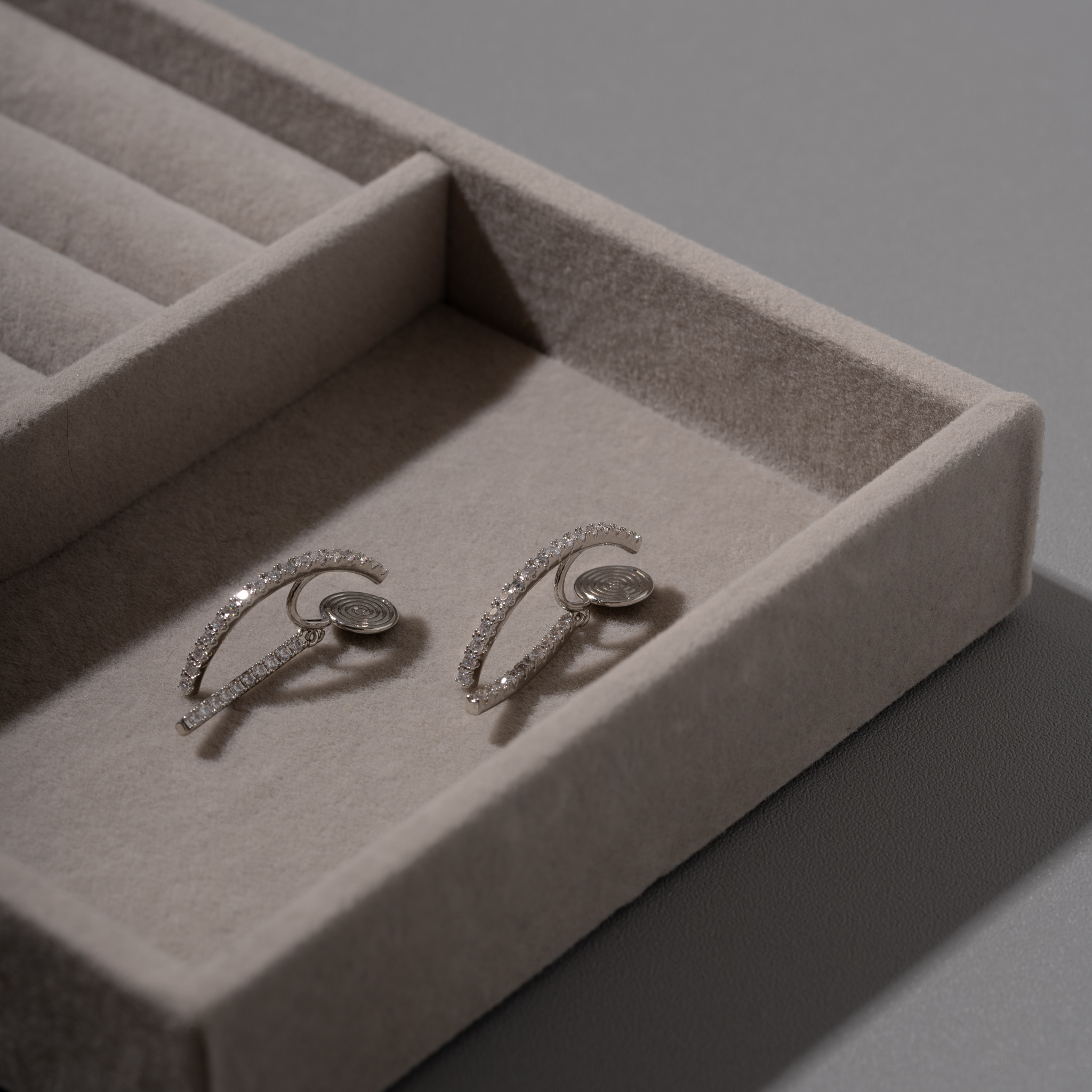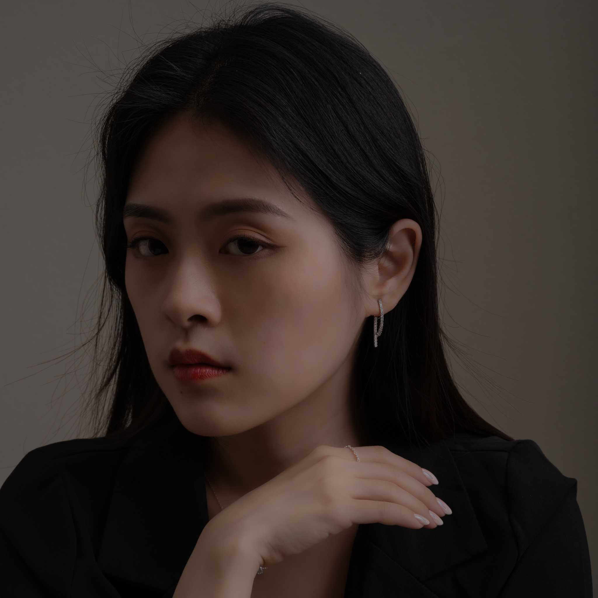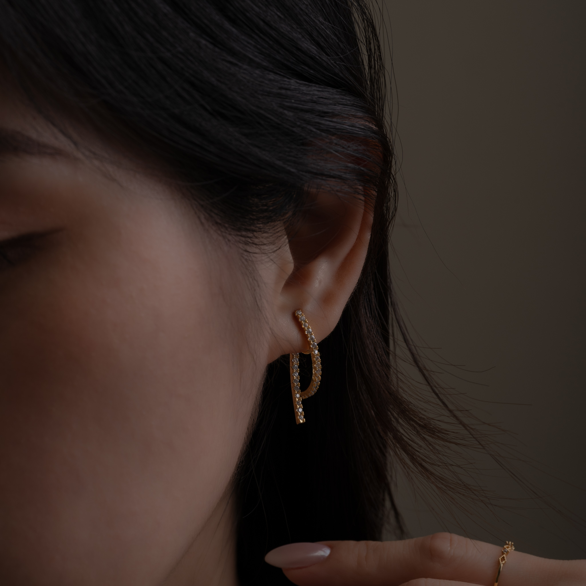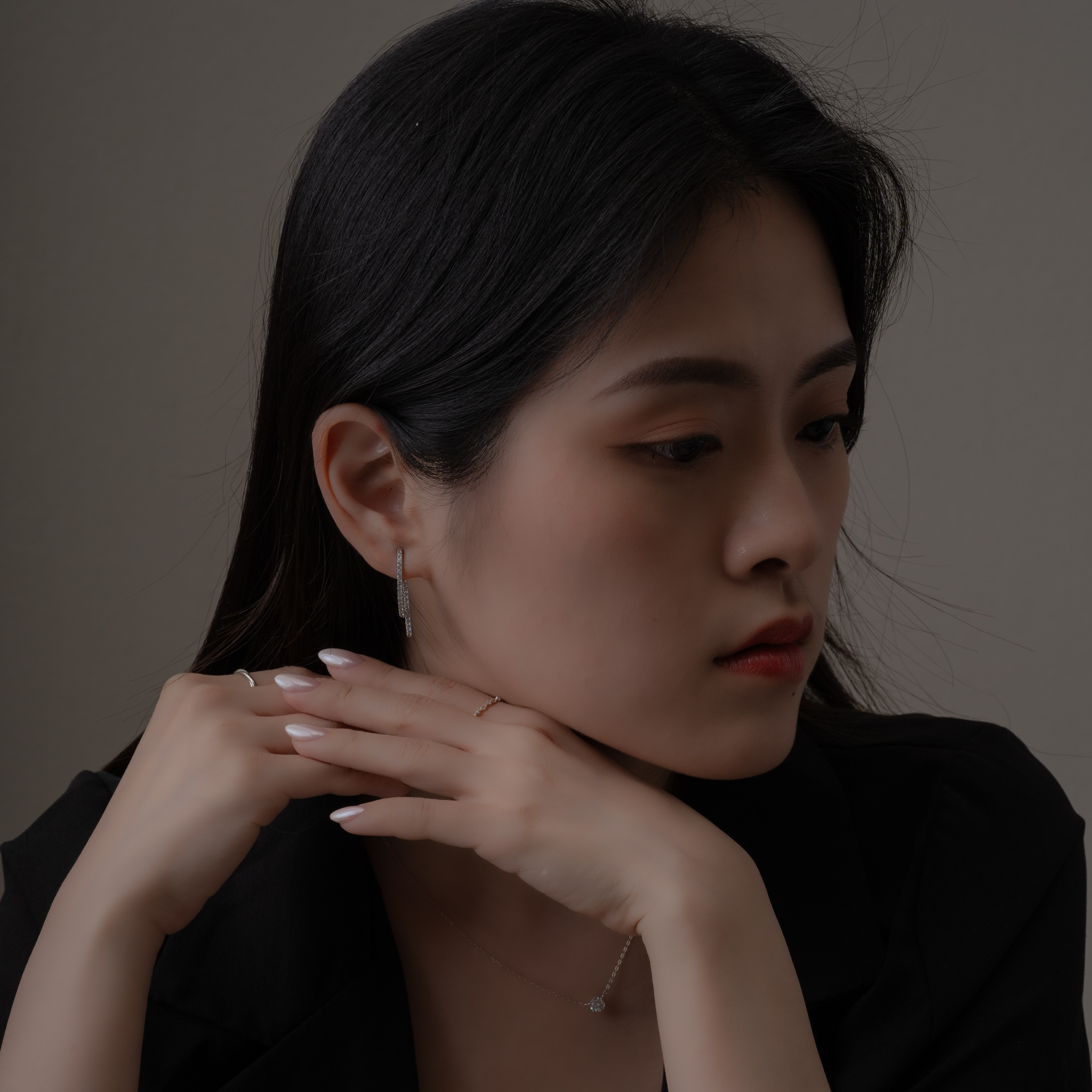 耳夾中少見的前後交錯設計,搭配後方排鑽線條小垂墜