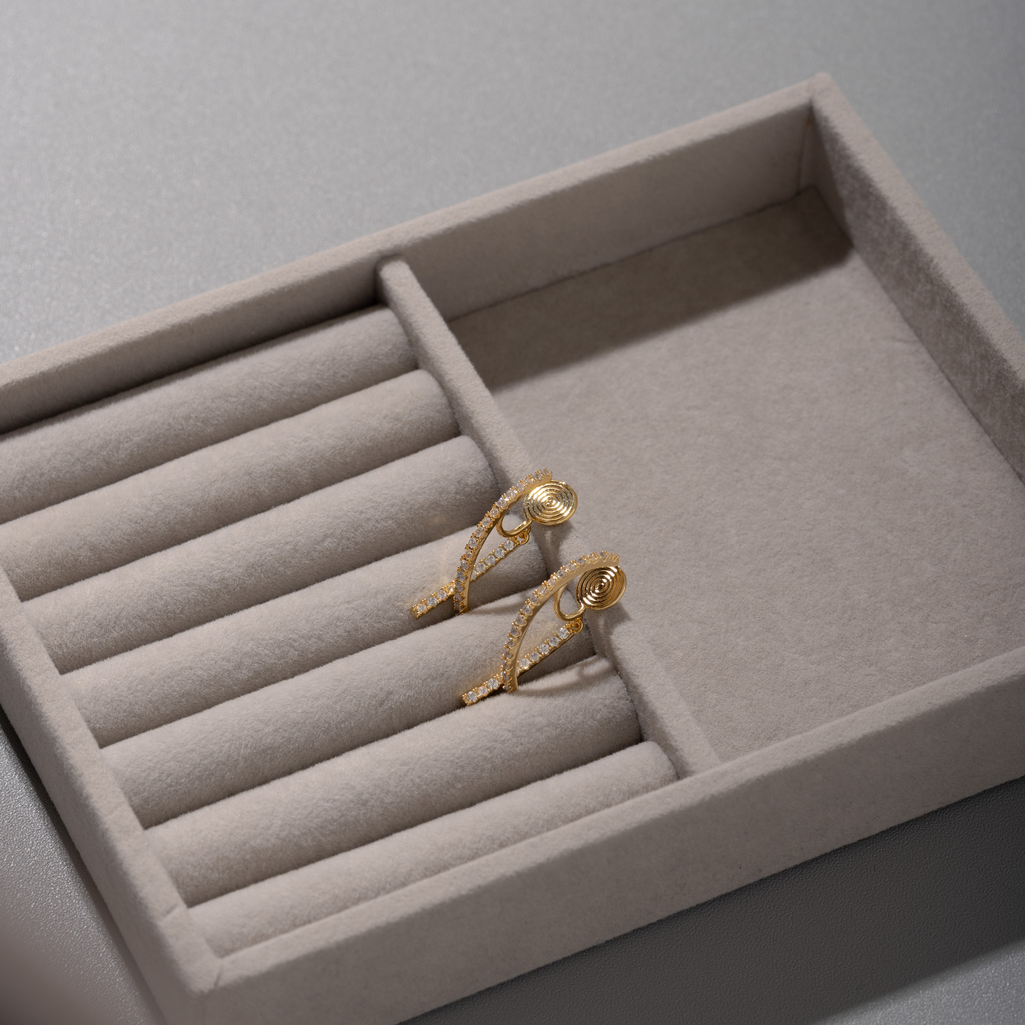 排鑽鋯石垂墜珍珠.蚊香盤耳夾 - 香檳金色