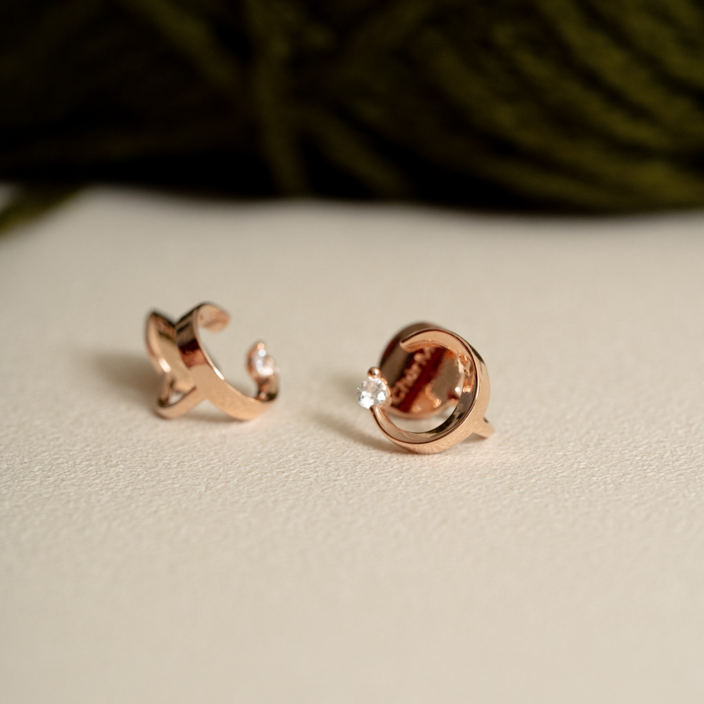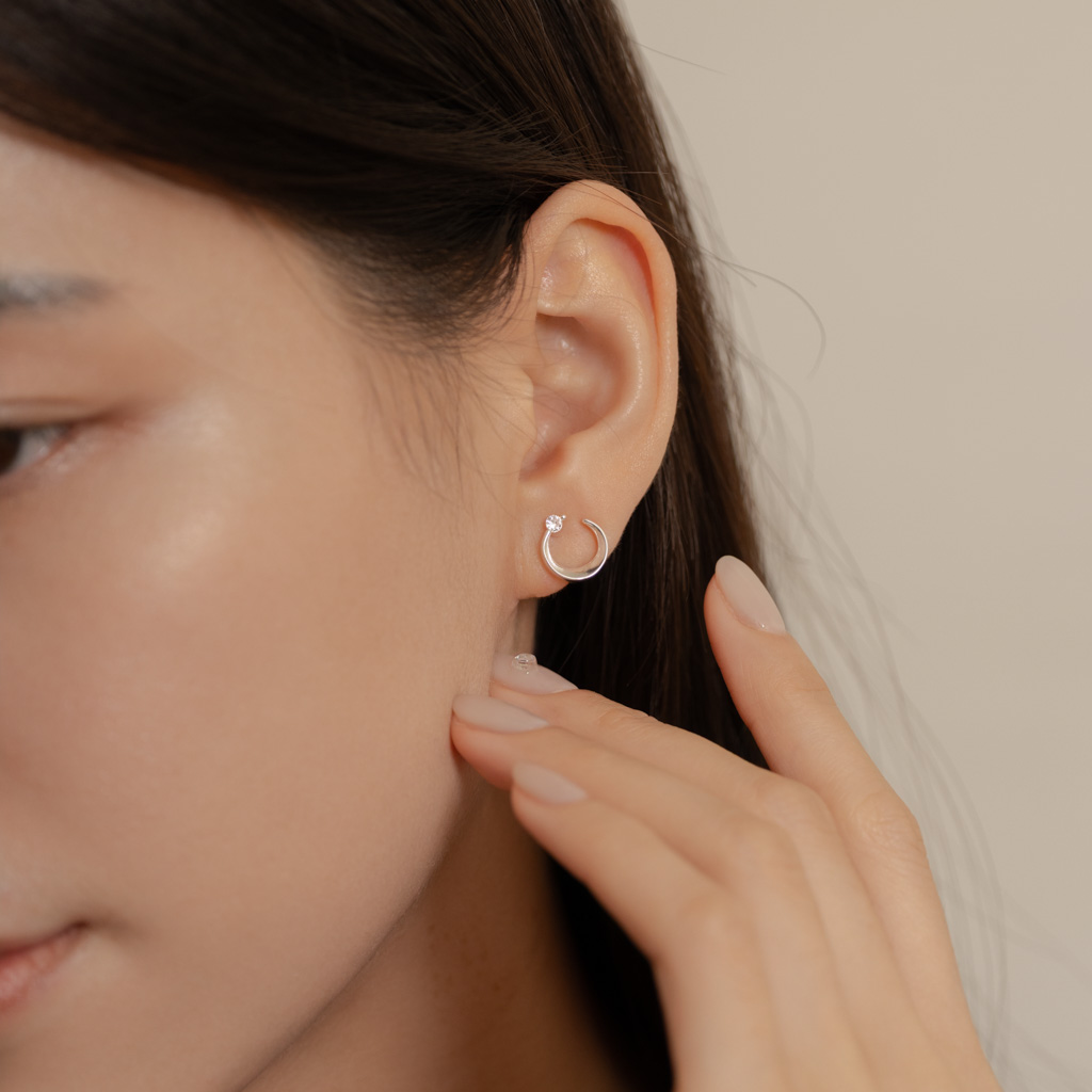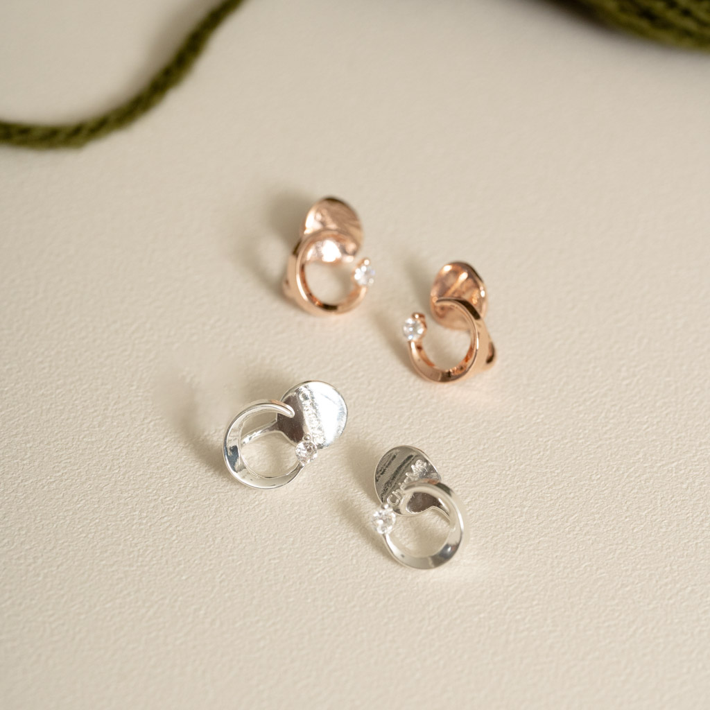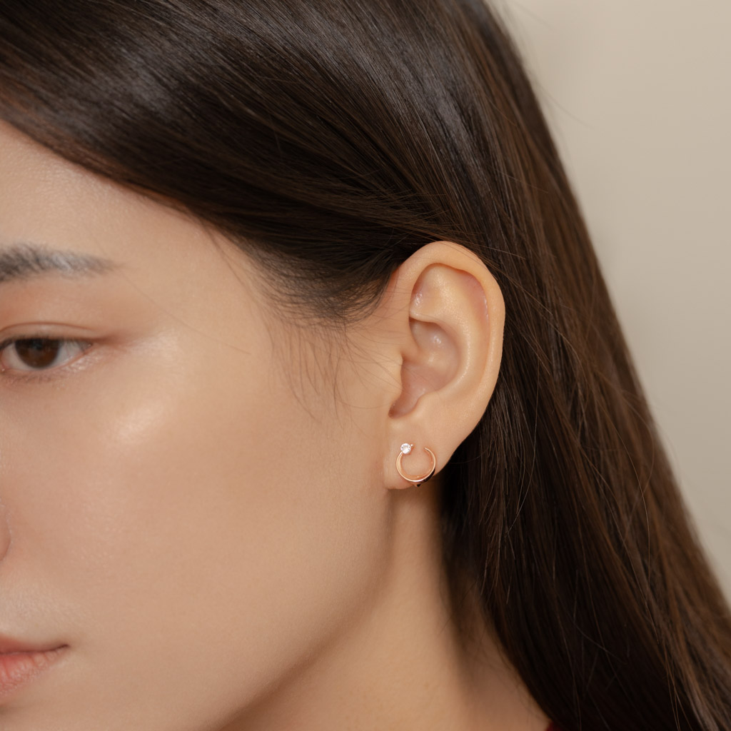 自訂款|簡約彎月鑲鑽.蚊香盤耳夾 - 銀色/玫瑰金色