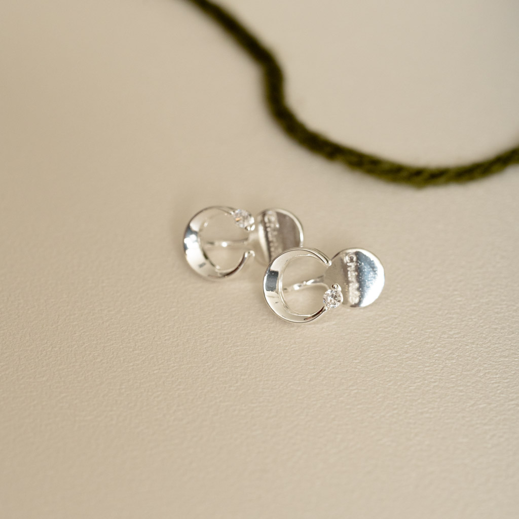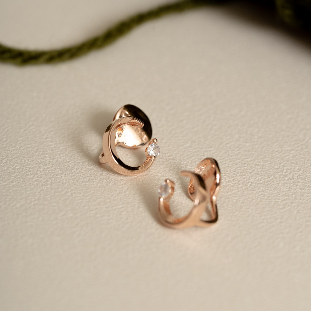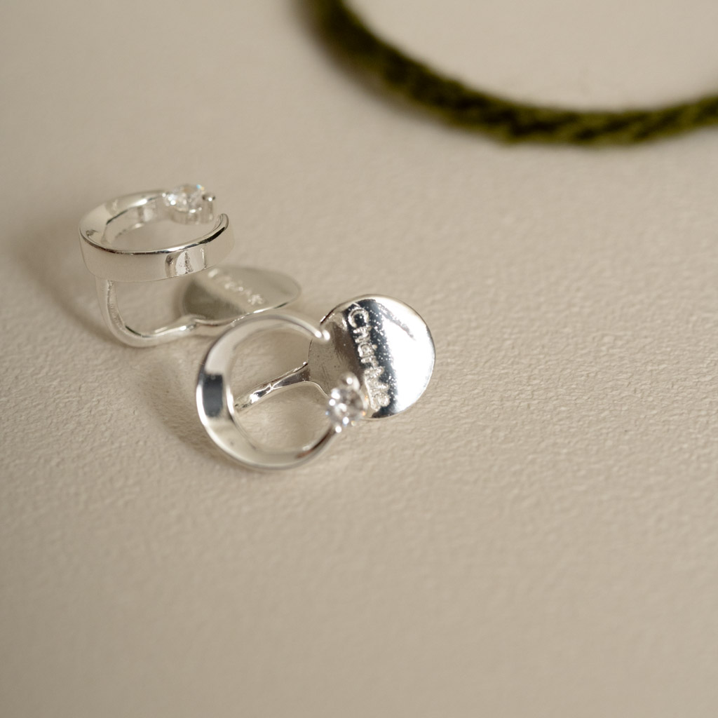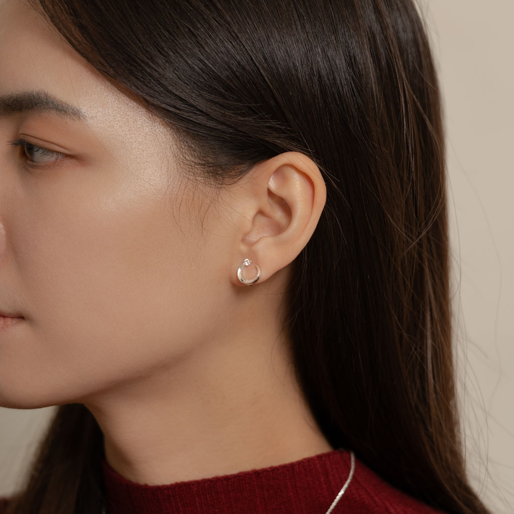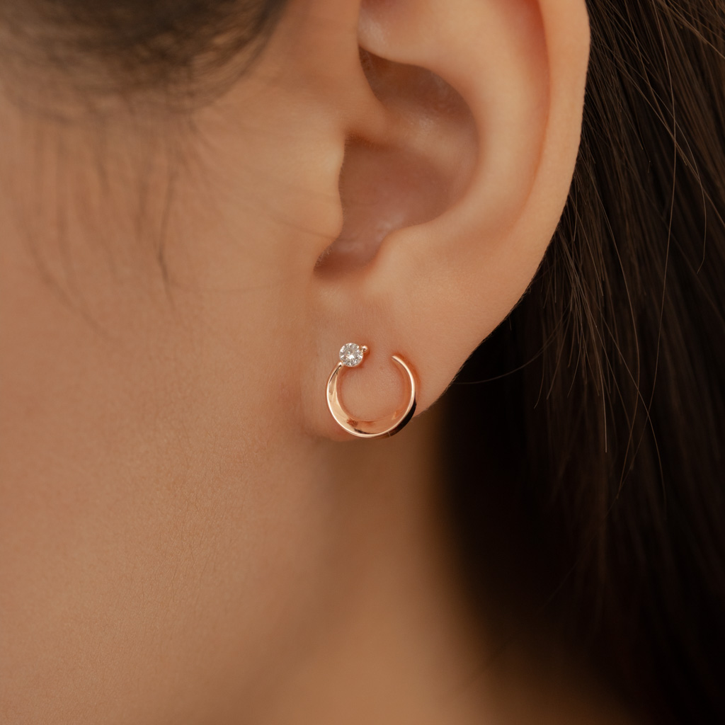 自訂款|簡約彎月鑲鑽.蚊香盤耳夾 - 銀色/玫瑰金色