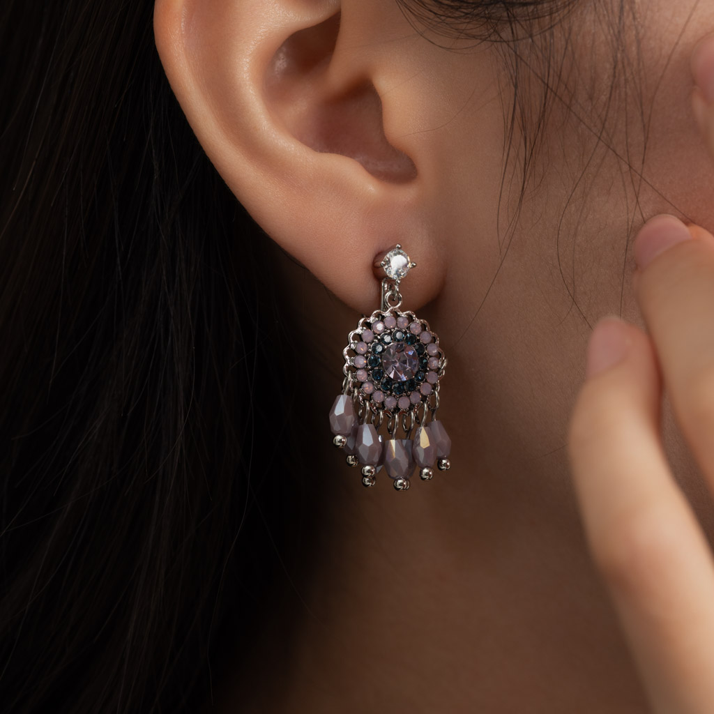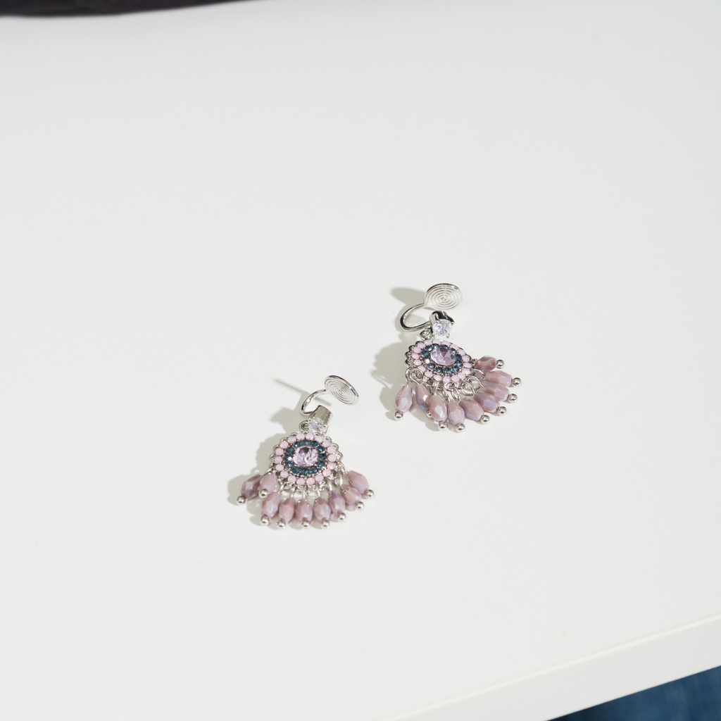 粉紫鑲鑽捕夢網.蚊香盤耳夾 - 紫色