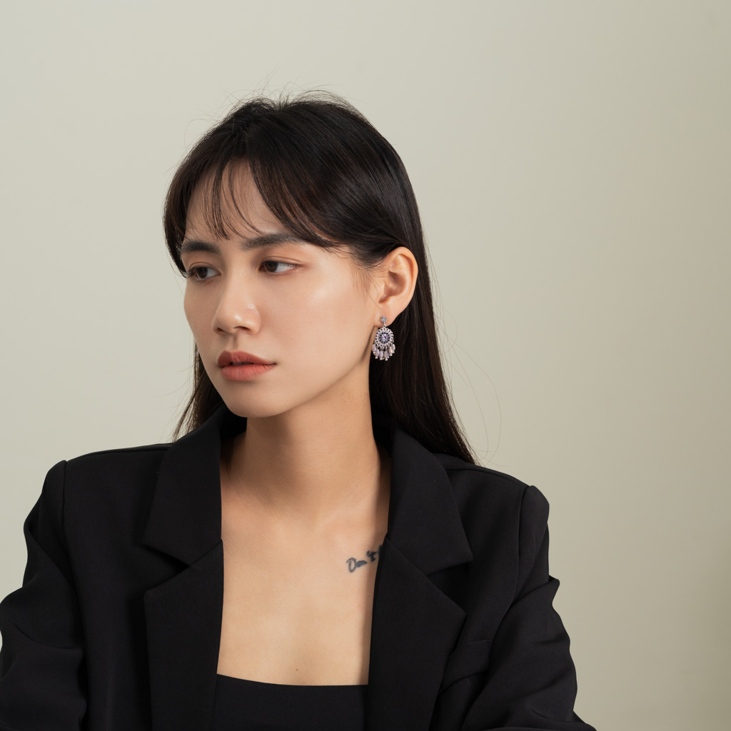 柔霧粉紫色系搭配小鑽設計
