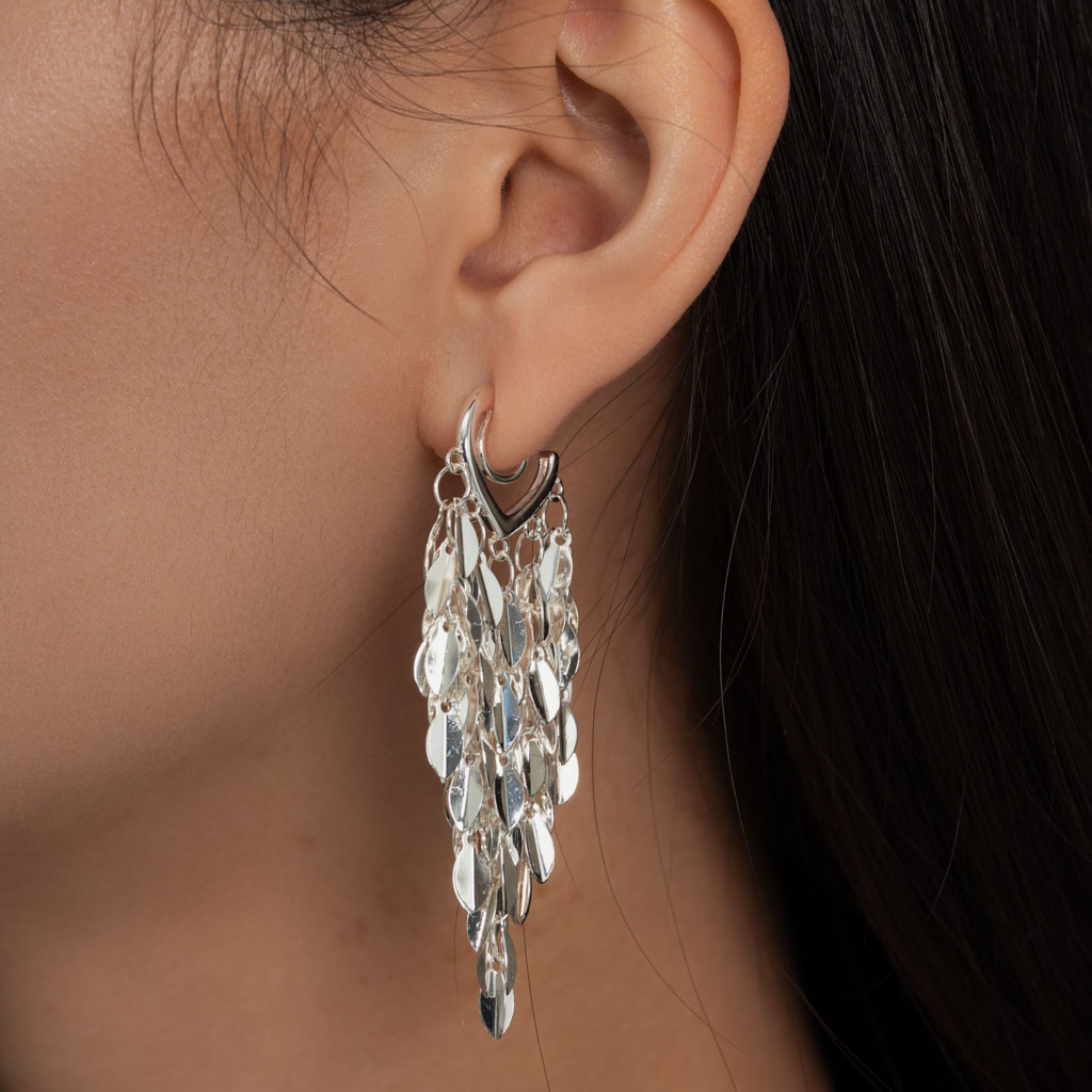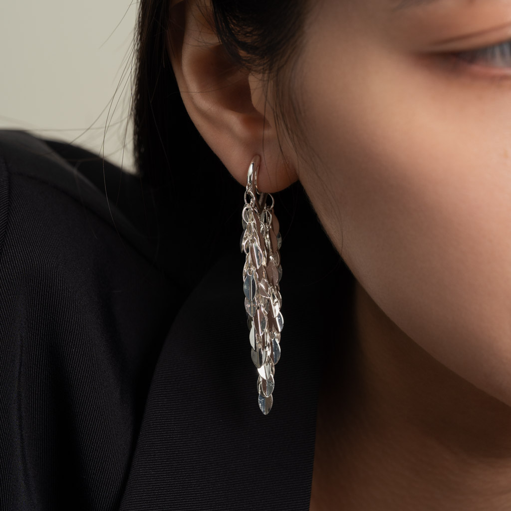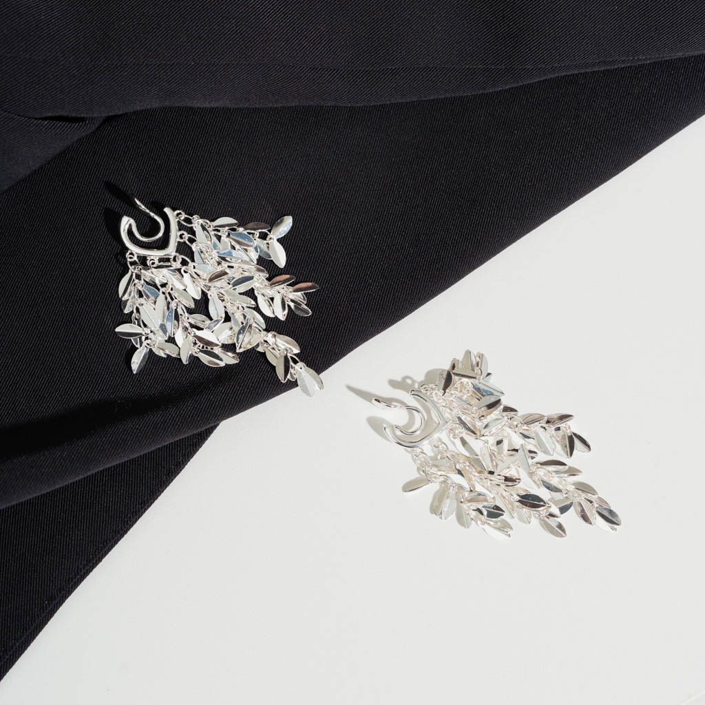 俐落層疊銀葉.蚊香盤耳夾 - 銀色