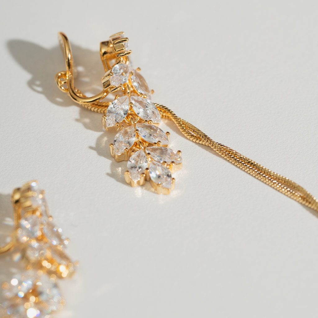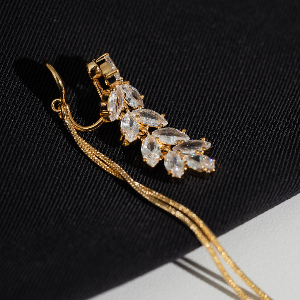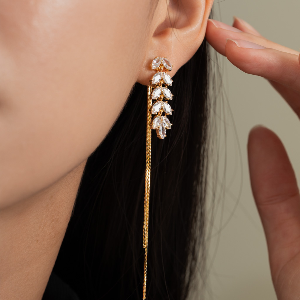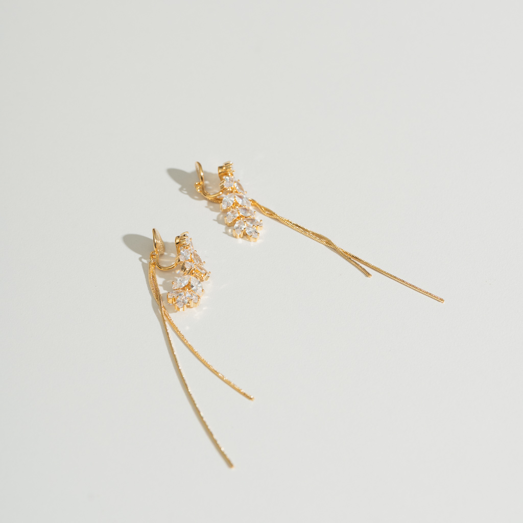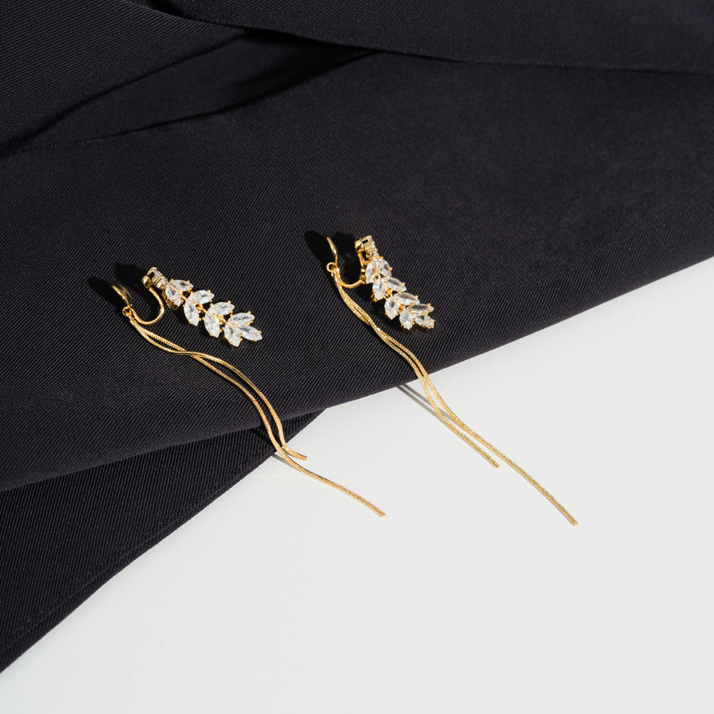 垂墜落葉流蘇.蚊香盤耳夾 - 金色