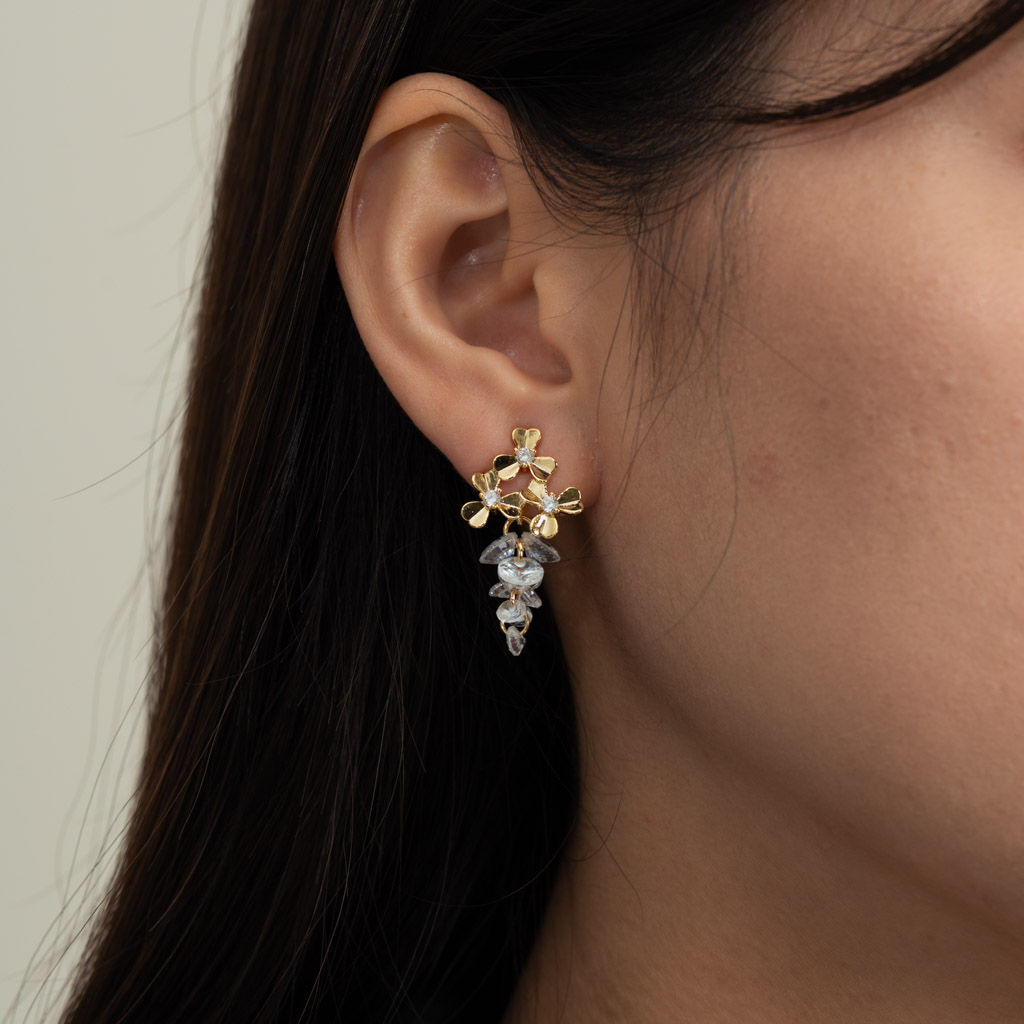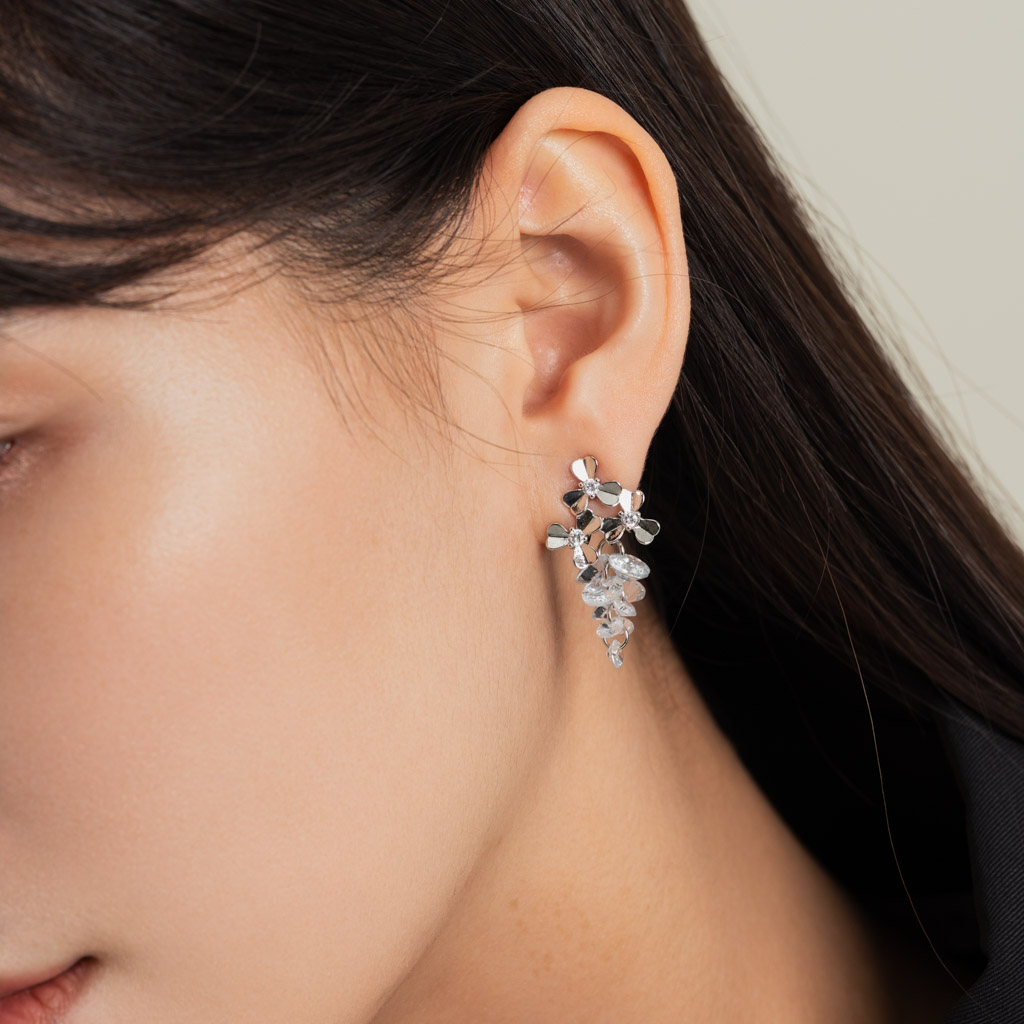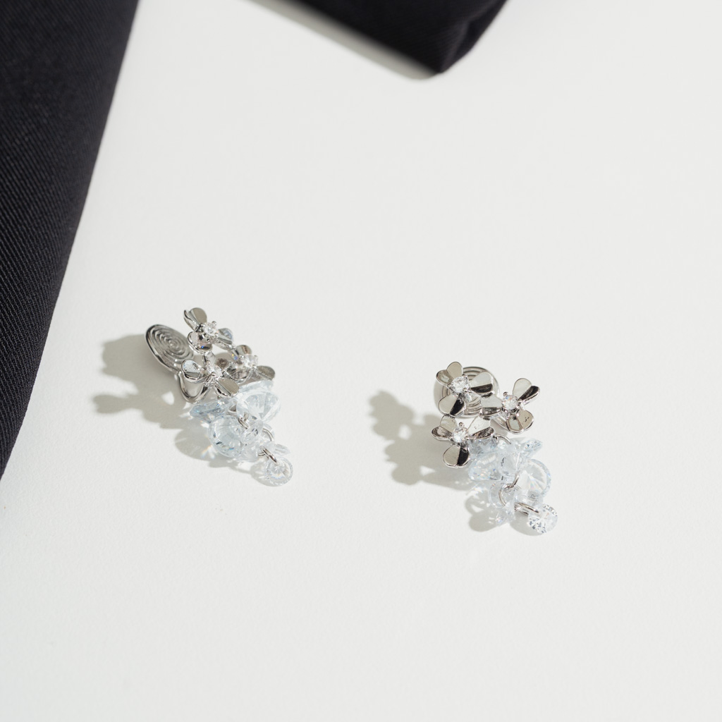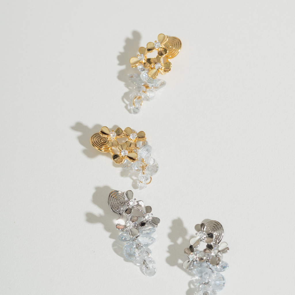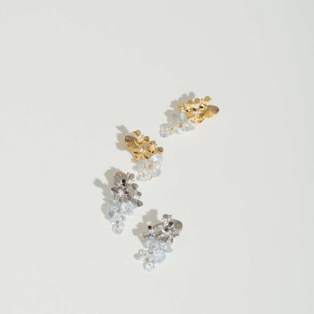 三花鑲鑽串串.蚊香盤耳夾 - 銀色/金色