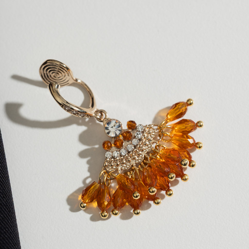 復古夕陽橘扇形.蚊香盤耳夾 - 棕色