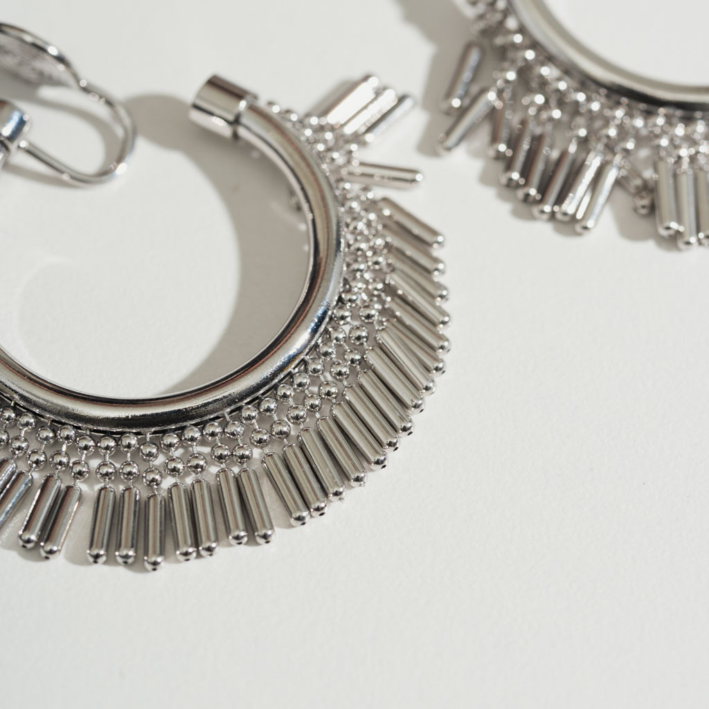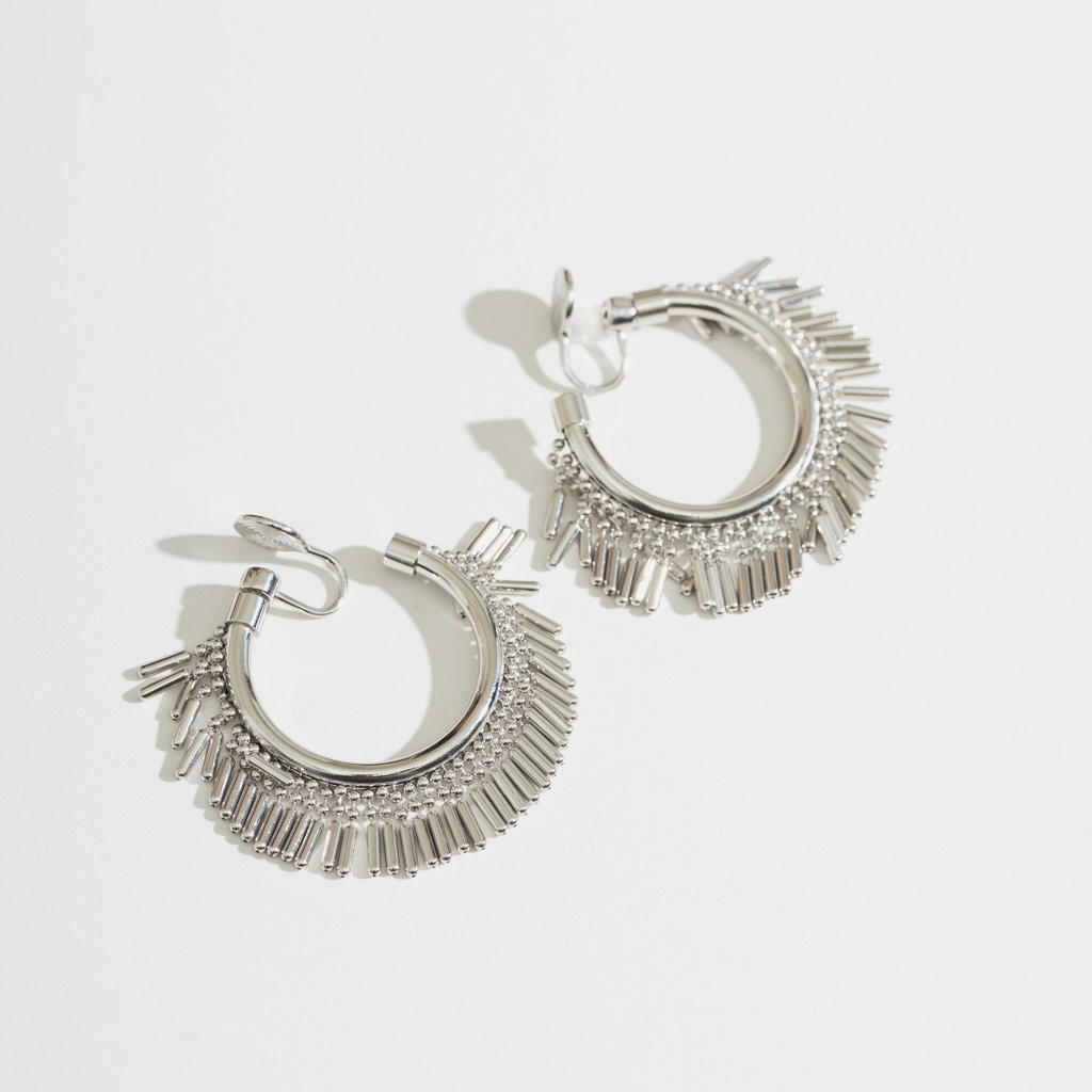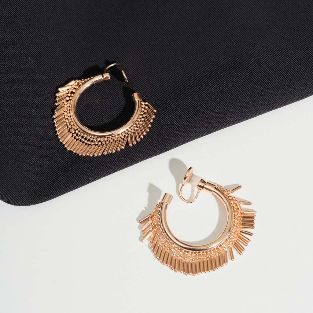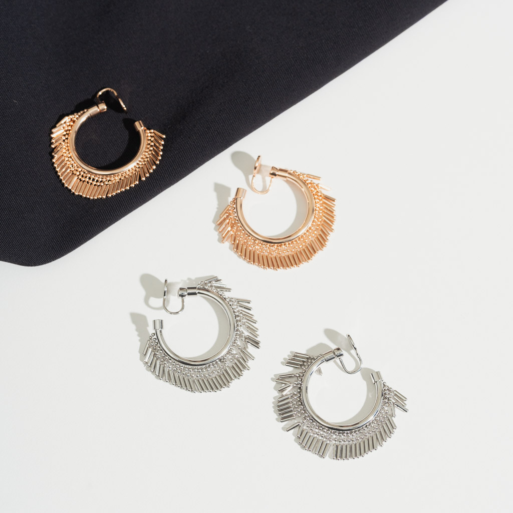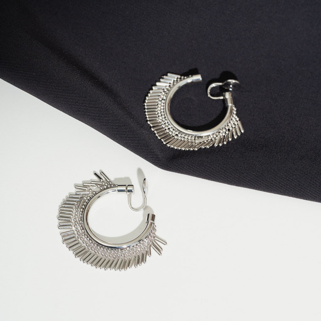 可轉動光芒線條C圈.蚊香盤耳夾 - 銀色/香檳金色