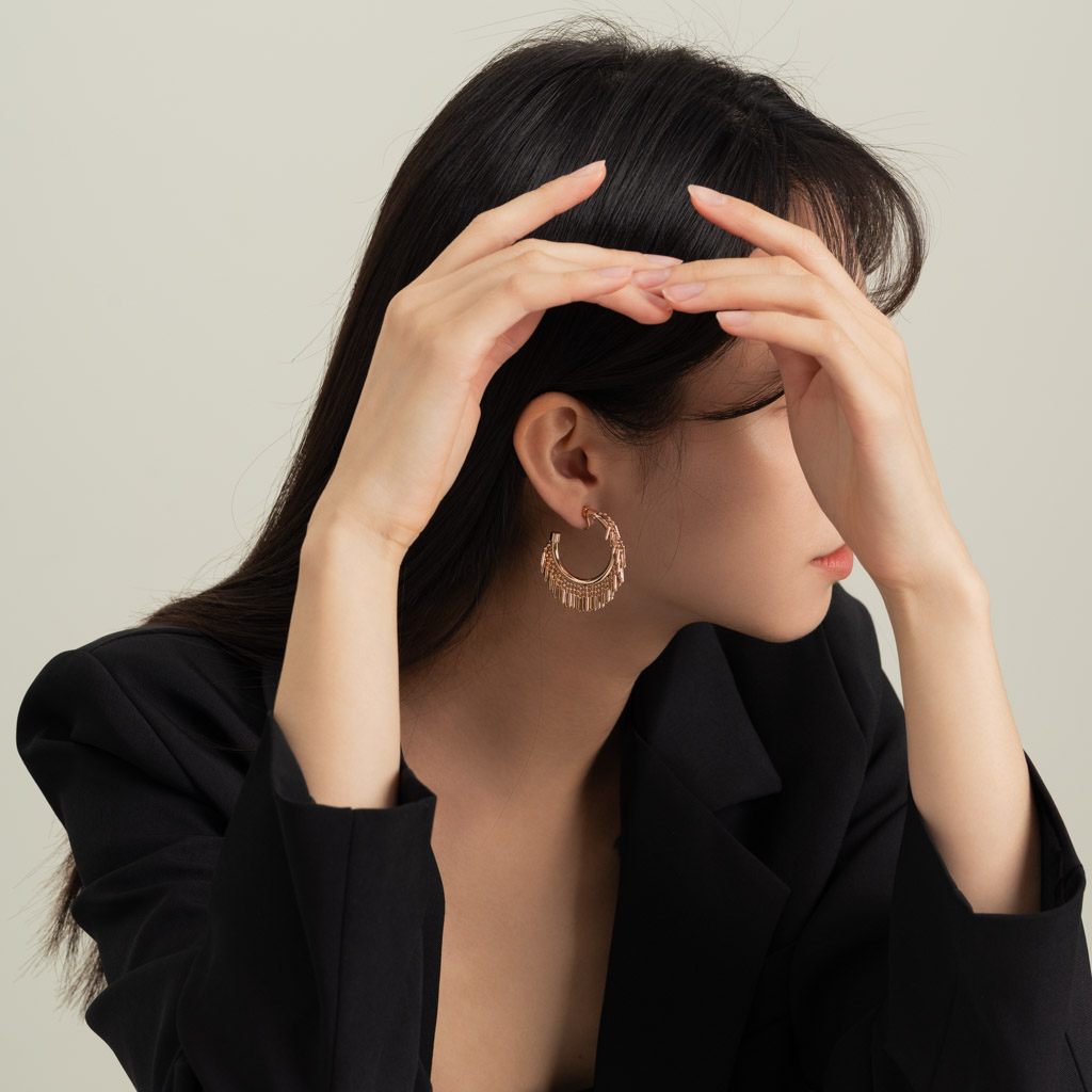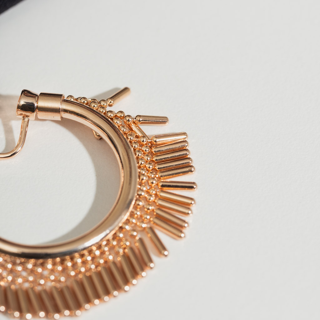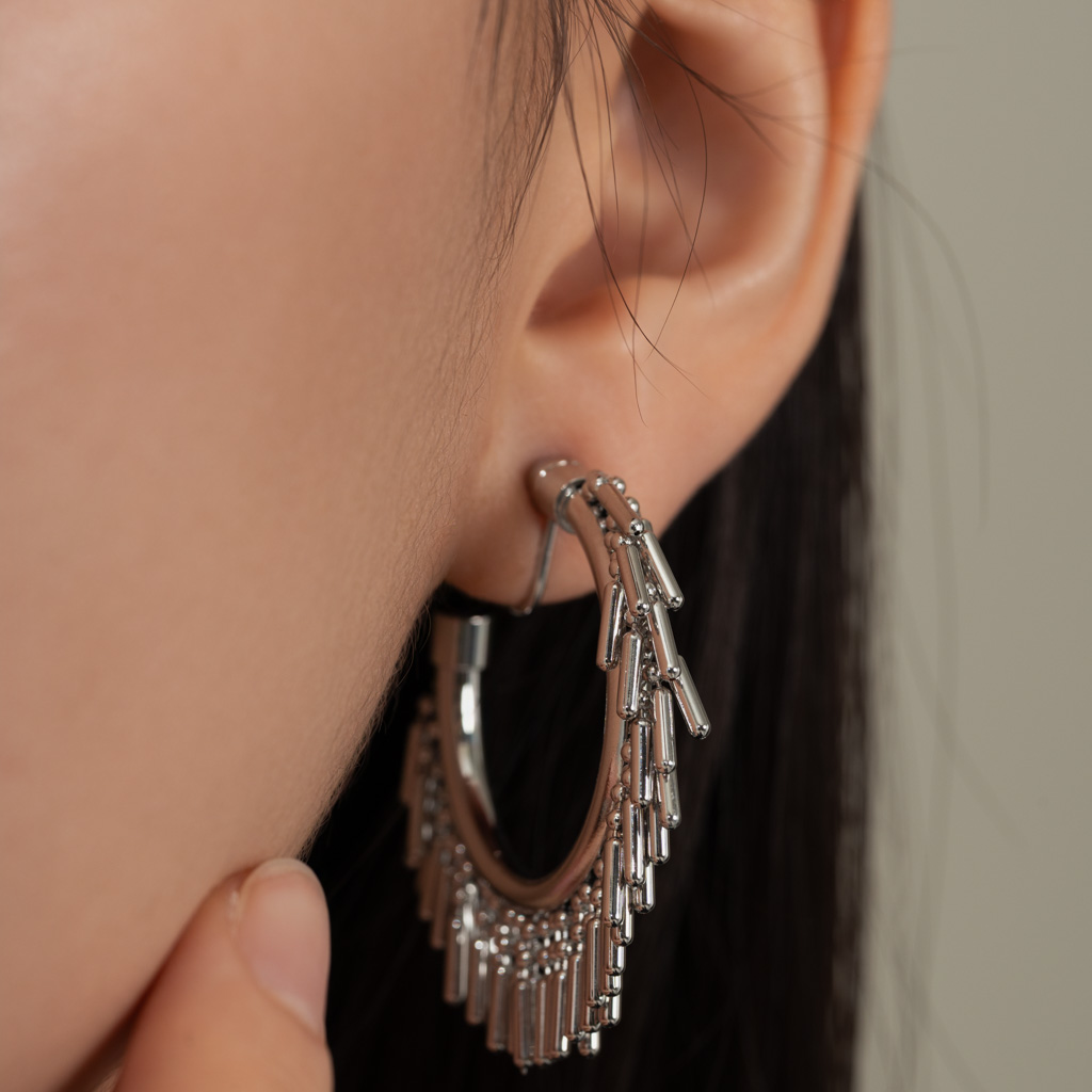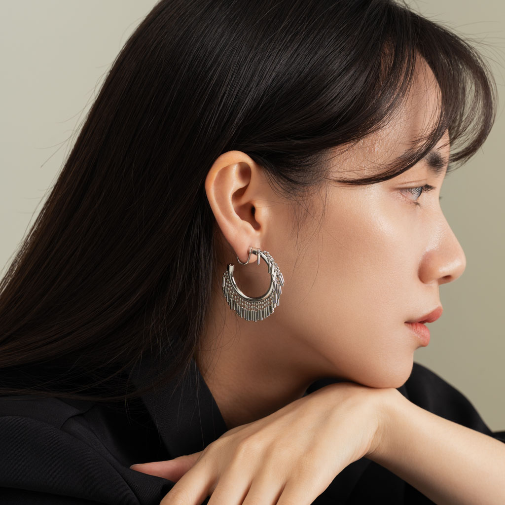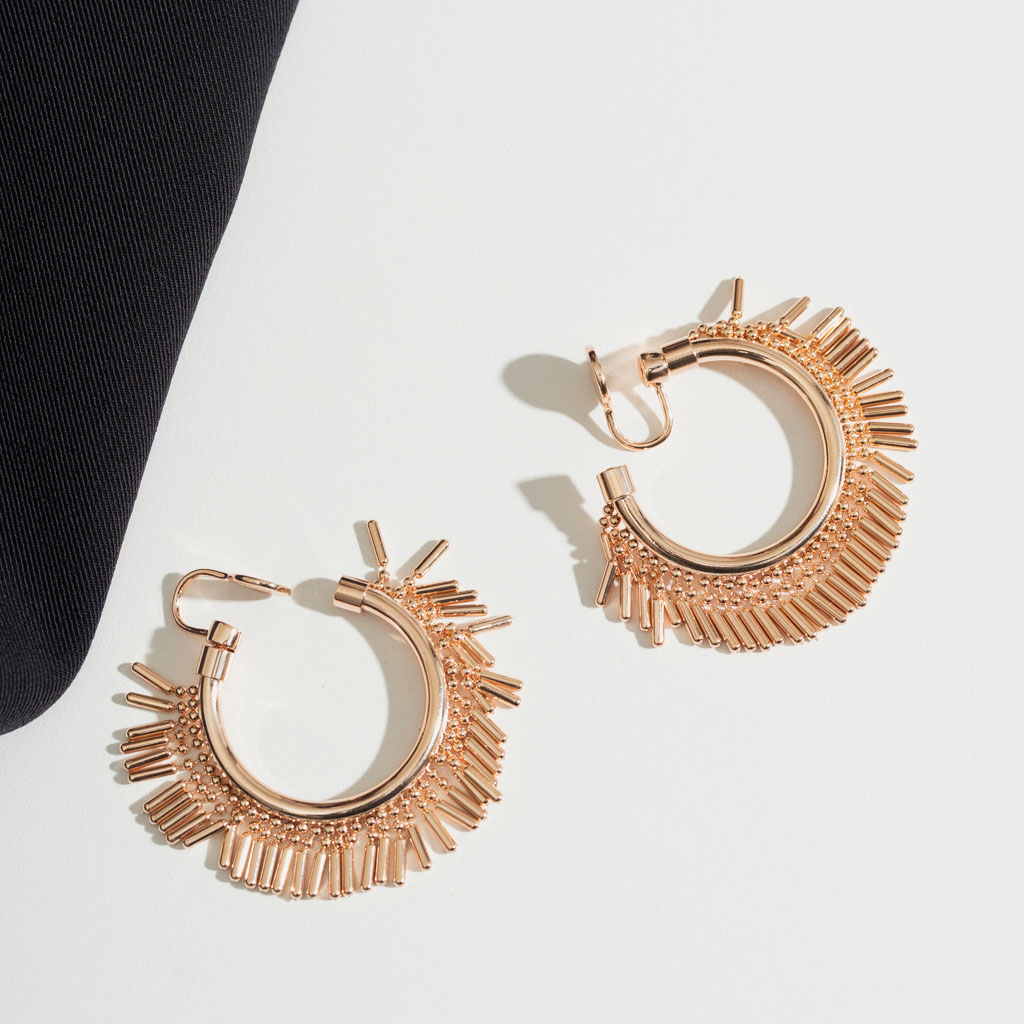 可轉動光芒線條C圈.蚊香盤耳夾 - 銀色/香檳金色