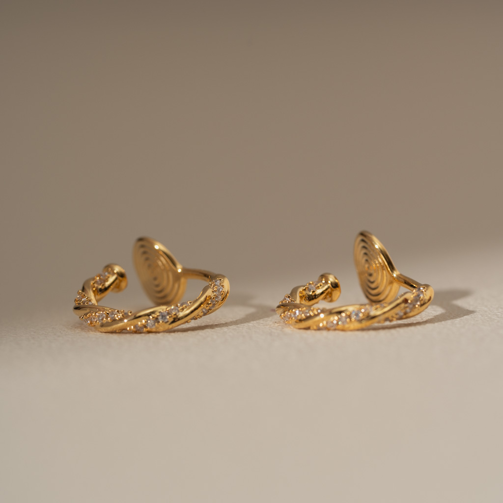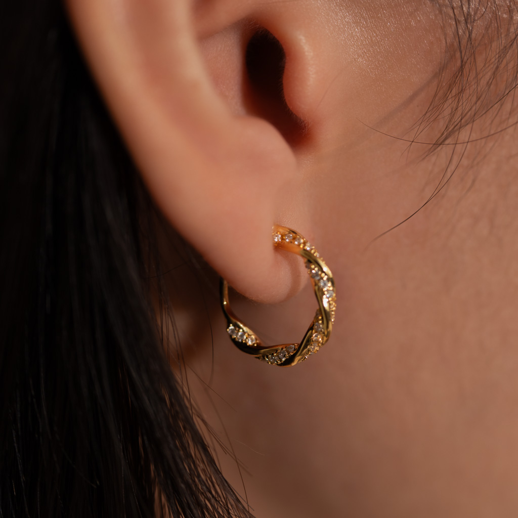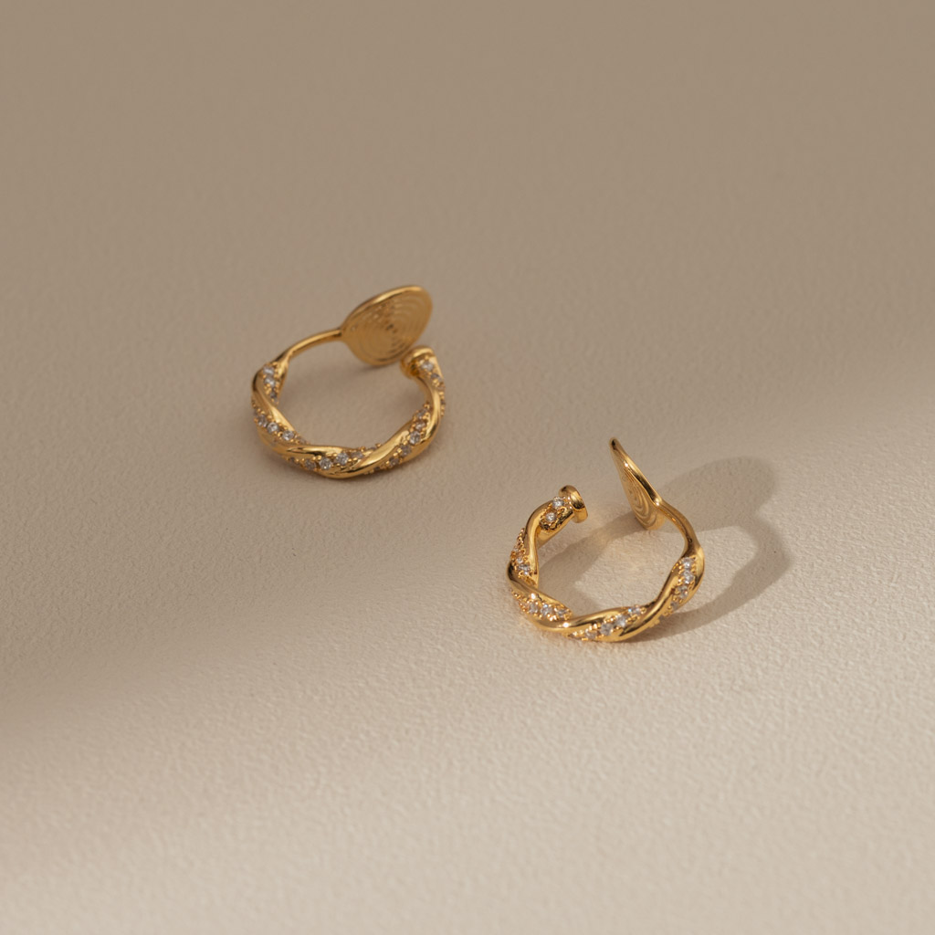 麻花鑲鑽C圈.蚊香盤耳夾 - 金色