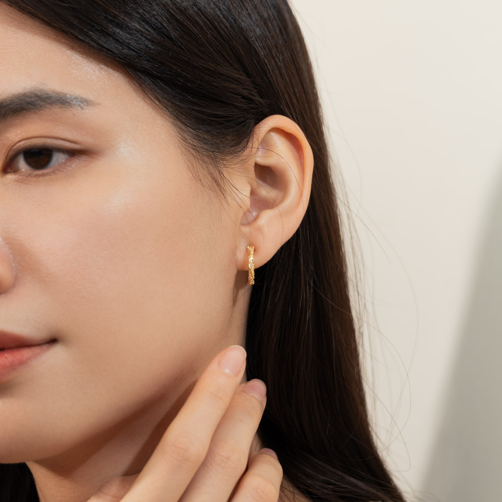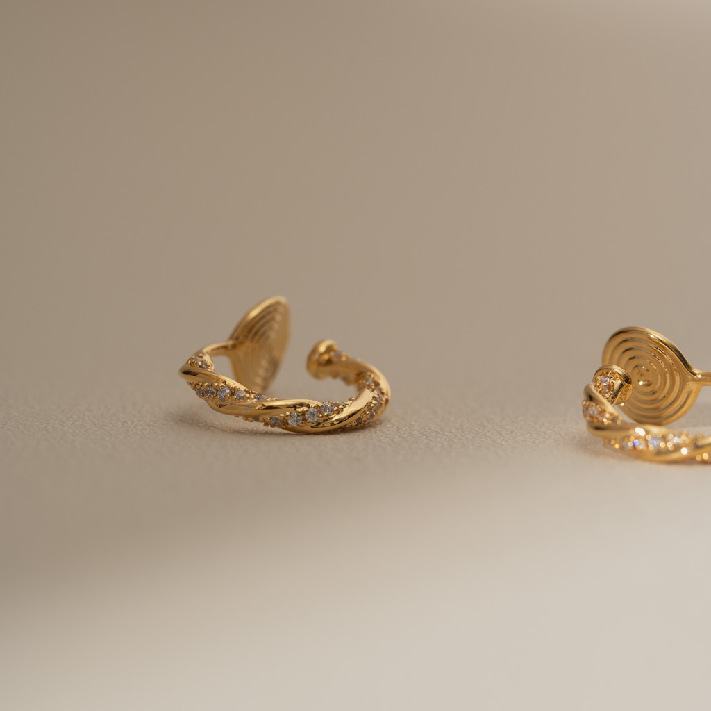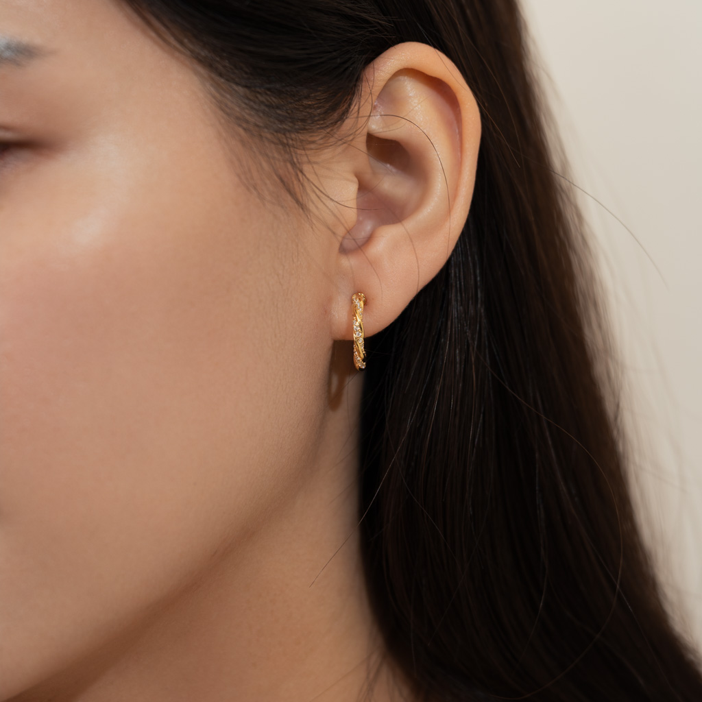 麻花鑲鑽C圈.蚊香盤耳夾 - 金色