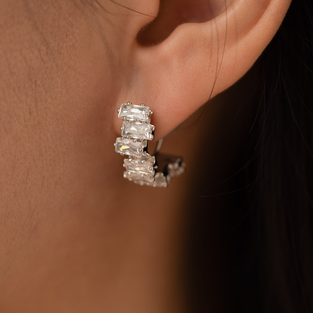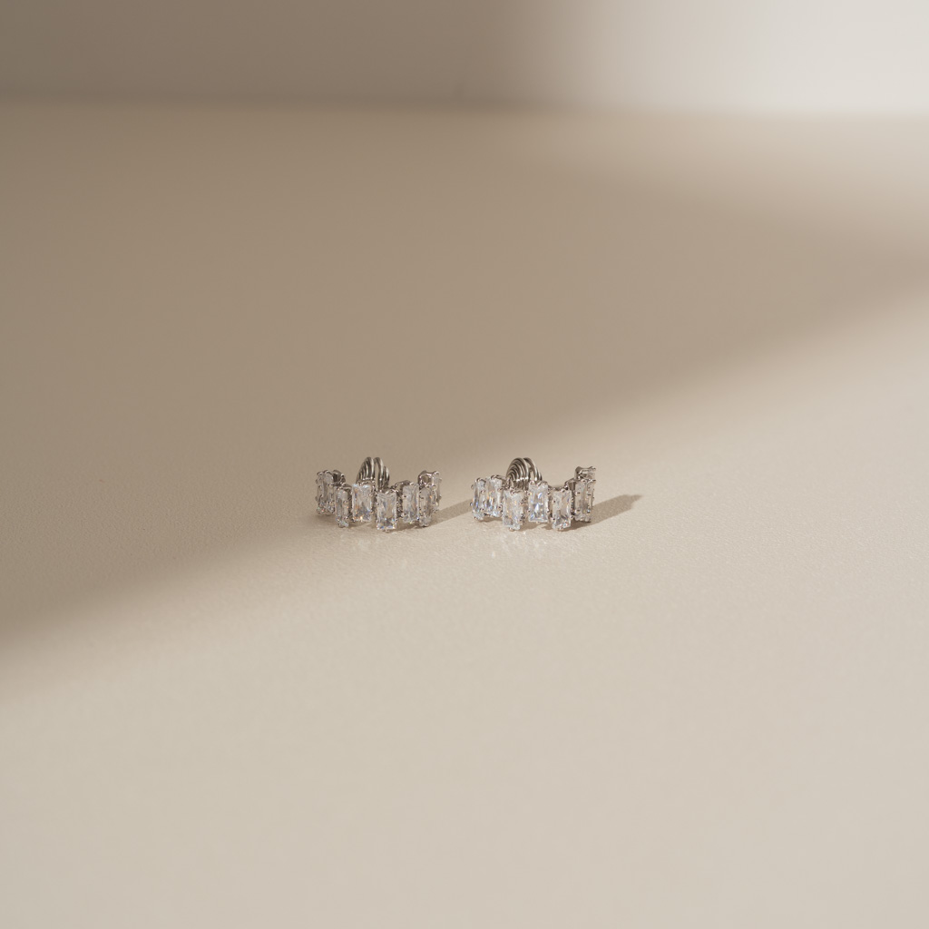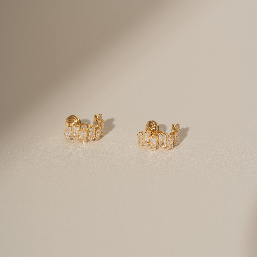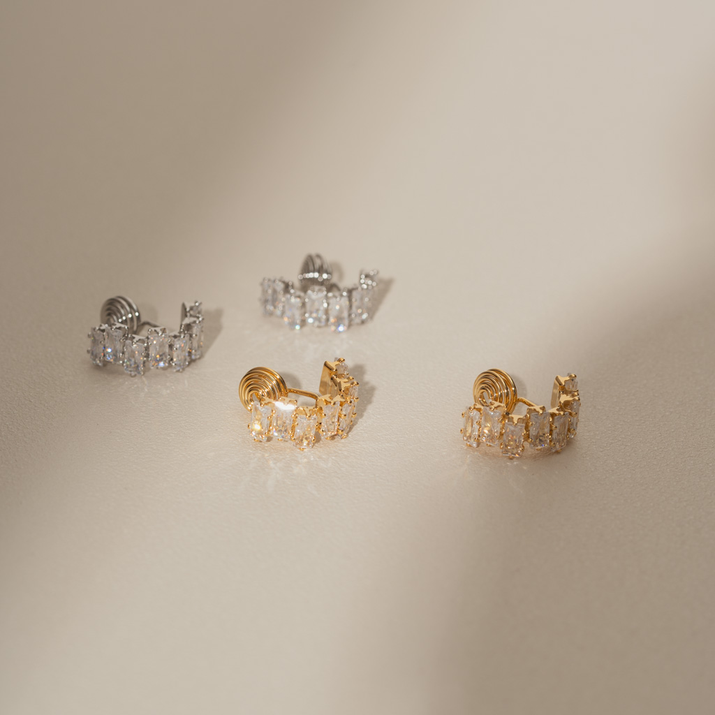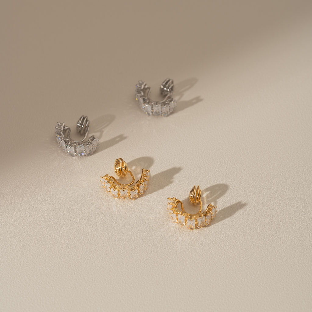 交錯排序鋯石.蚊香盤耳夾 - 銀色/金色