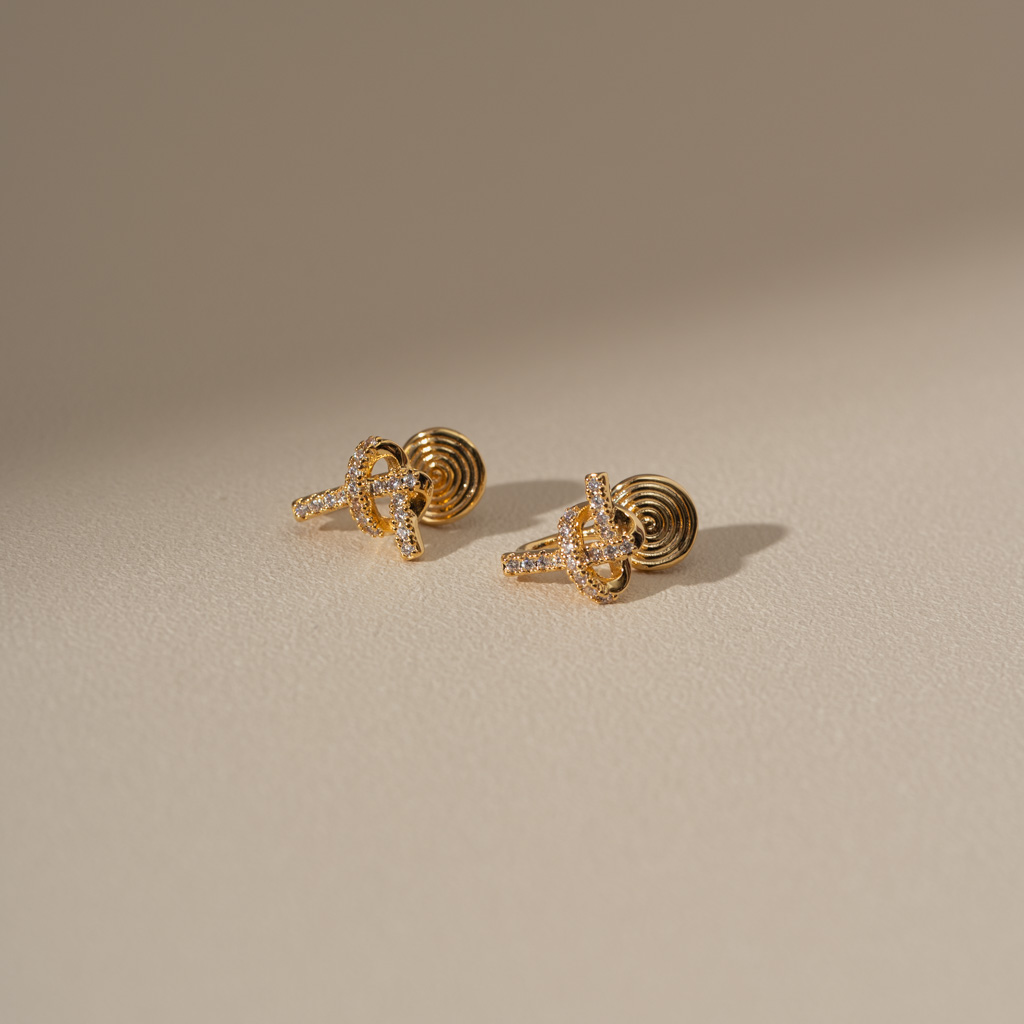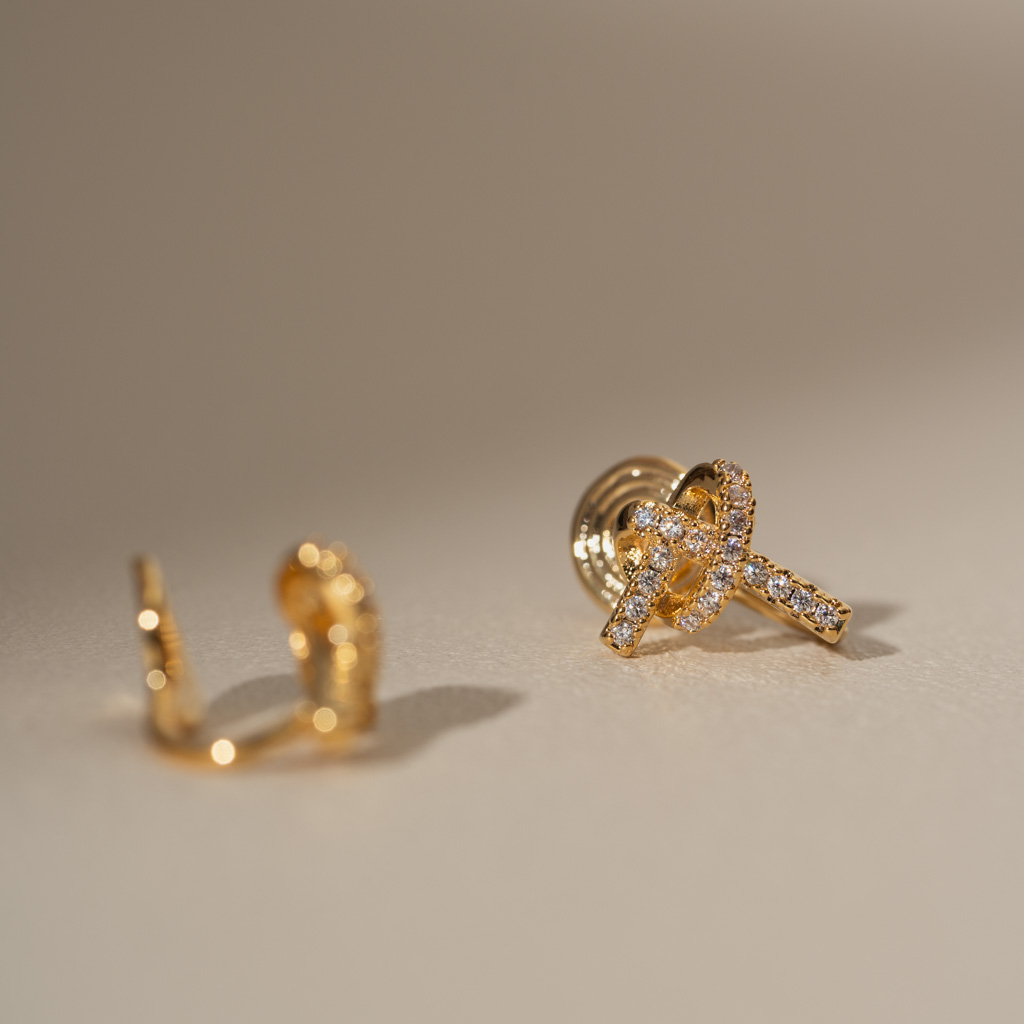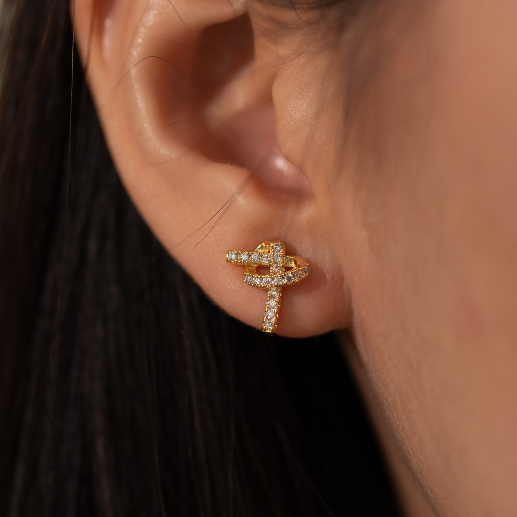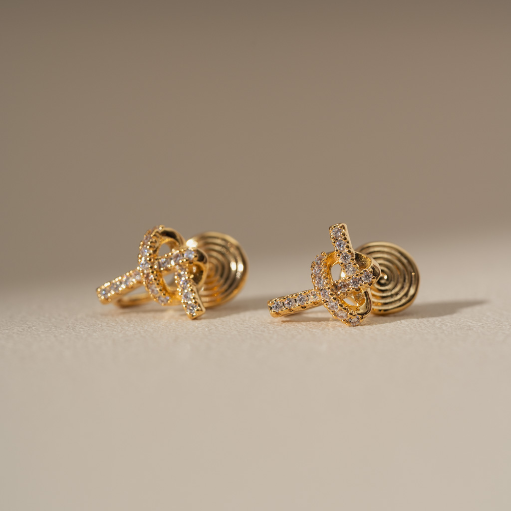 打結愛心鑲鑽線條.蚊香盤耳夾 - 金色