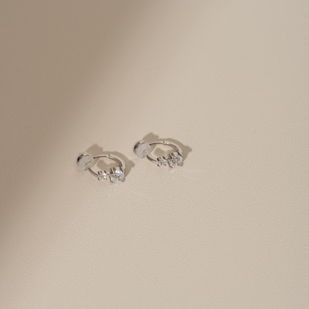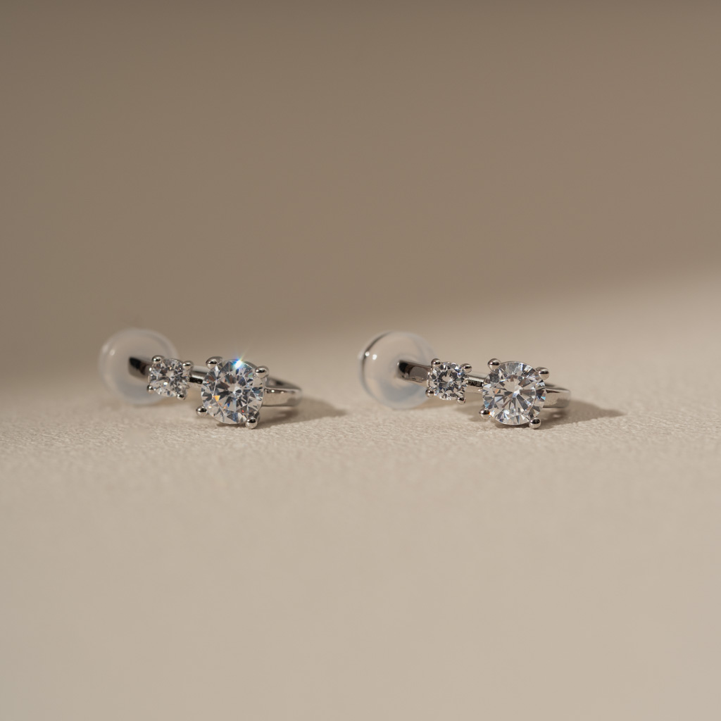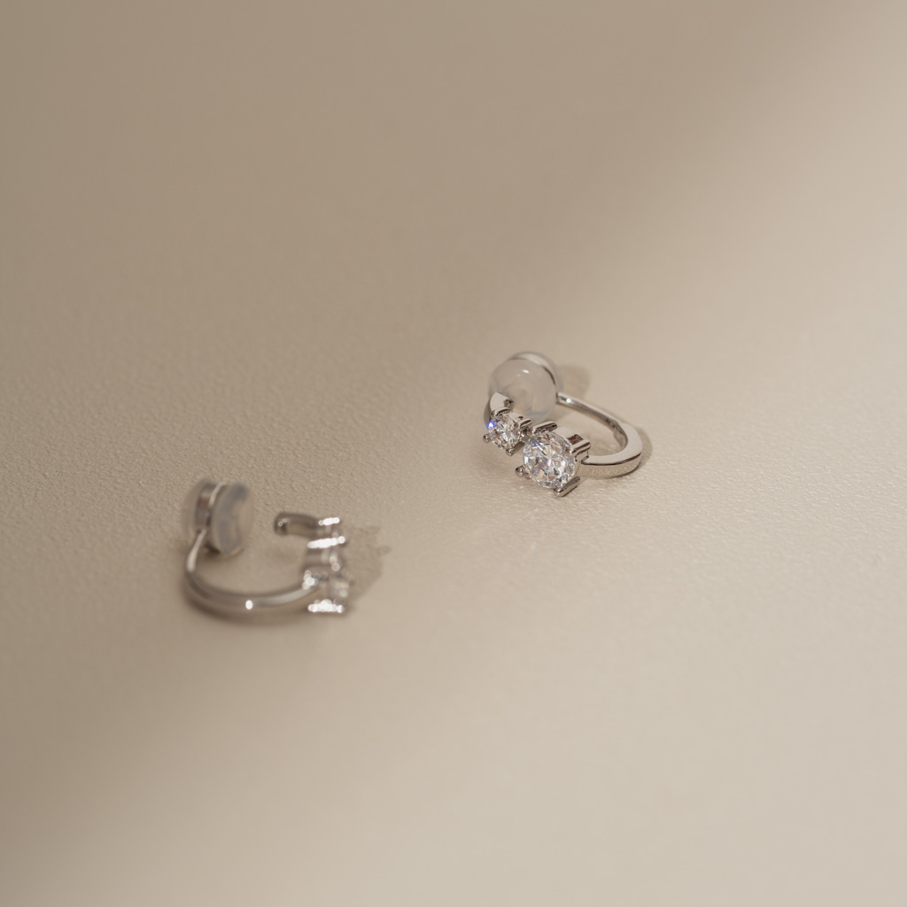 簡約細閃雙鑽.蚊香盤耳夾 - 銀色