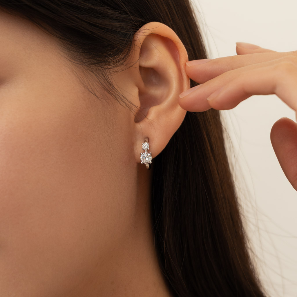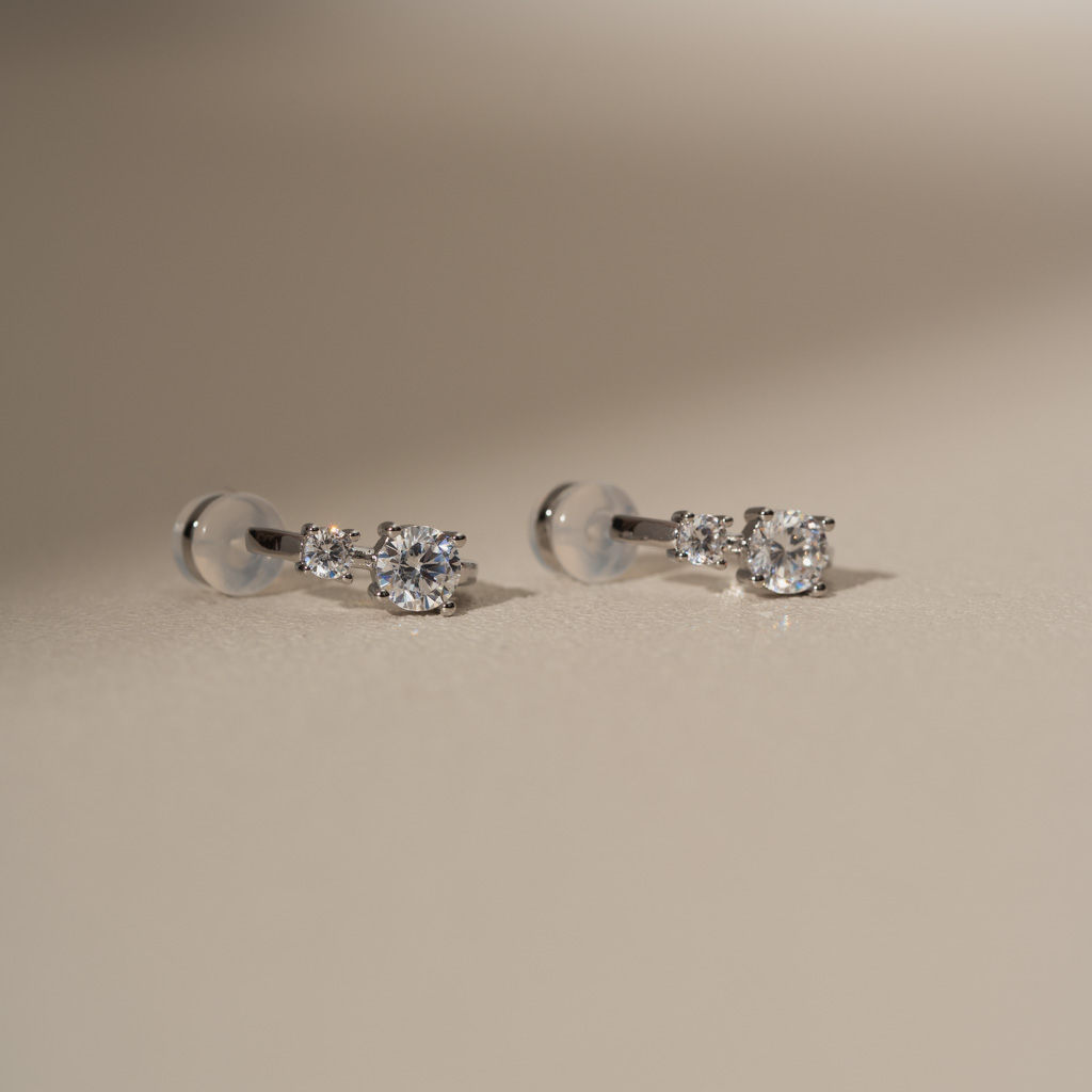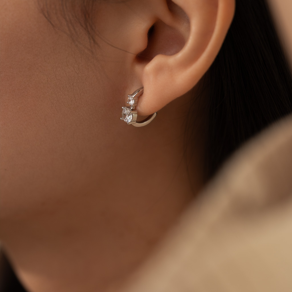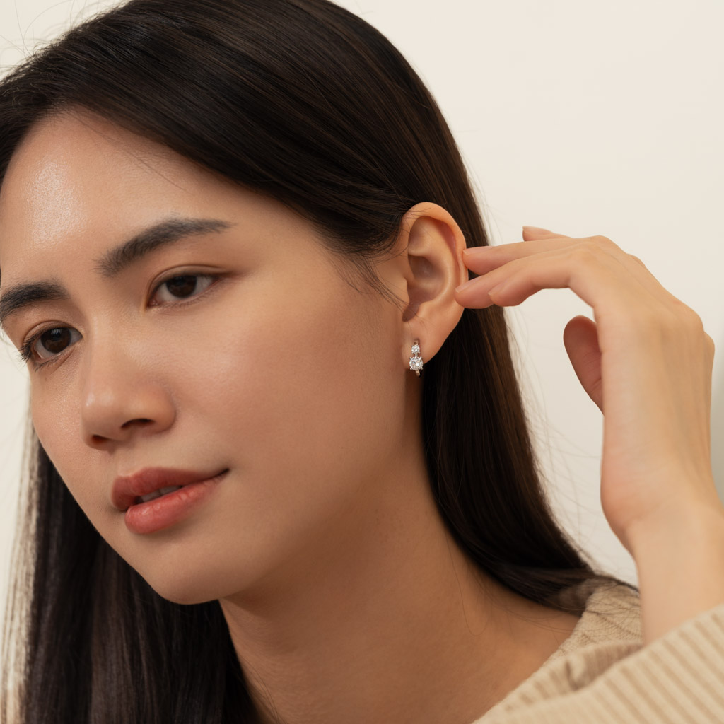 簡約細閃雙鑽.蚊香盤耳夾 - 銀色