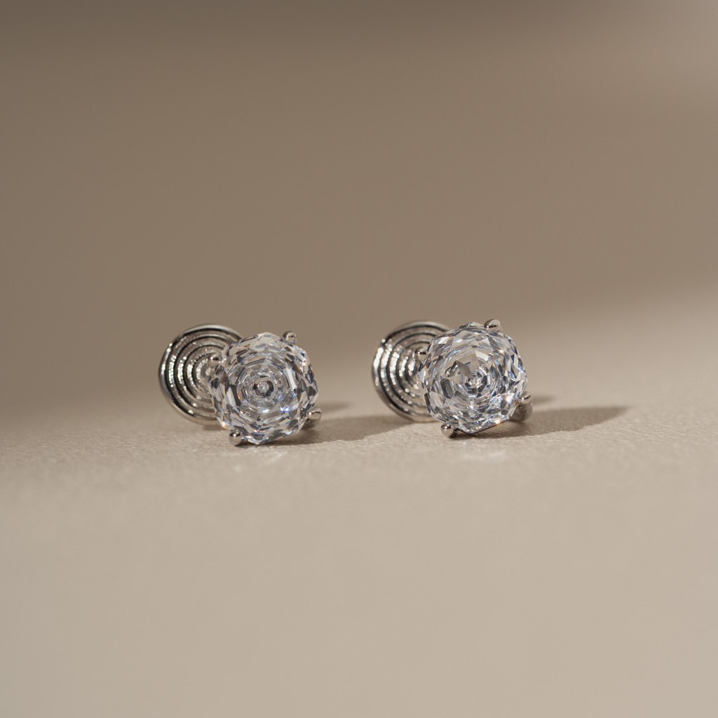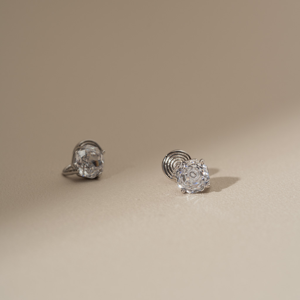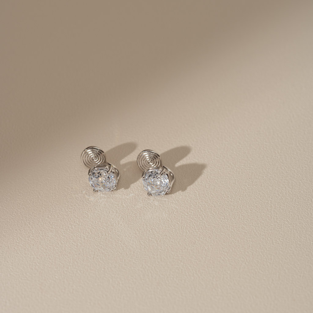 玫瑰雕刻圓方鑽.蚊香盤耳夾 - 銀色