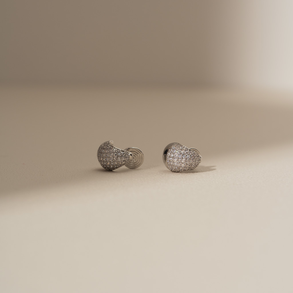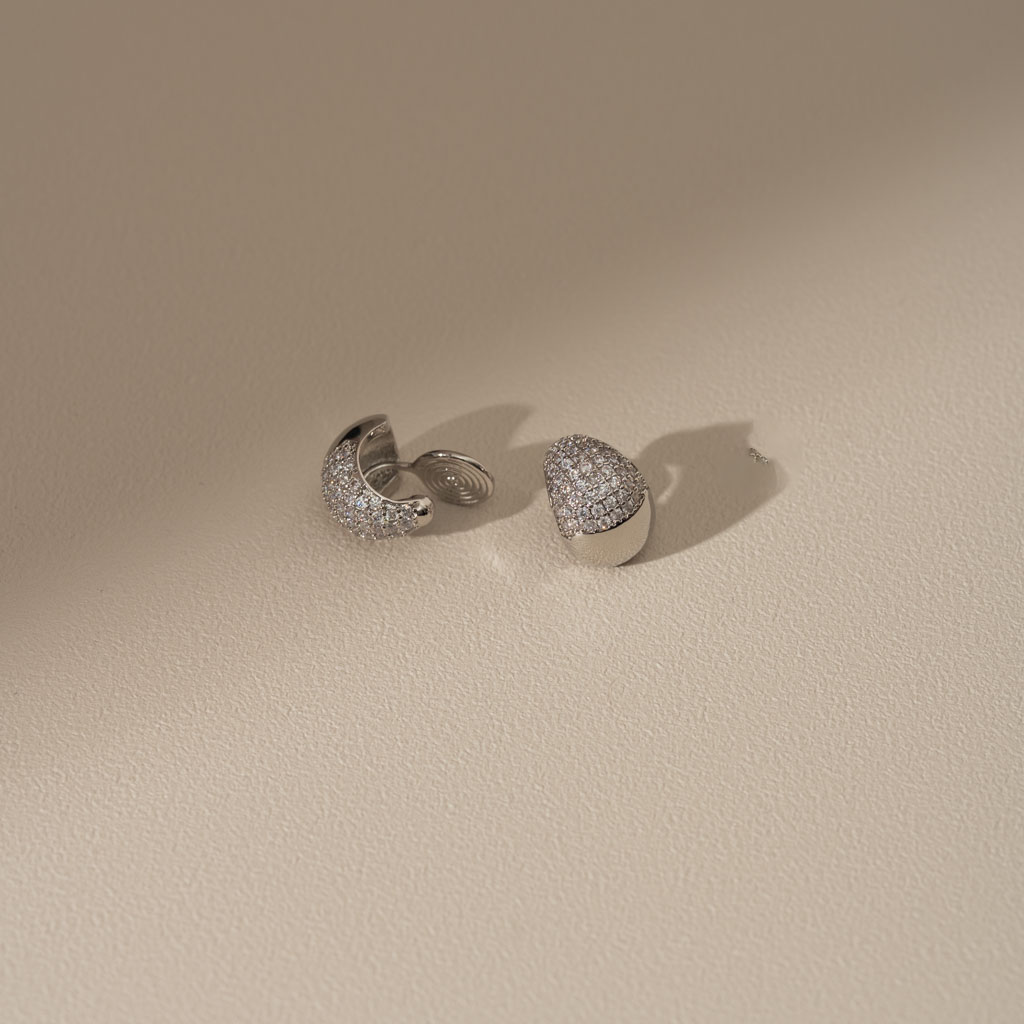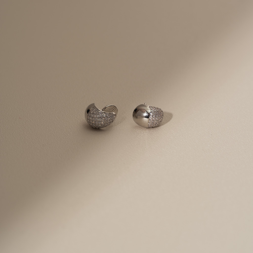 圓弧細滿鑽.蚊香盤耳夾 - 銀色