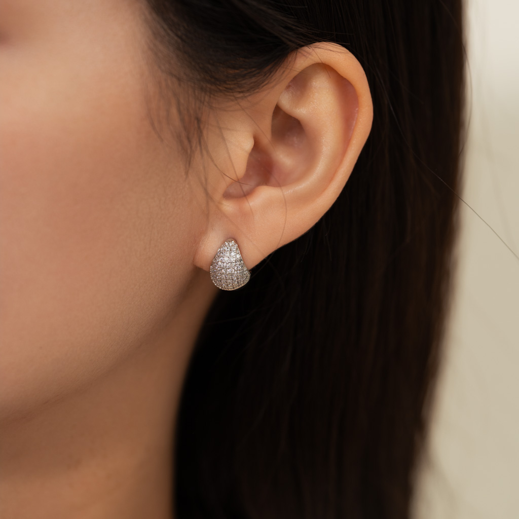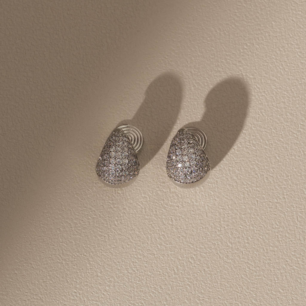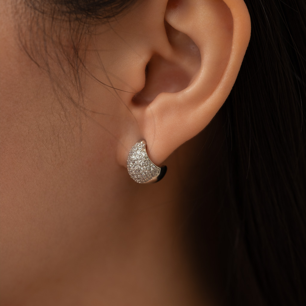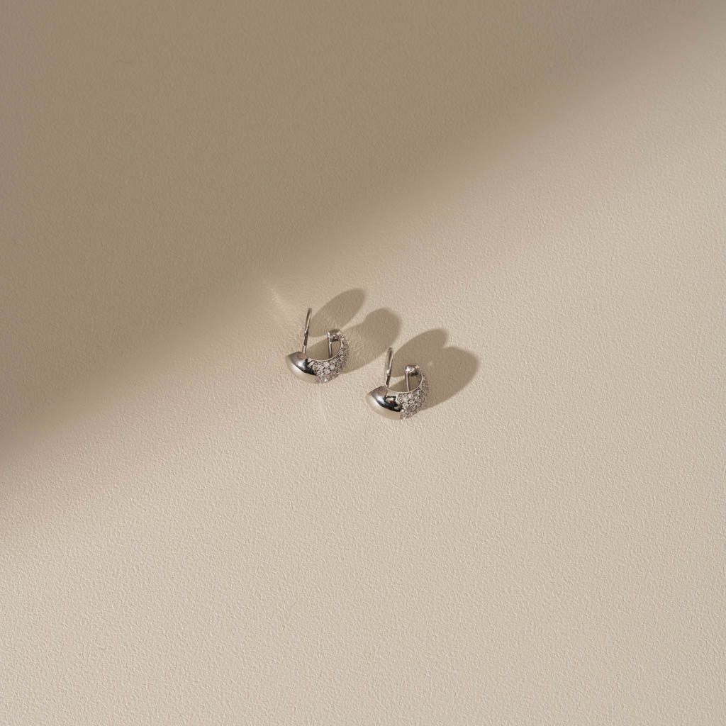 圓弧細滿鑽.蚊香盤耳夾 - 銀色