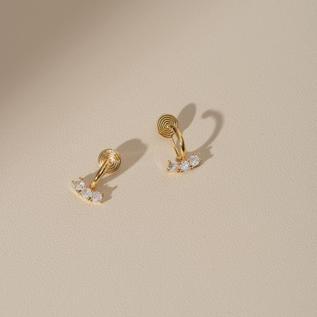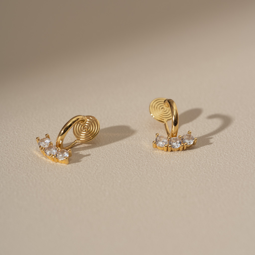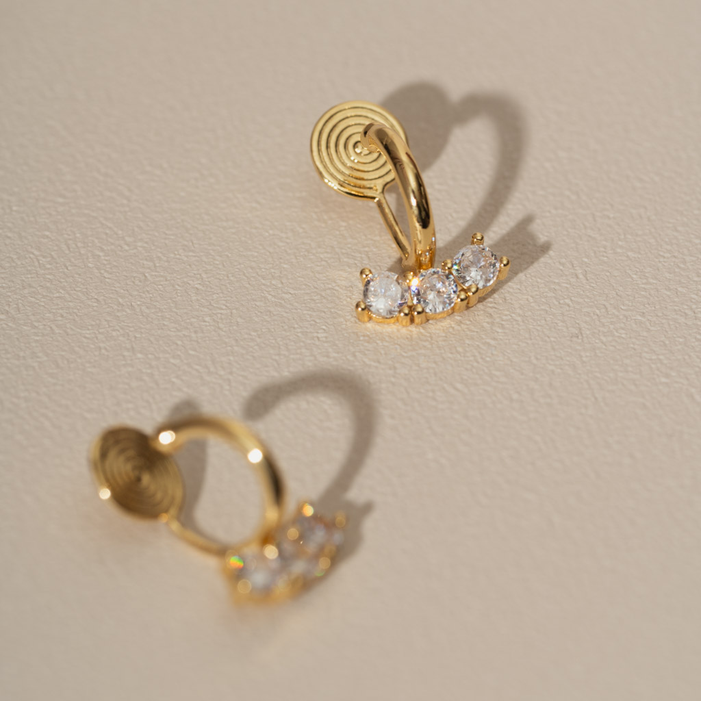 簡約弧形三鑽.蚊香盤耳夾 - 金色