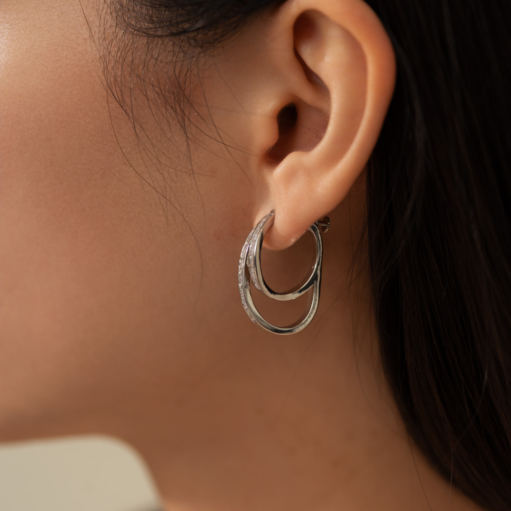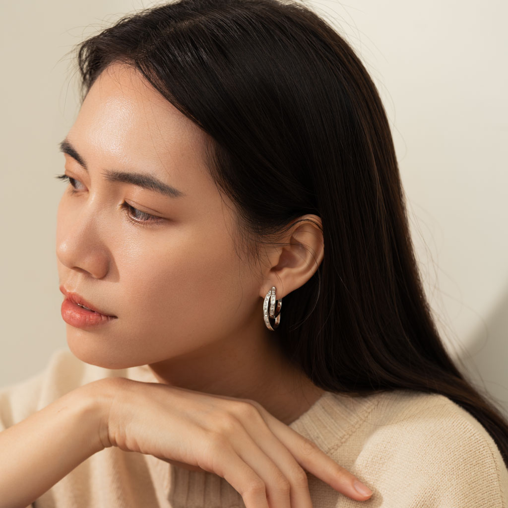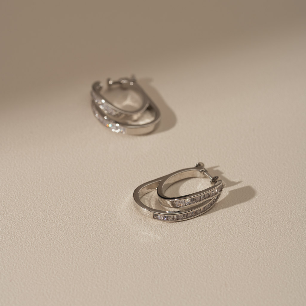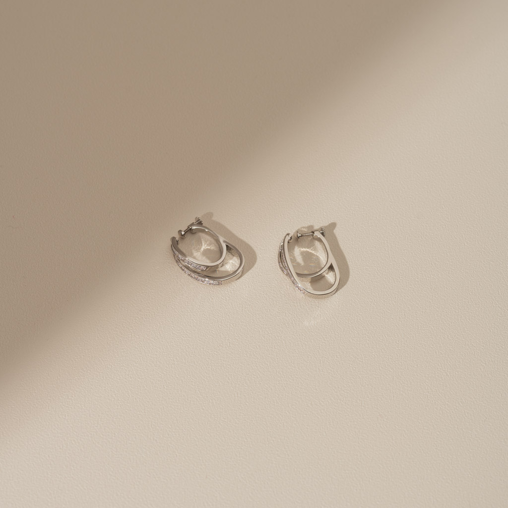 對稱交叉滿鑽線條.一體成形螺旋耳夾 - 銀色