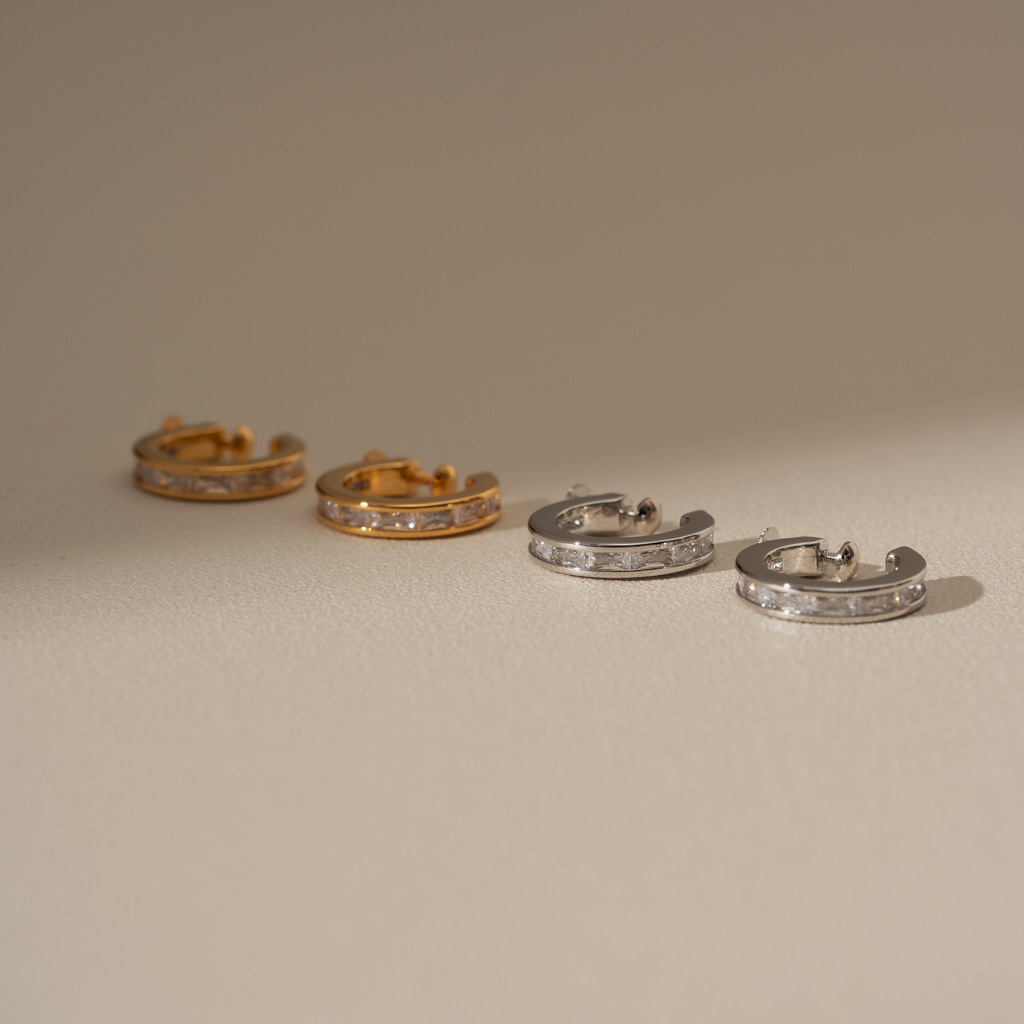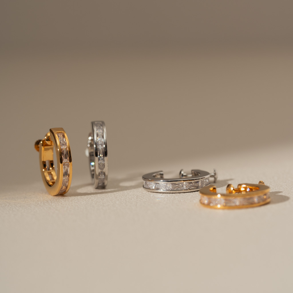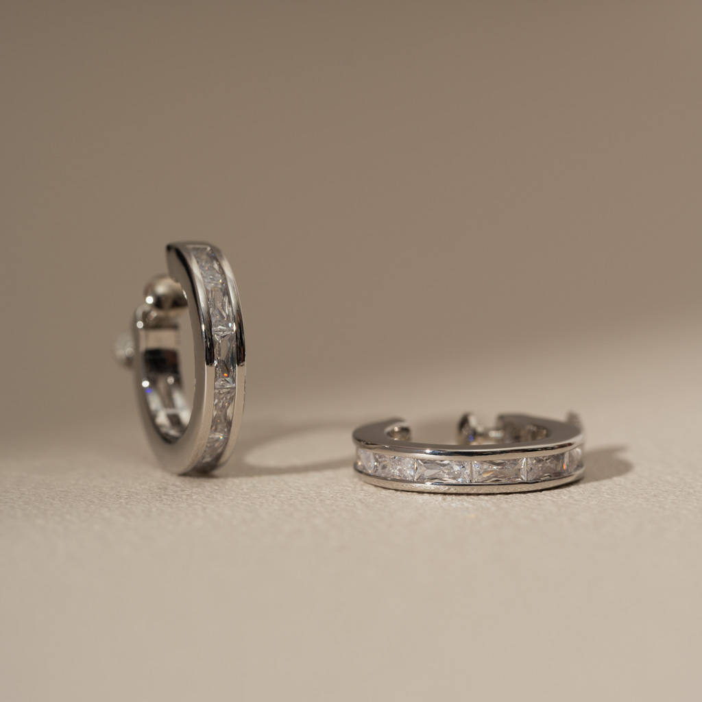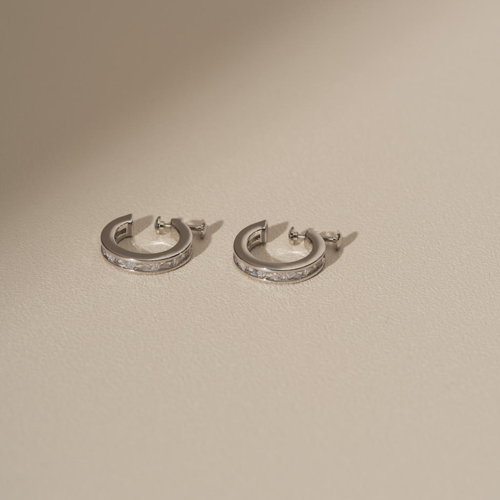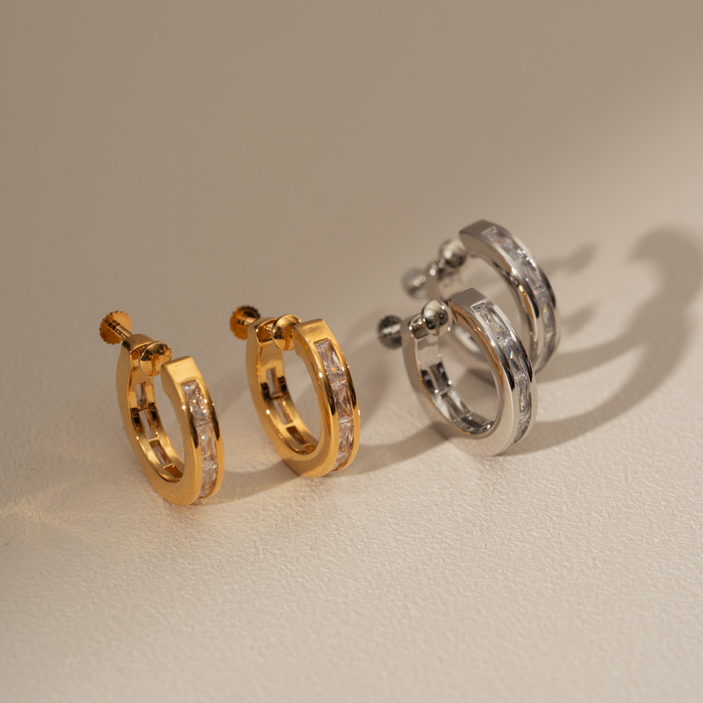 極簡鑲鑽環圈.一體成形螺旋耳夾 - 銀色/金色