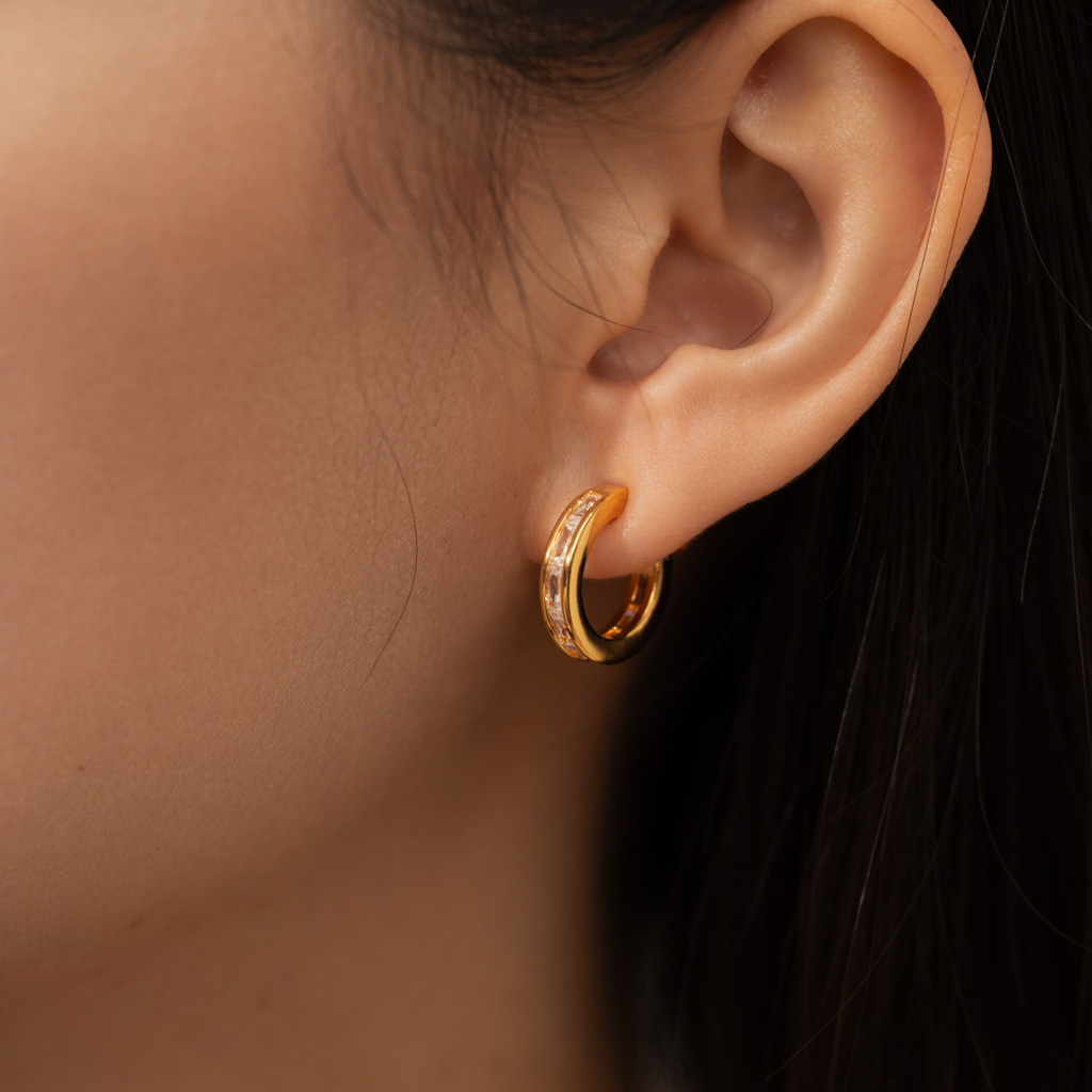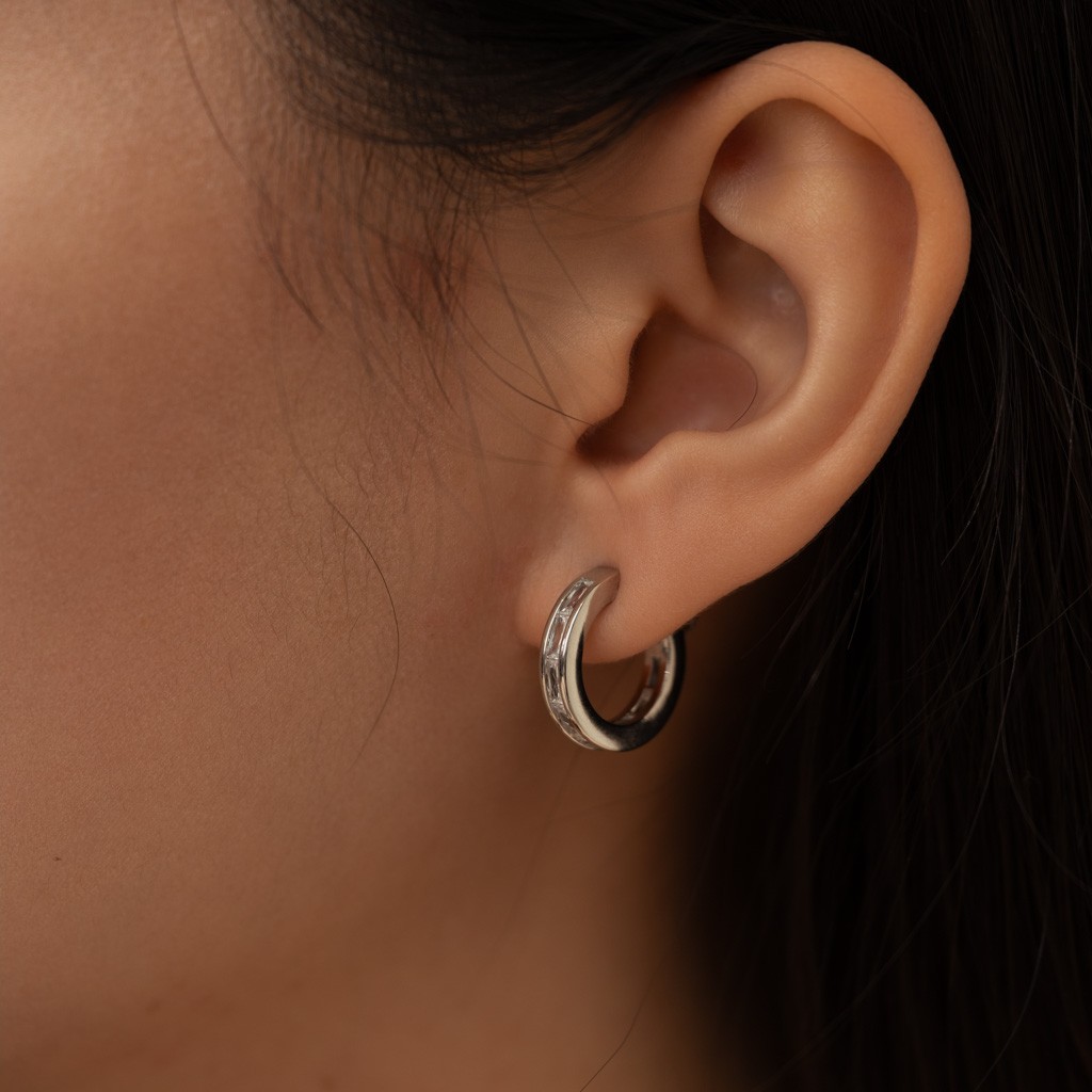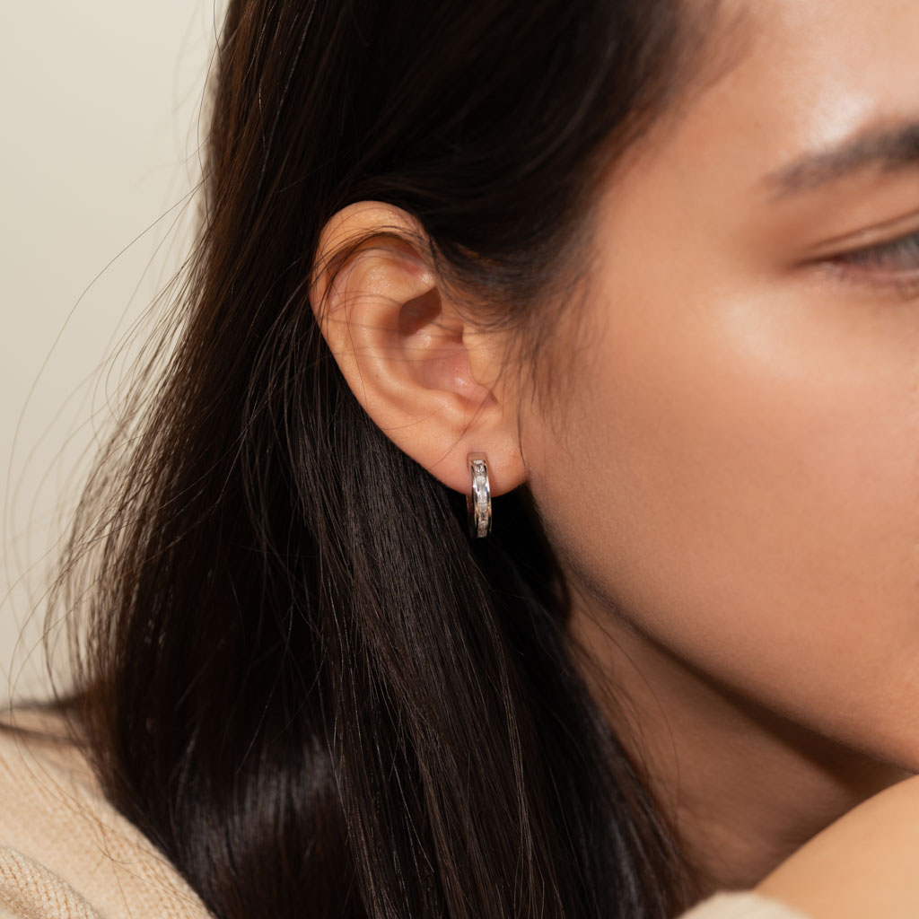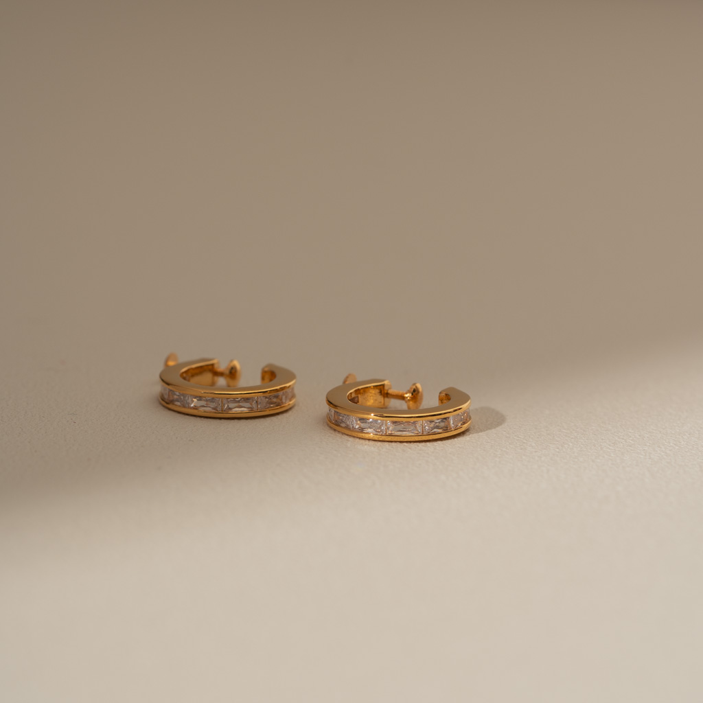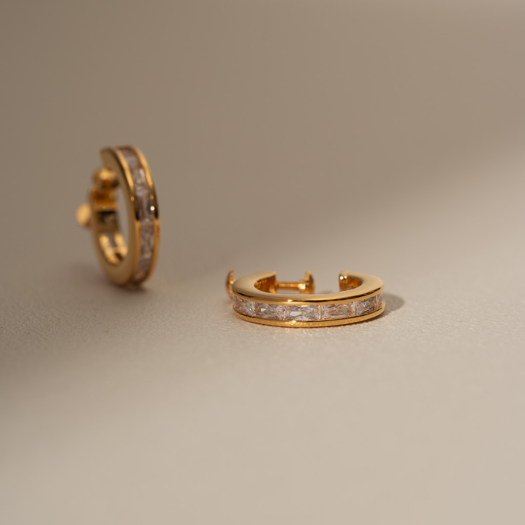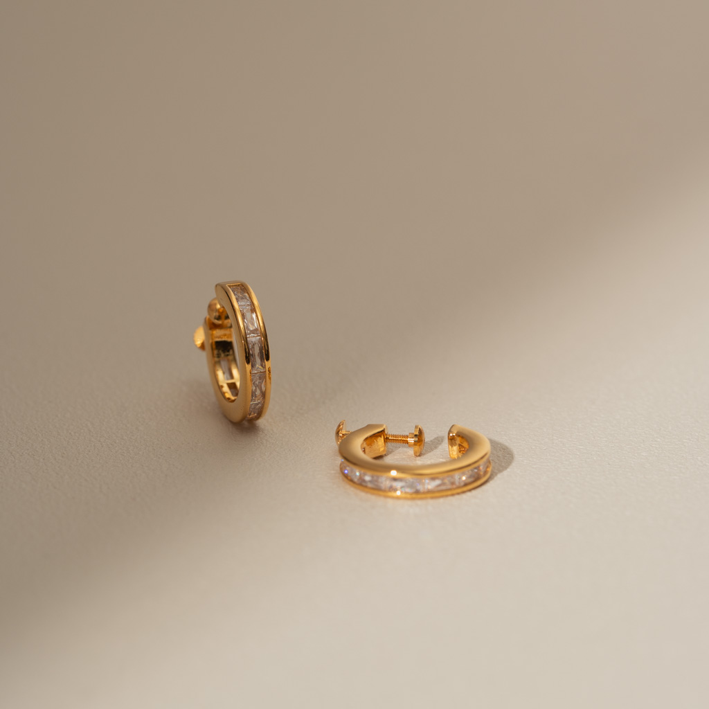 極簡鑲鑽環圈.一體成形螺旋耳夾 - 銀色/金色