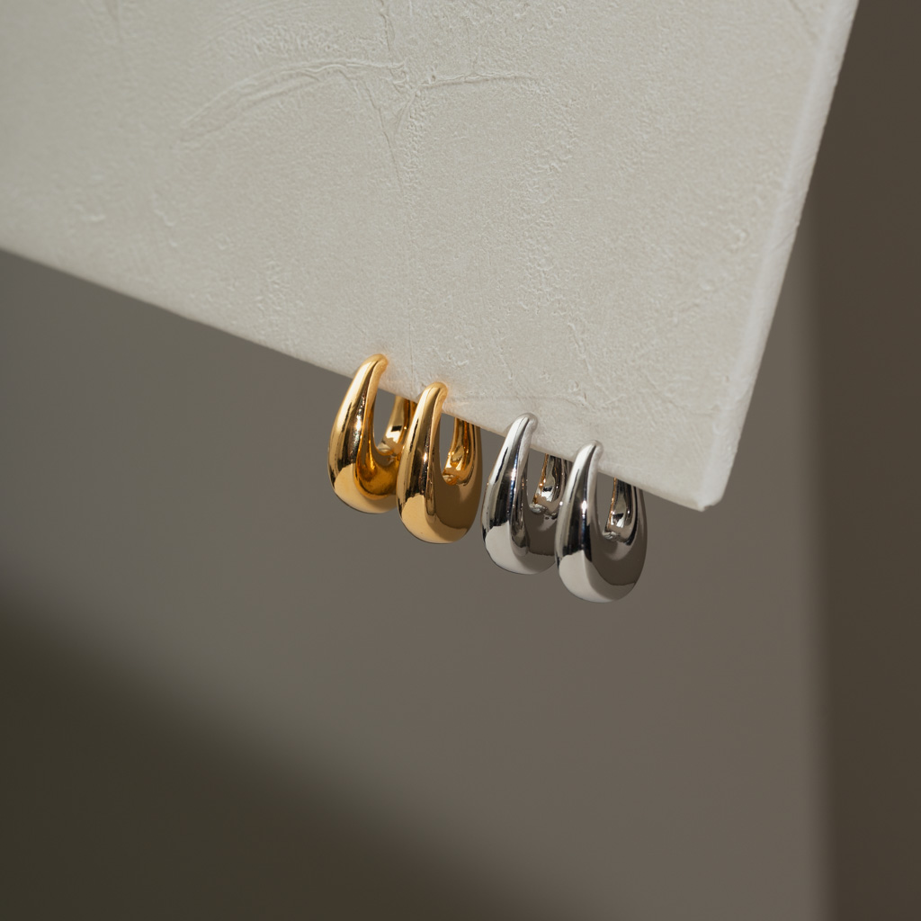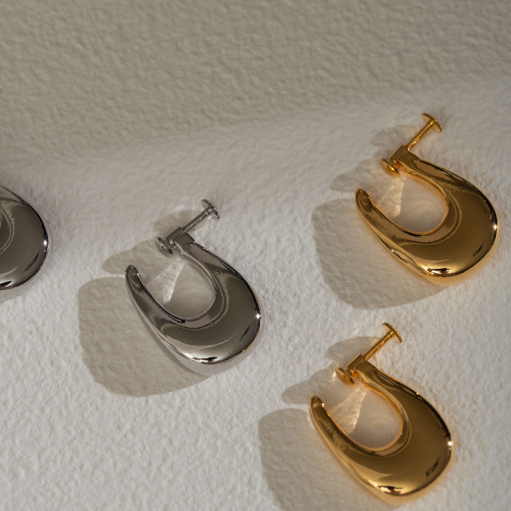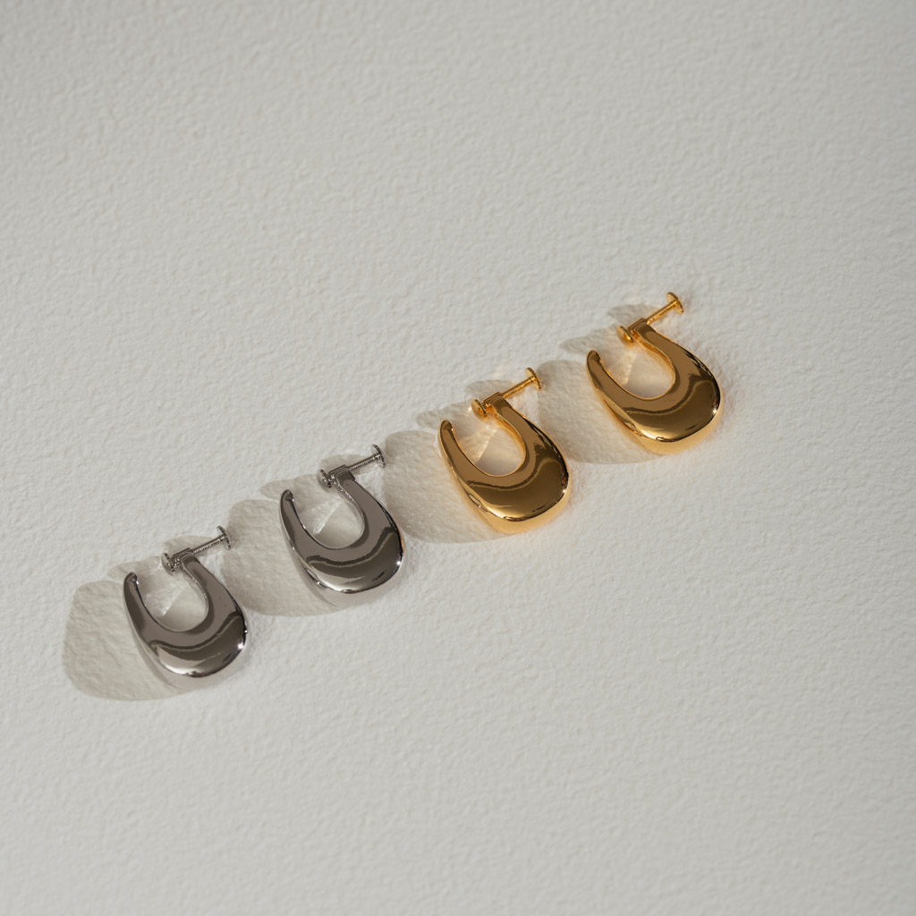 亮面水滴扁U型.一體成形螺旋耳夾 - 銀色/金色