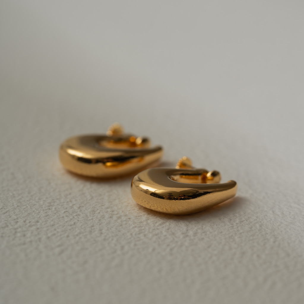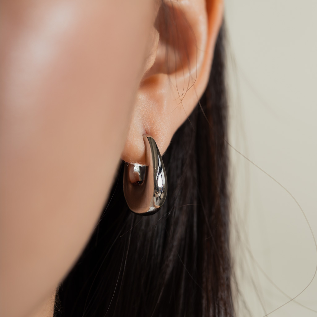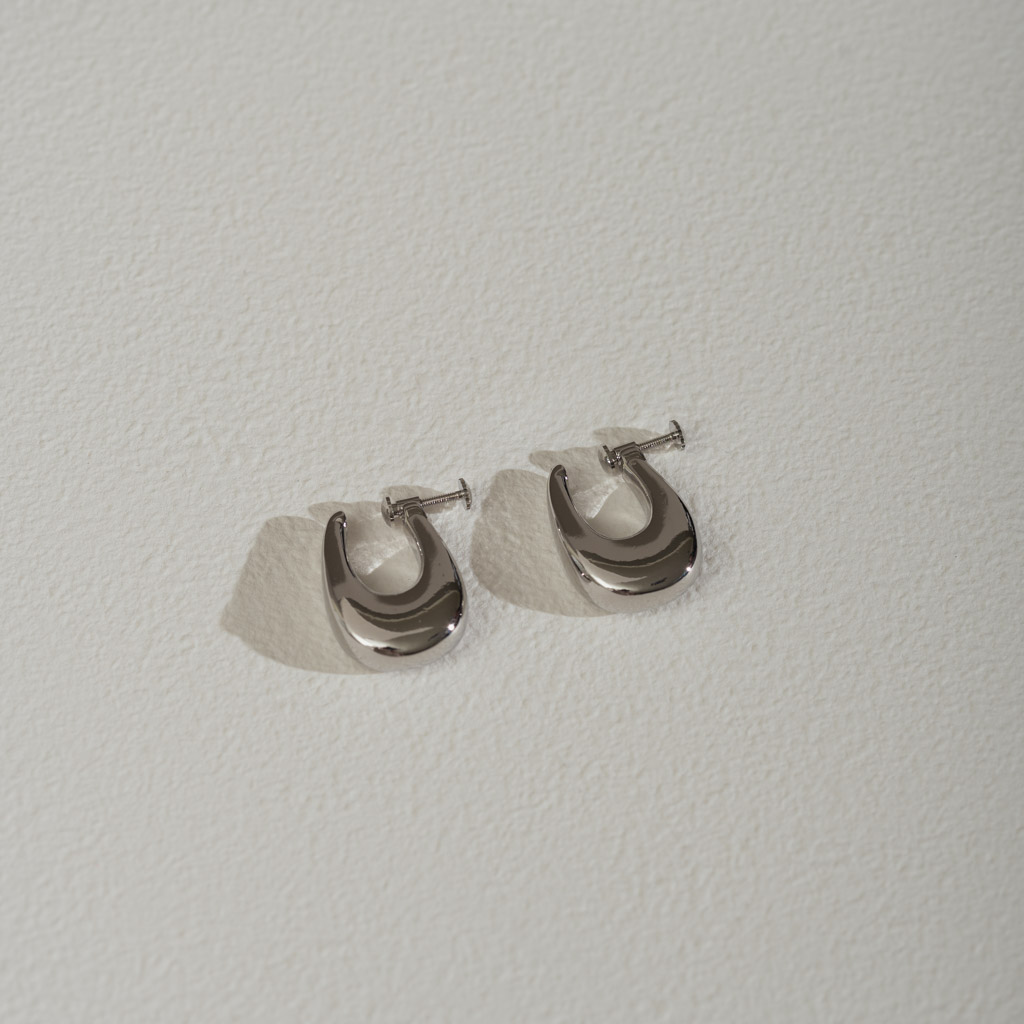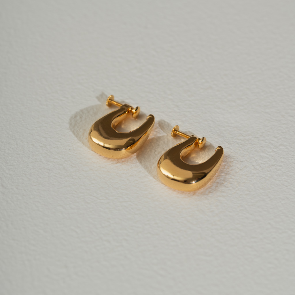 亮面水滴扁U型.一體成形螺旋耳夾 - 銀色/金色