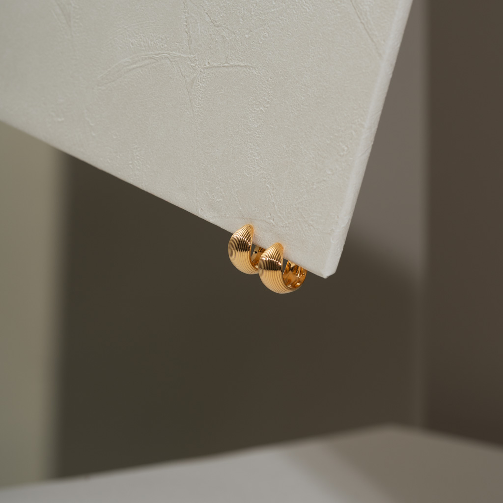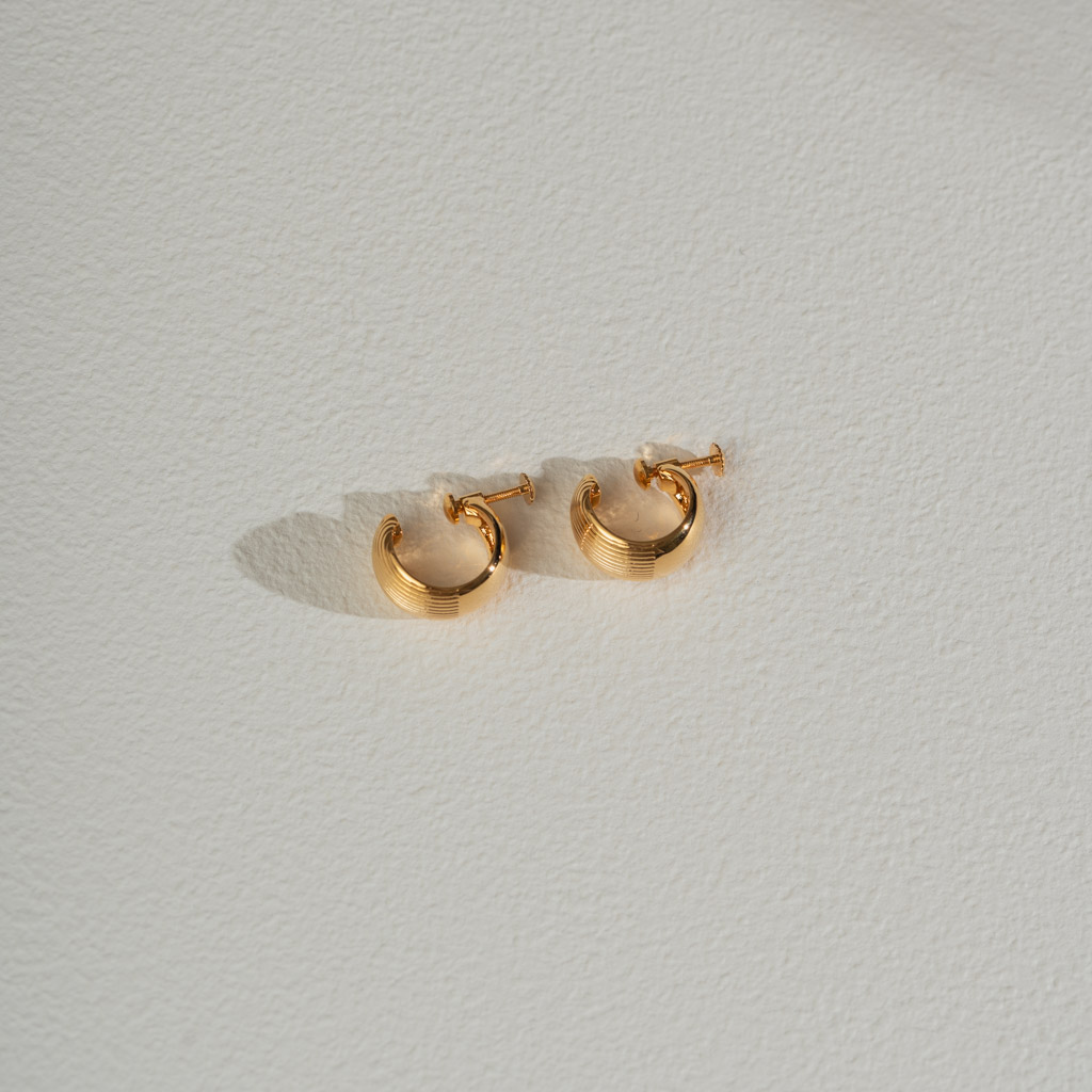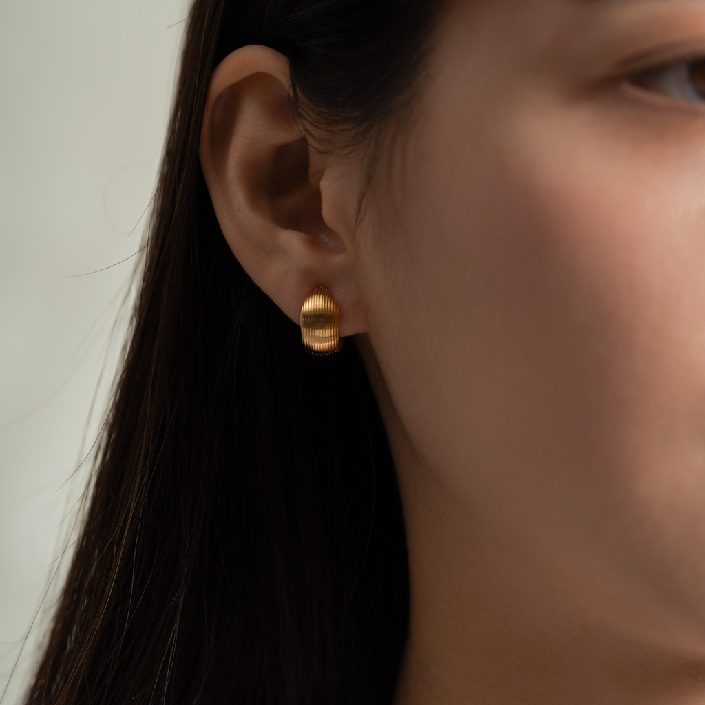 半直紋厚C圈.一體成形螺旋耳夾 - 金色