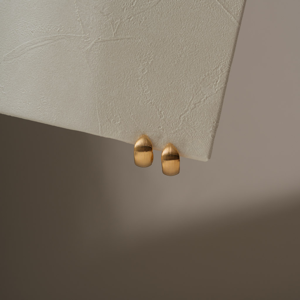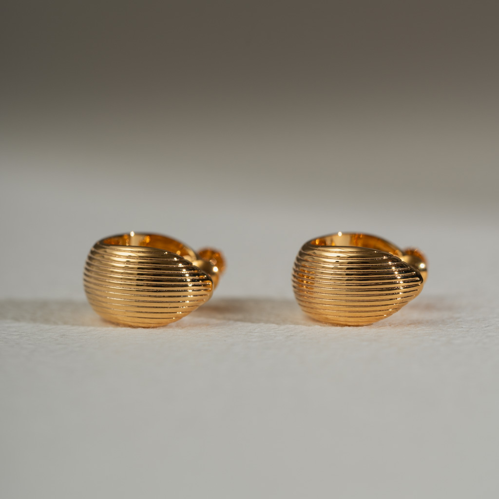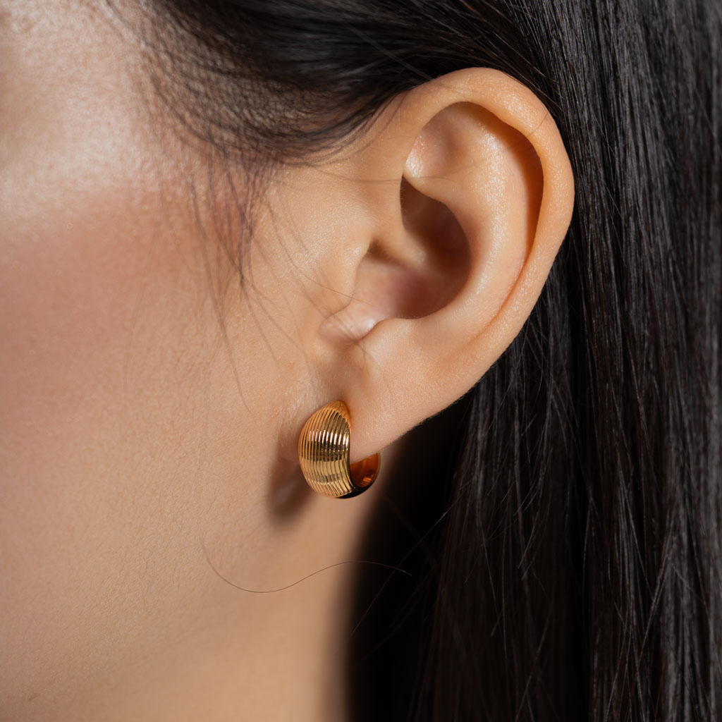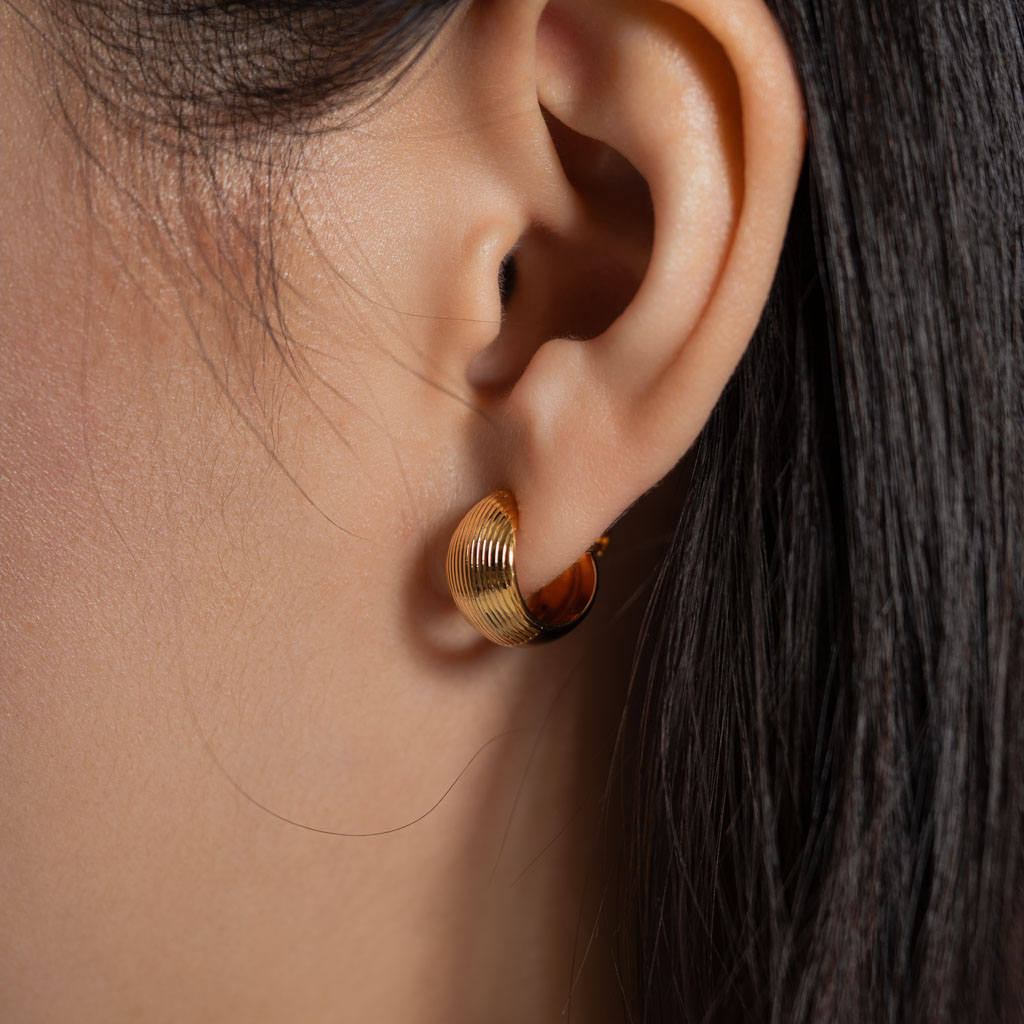 半直紋厚C圈.一體成形螺旋耳夾 - 金色