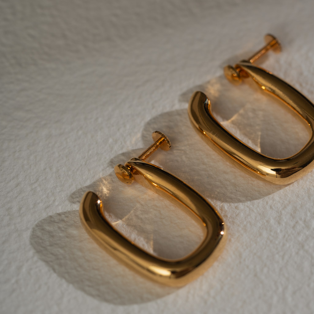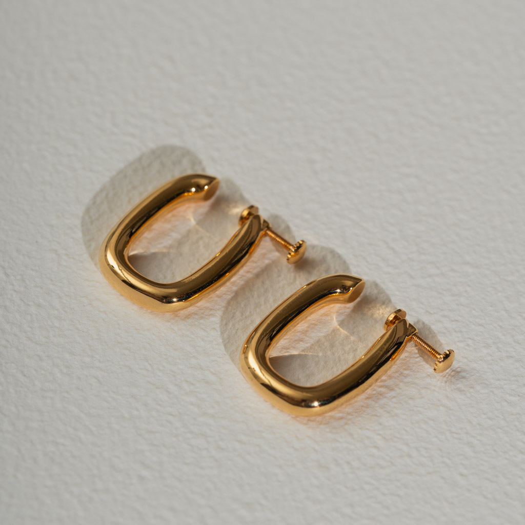 極簡U型亮面線條.一體成形螺旋耳夾 - 金色