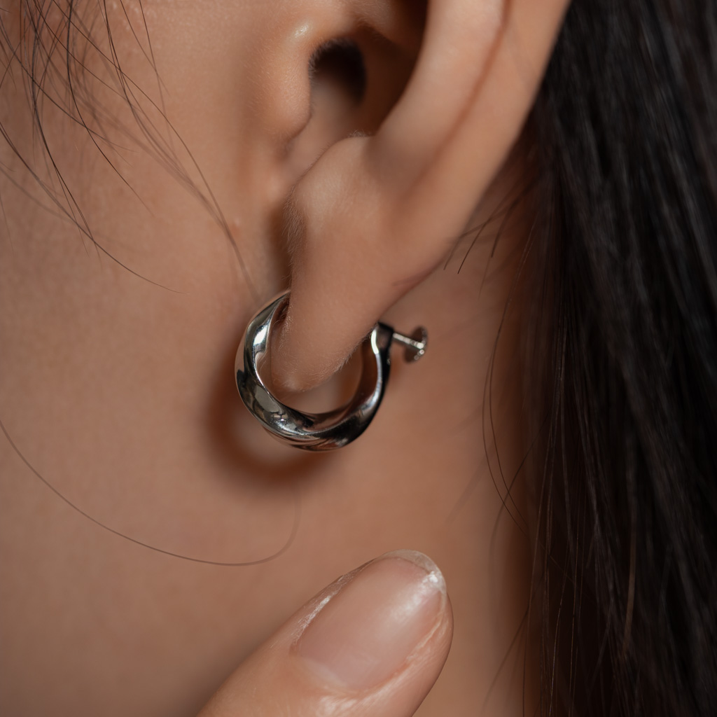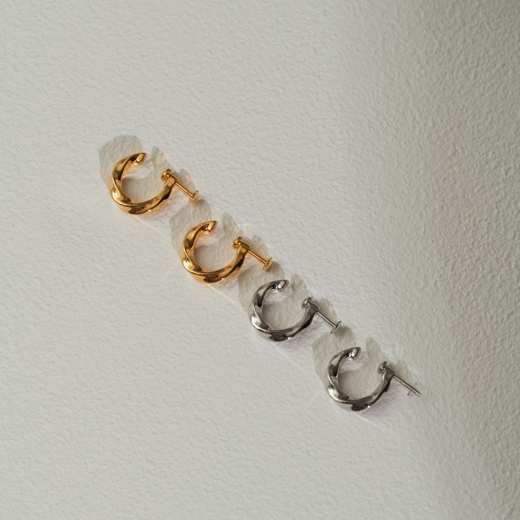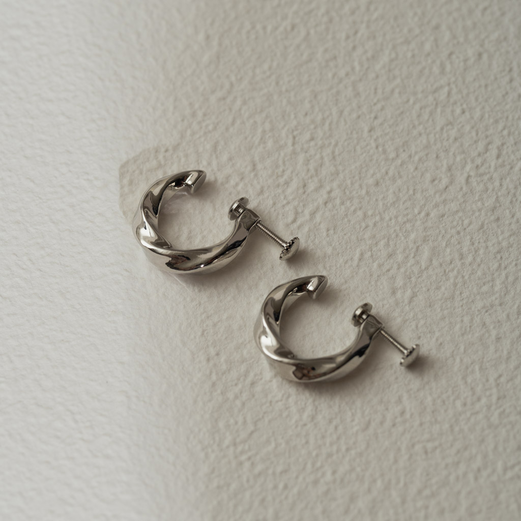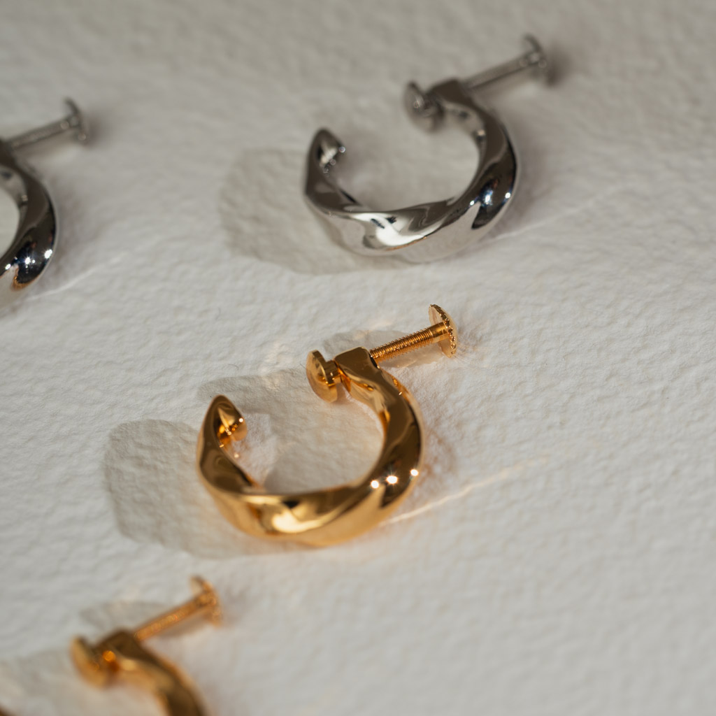 簡約寬流線C圈. 一體成型螺旋耳夾 - 銀色/金色