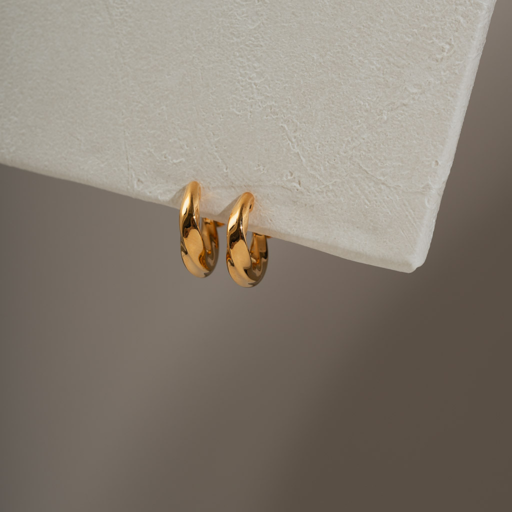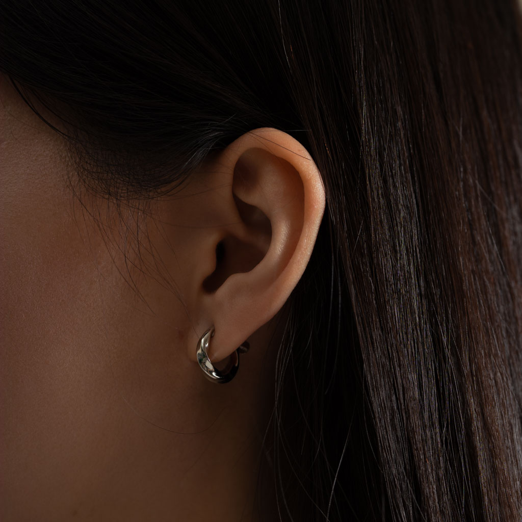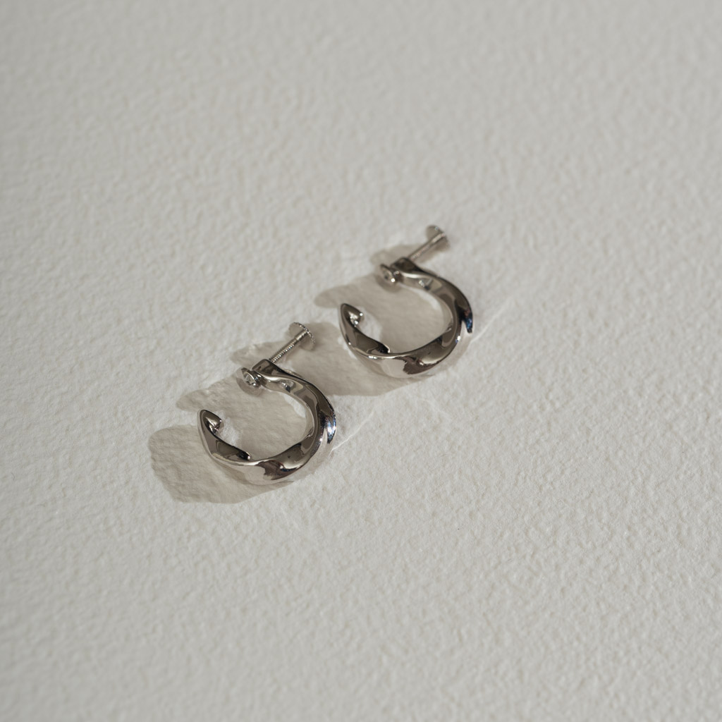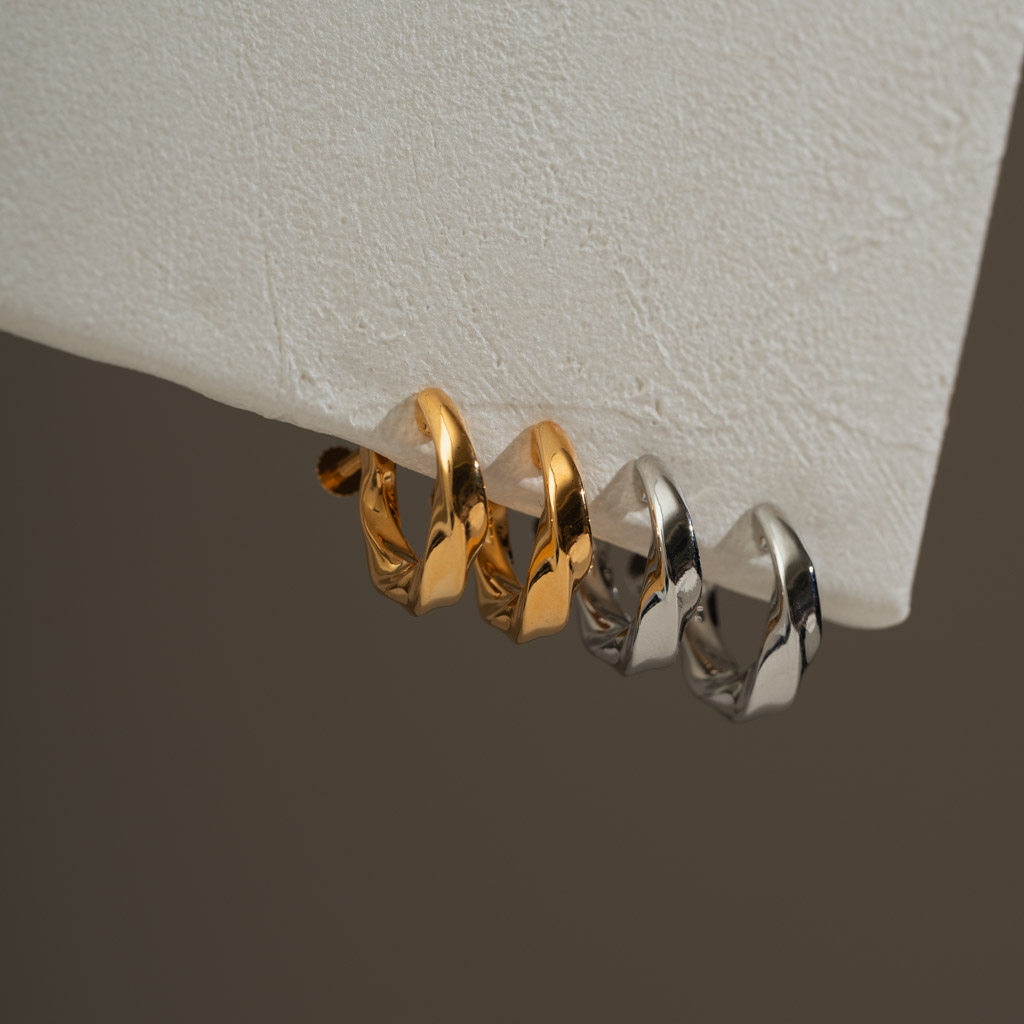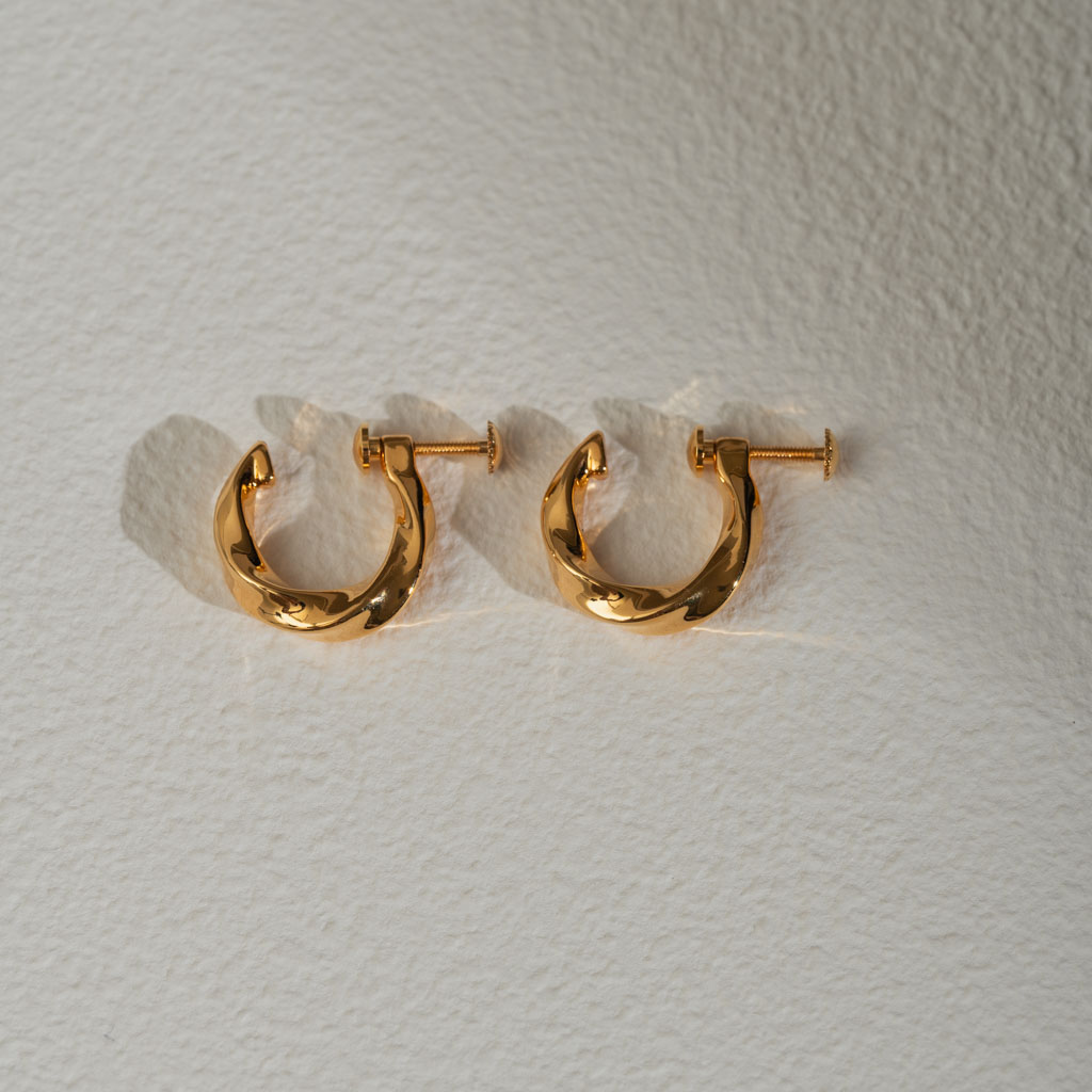 簡約寬流線C圈. 一體成型螺旋耳夾 - 銀色/金色