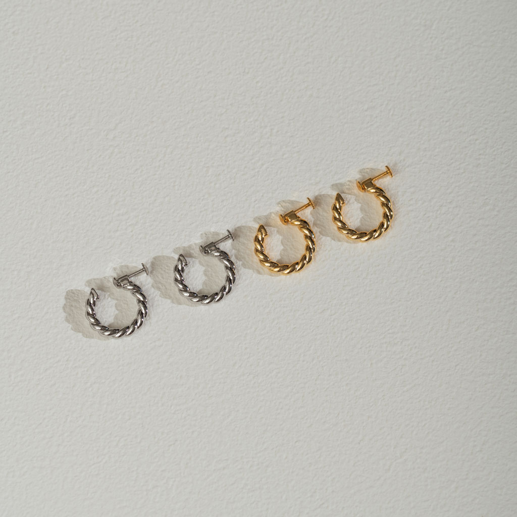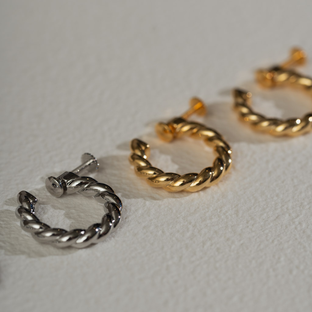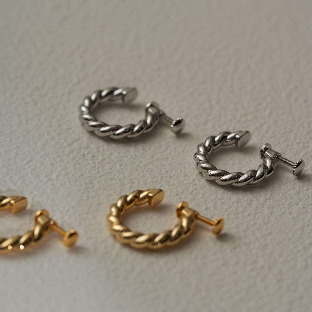 經典麻花C圈.一體成型螺旋耳夾 - 銀色/金色