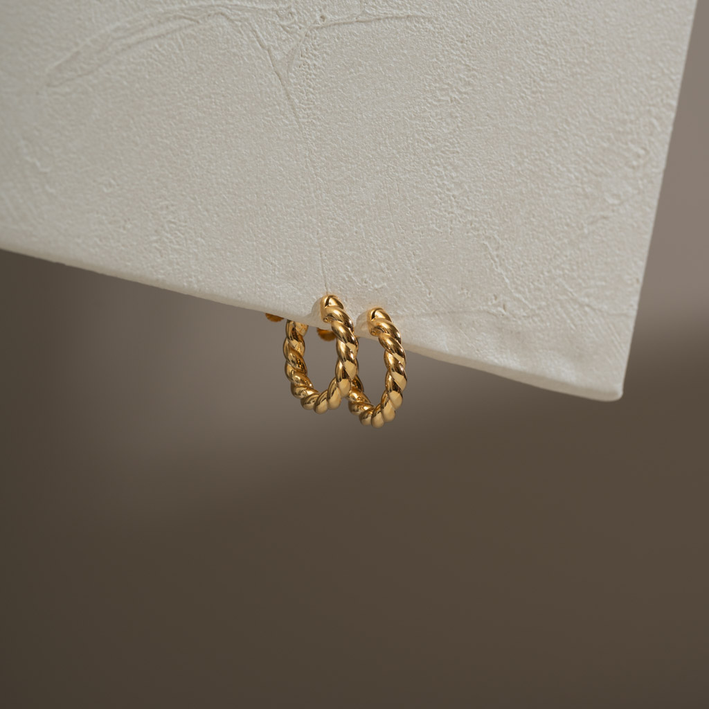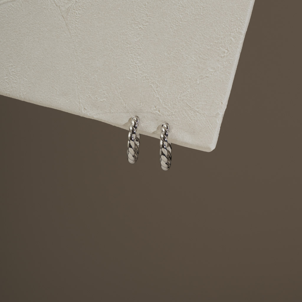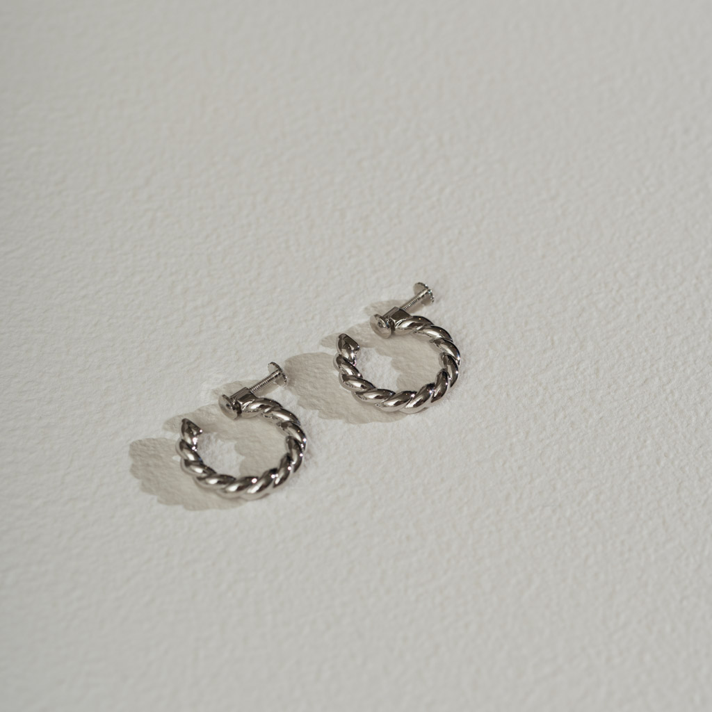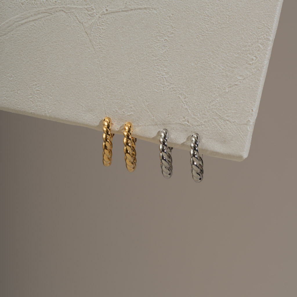 經典麻花C圈.一體成型螺旋耳夾 - 銀色/金色