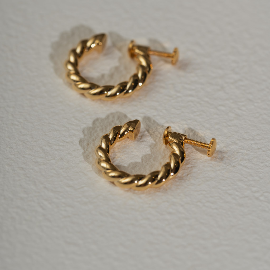 經典麻花C圈.一體成形螺旋耳夾 - 銀色/金色