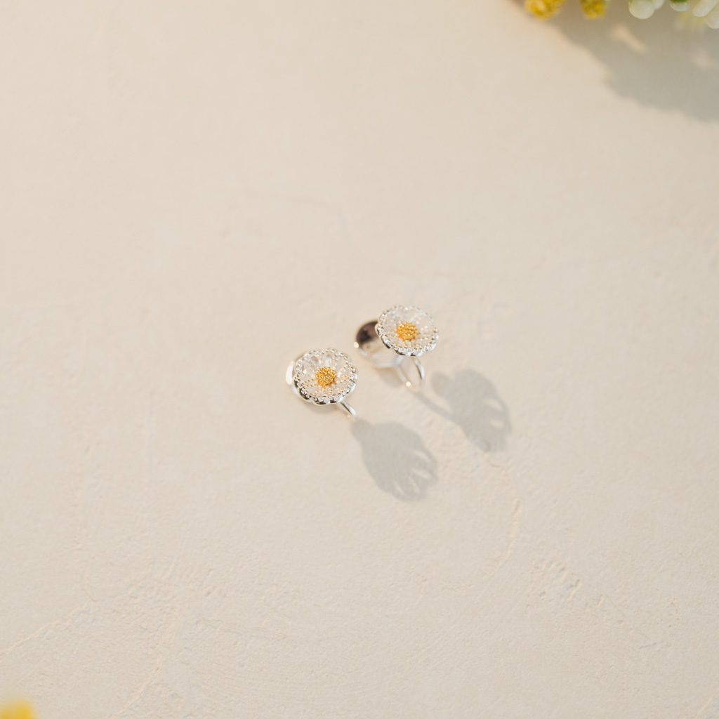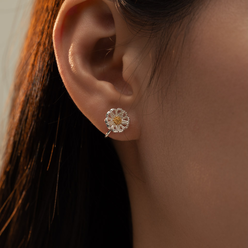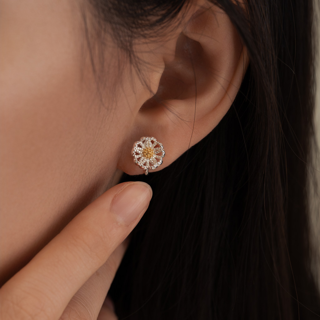 自訂款|細閃山茶花.蚊香盤耳夾 - 銀色