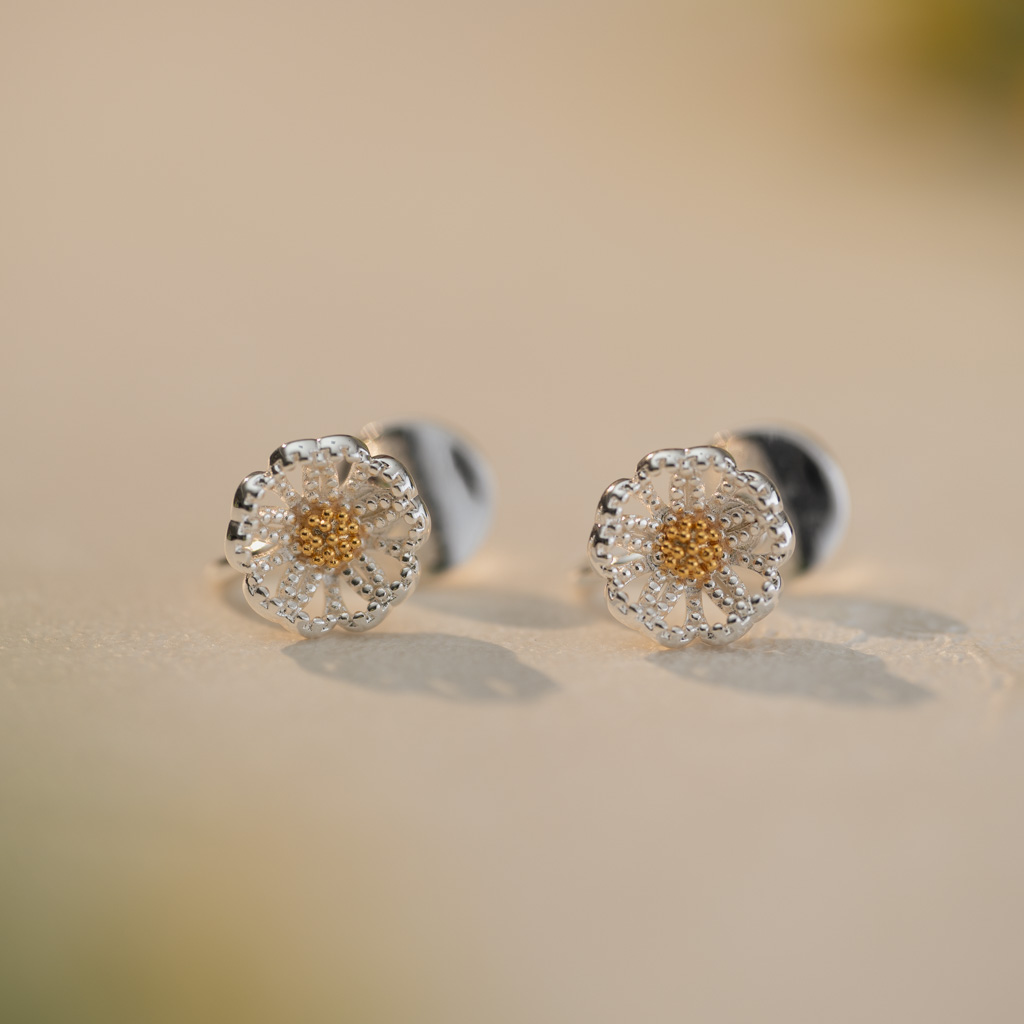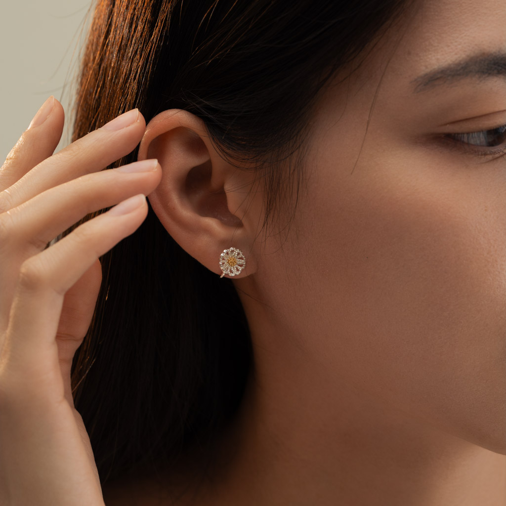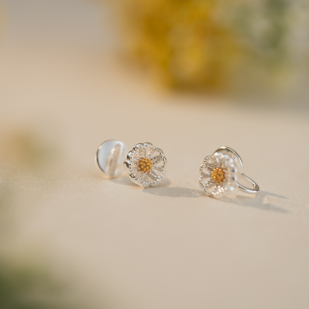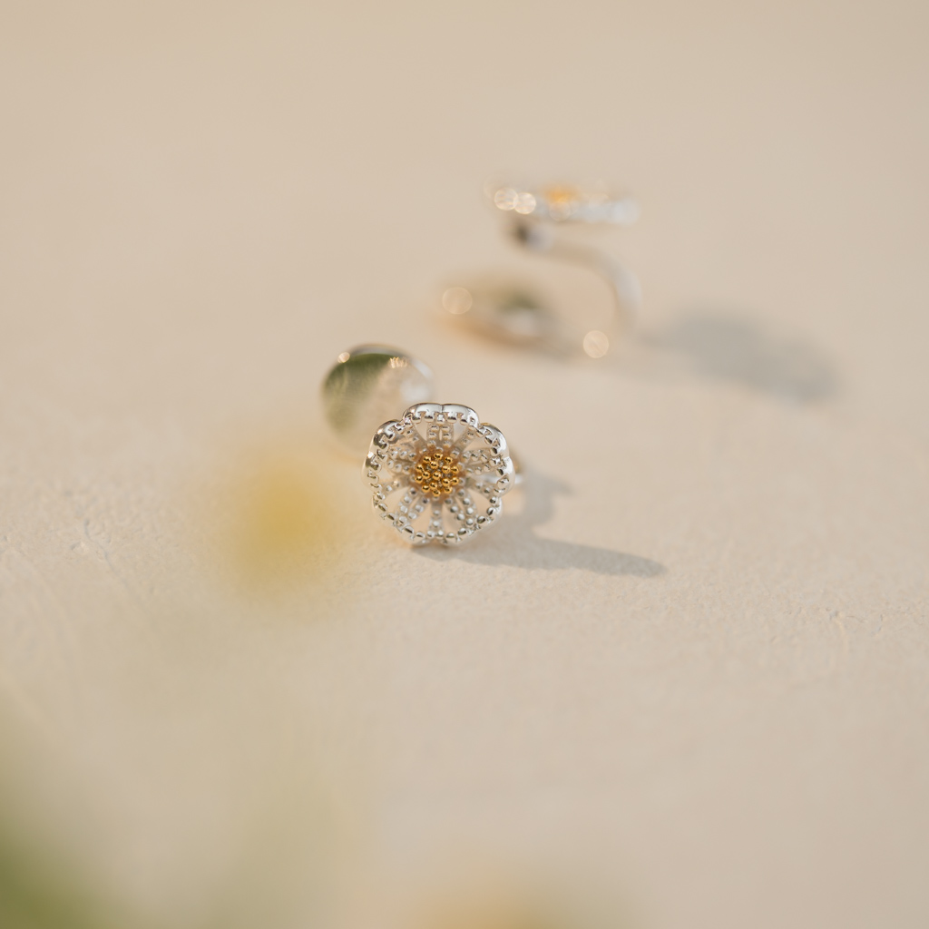 自訂款|細閃山茶花.蚊香盤耳夾 - 銀色