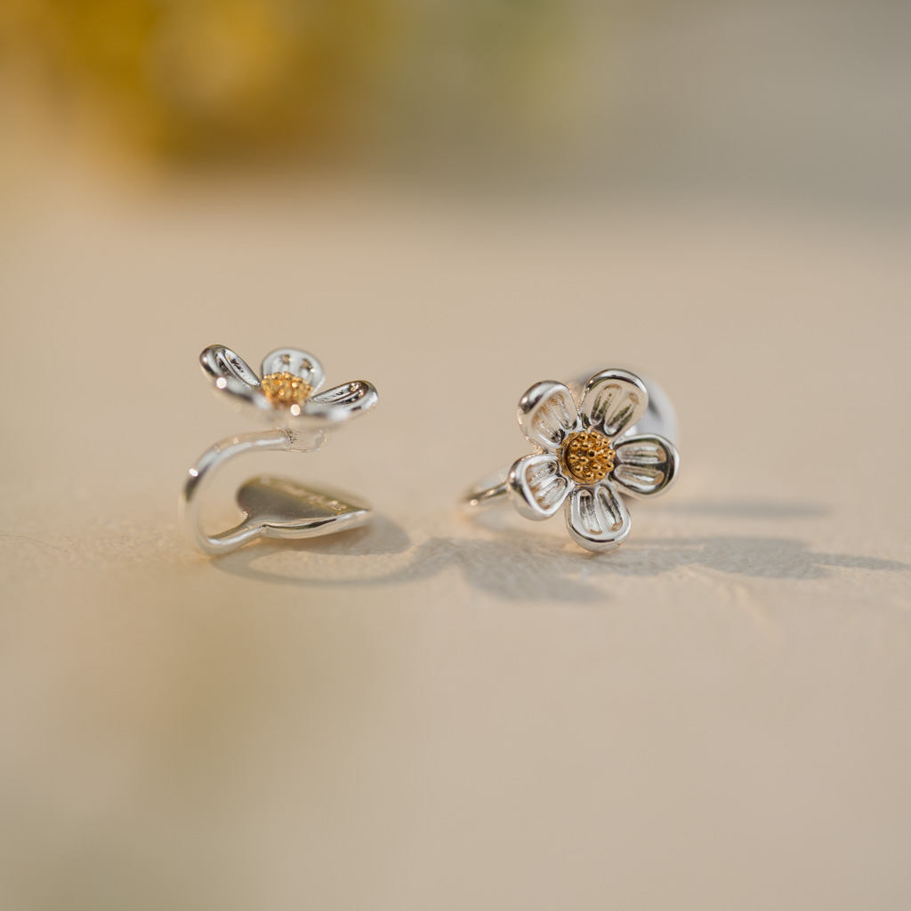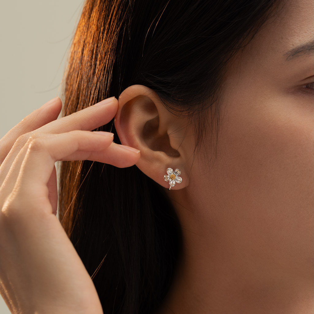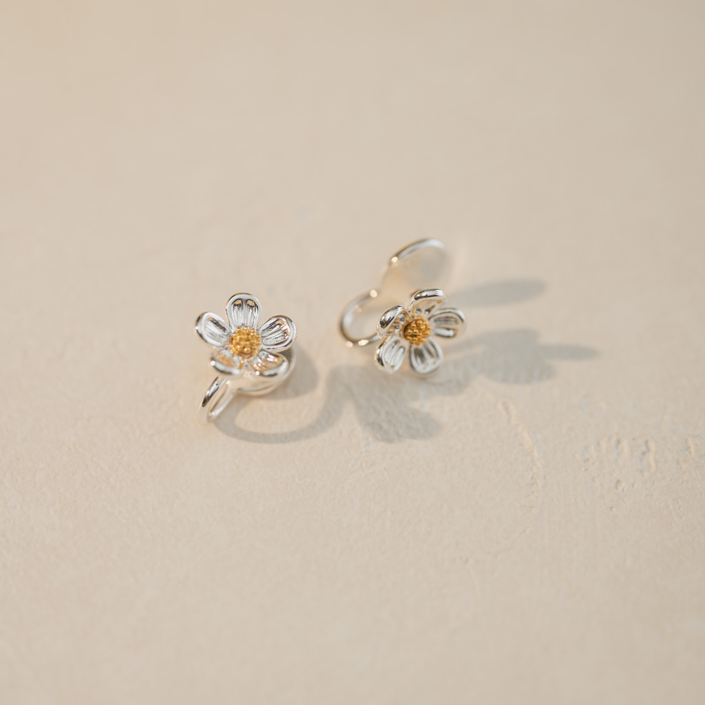 自訂款|簡約小銀花.蚊香盤耳夾 - 銀色