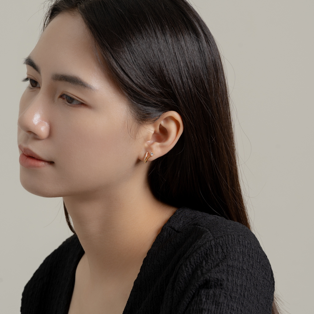 自訂款 | 鑲鑽三環線條耳圈.蚊香盤耳夾 - 銀色/金色